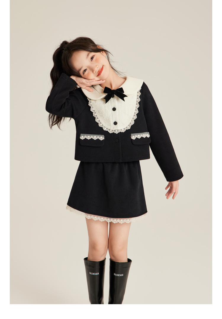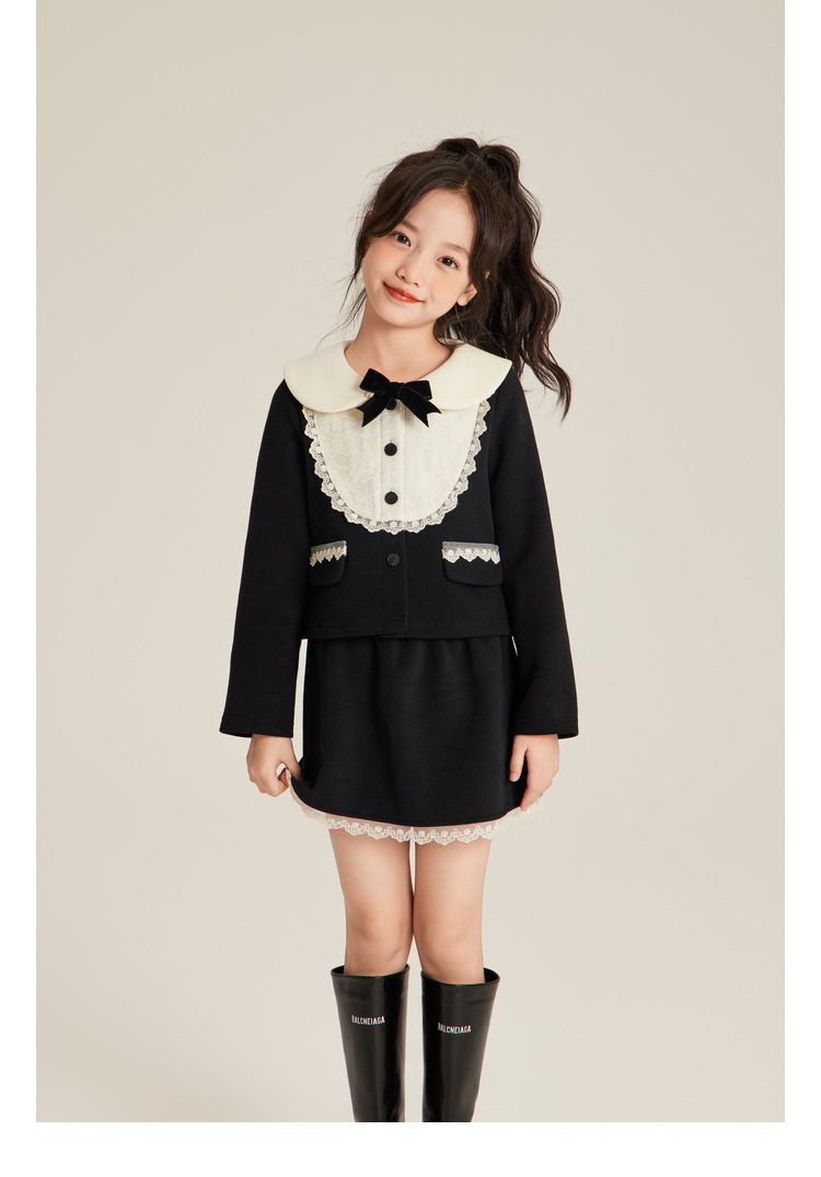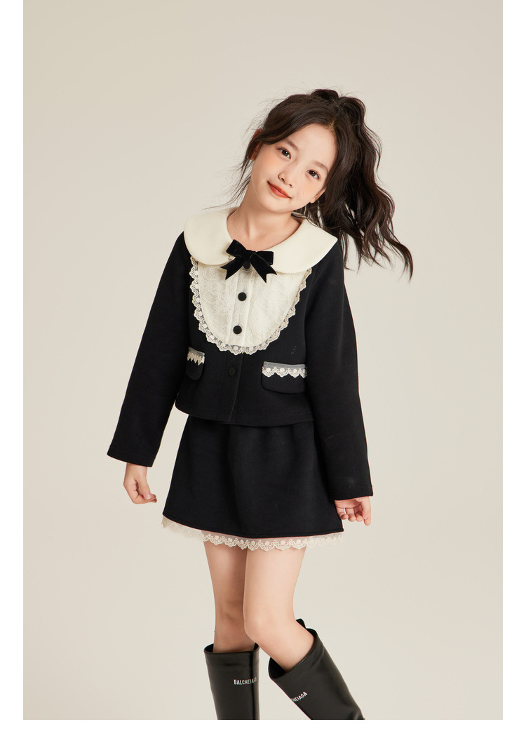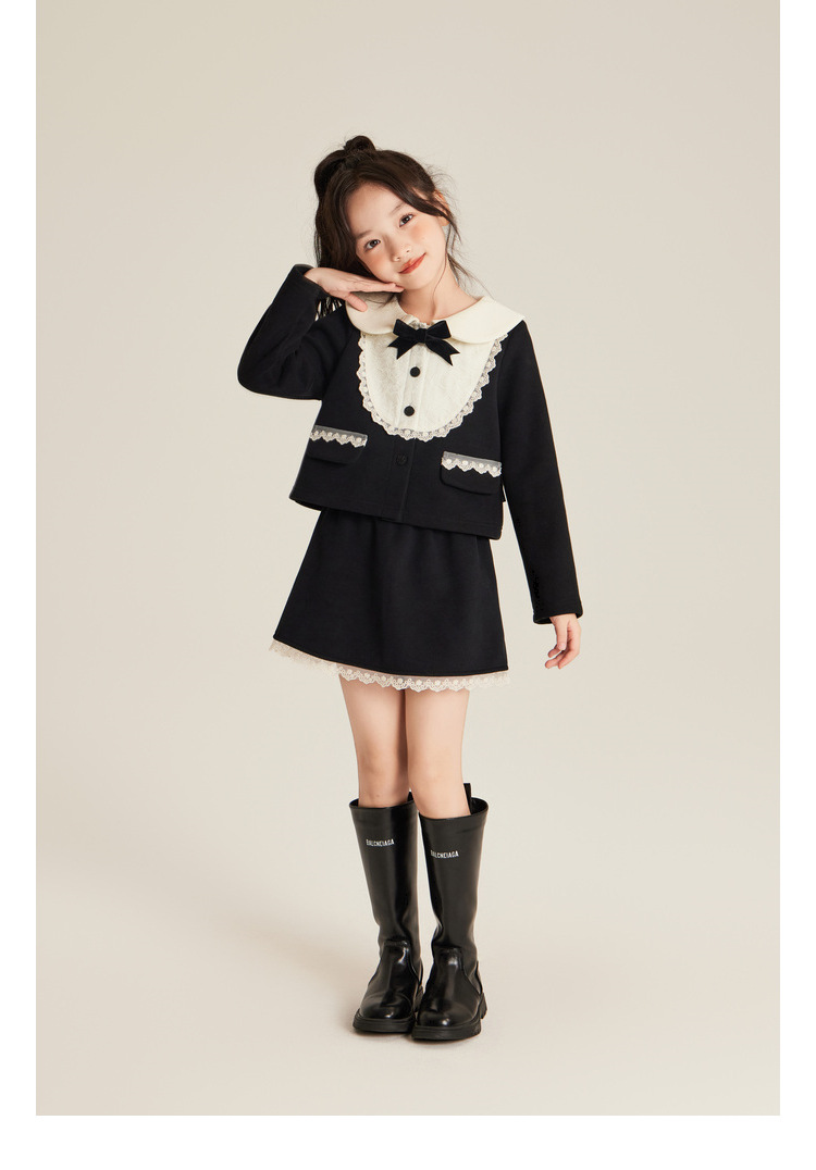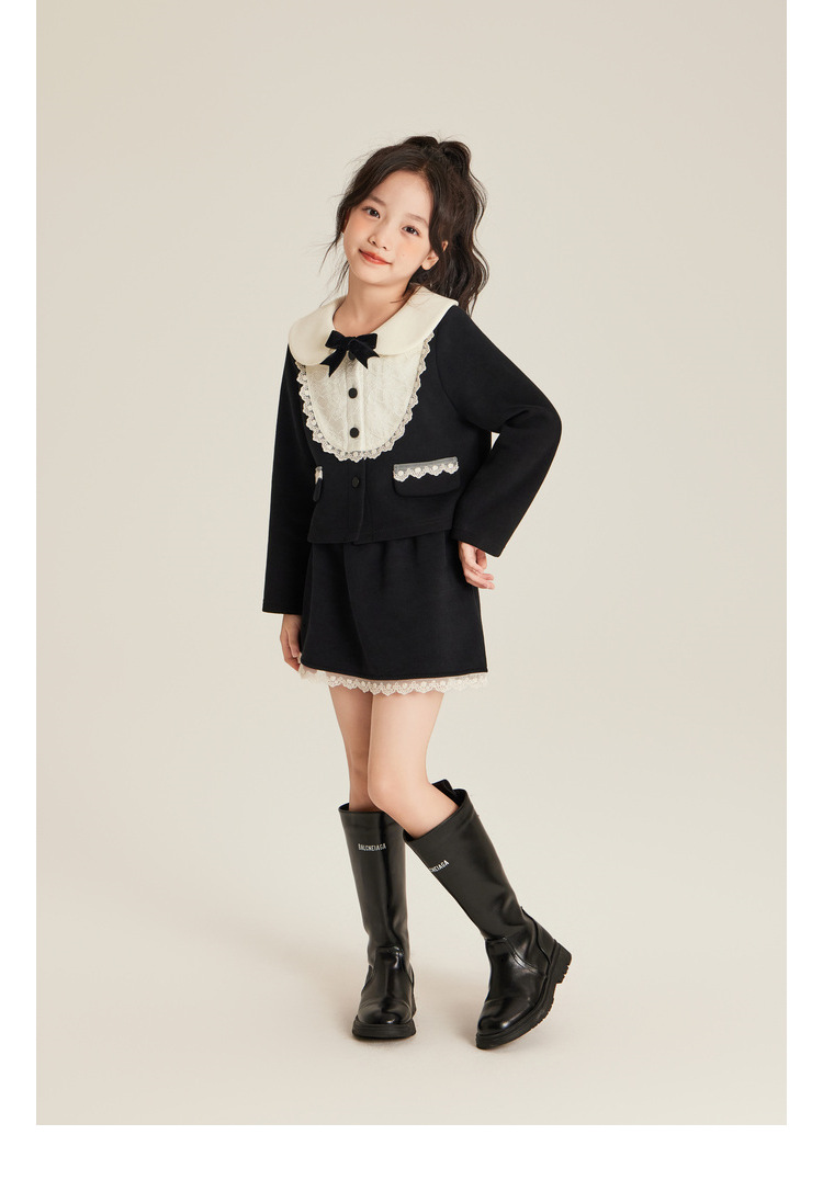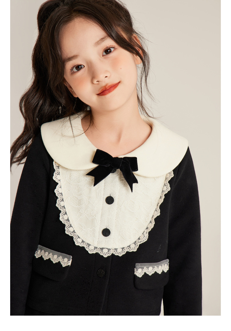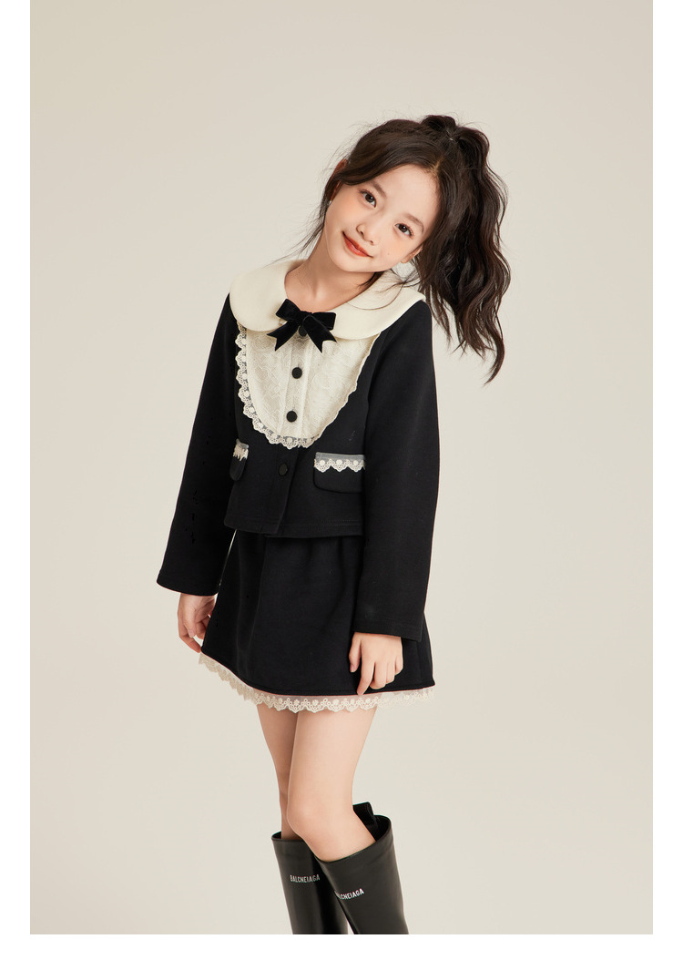 Amybaby 소녀 세트 겨울 2024 새로운 프랑스 스타일 레이스 활 인형 칼라 재킷 원피스스토어 가기