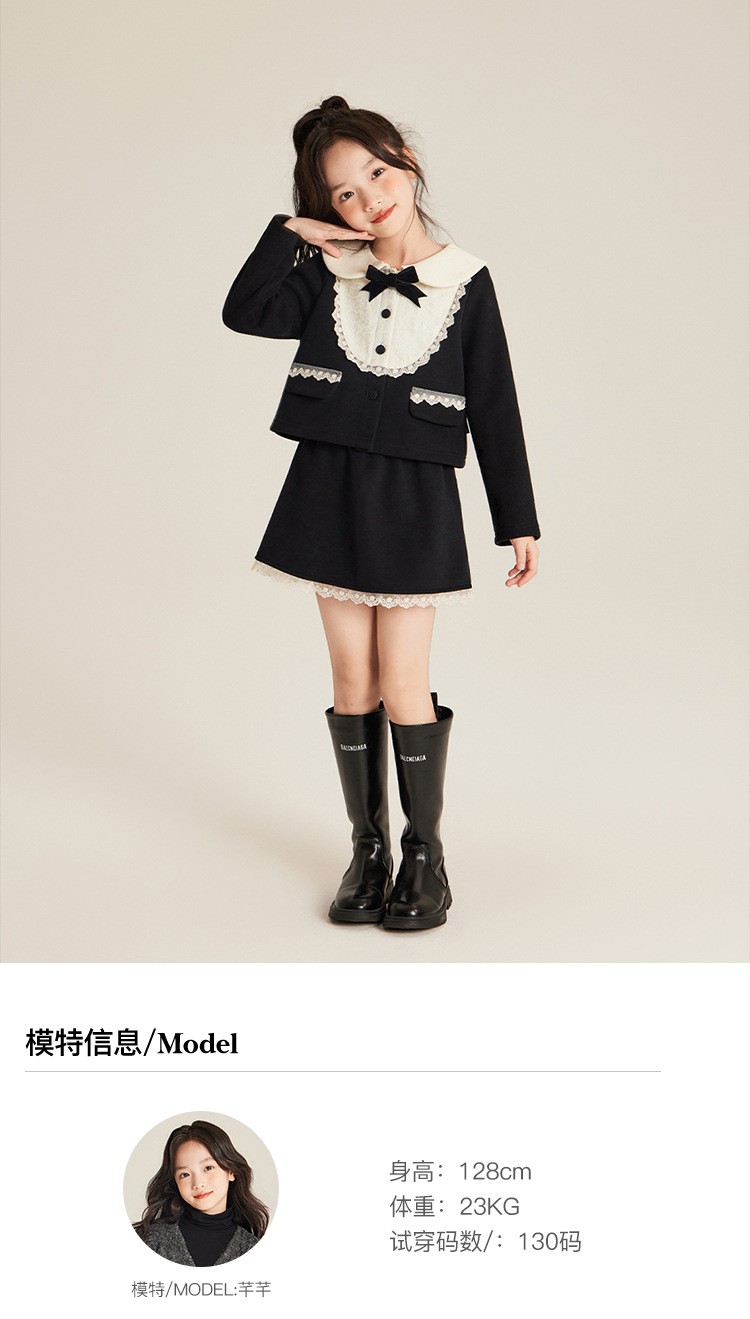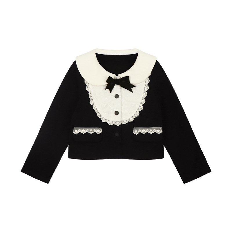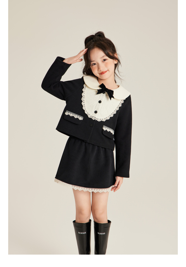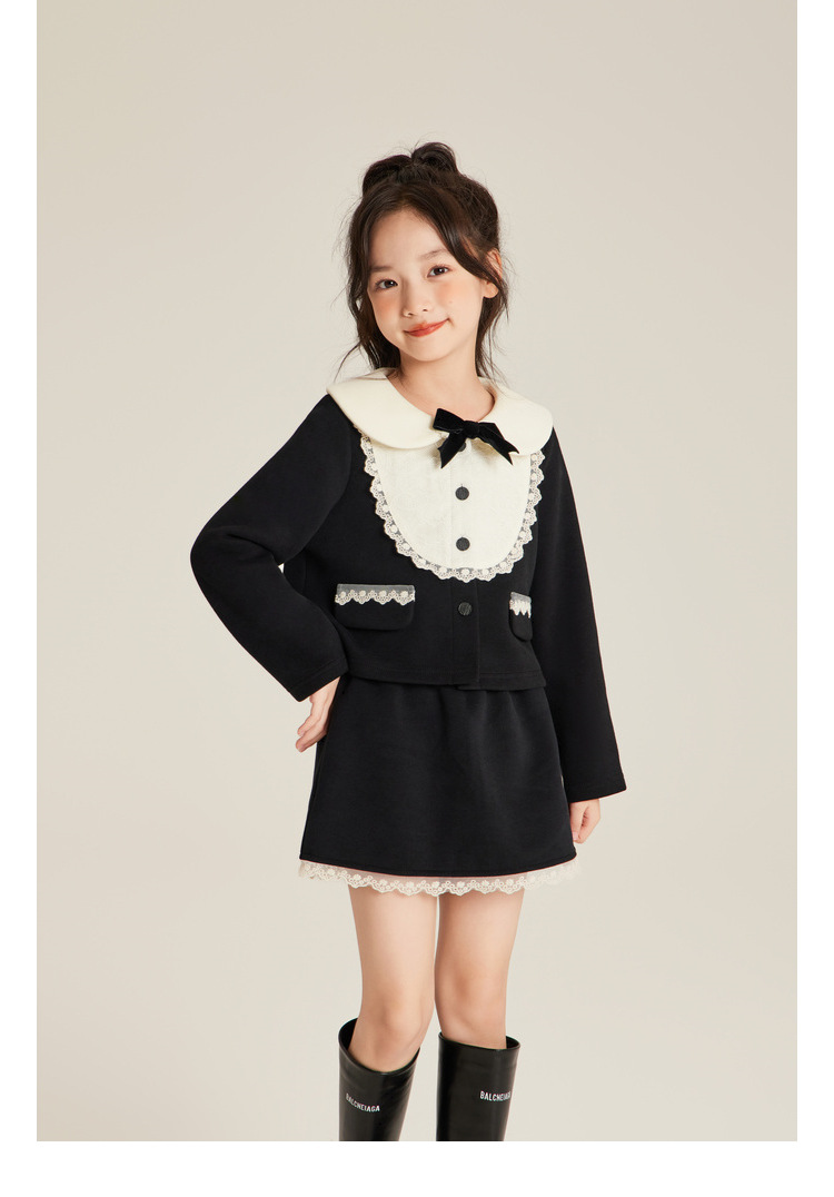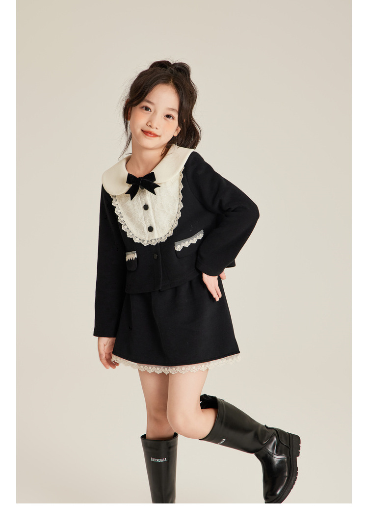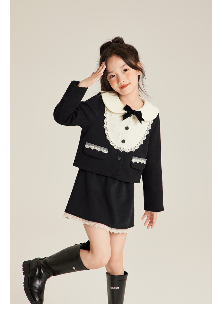 Amybaby 소녀 세트 겨울 2024 새로운 프랑스 스타일 레이스 활 인형 칼라 재킷 원피스스토어 가기