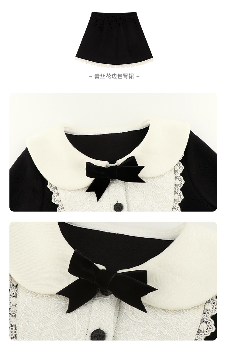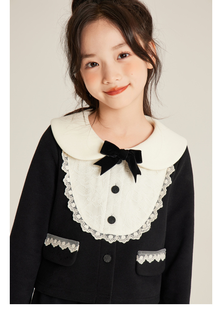 Amybaby 소녀 세트 겨울 2024 새로운 프랑스 스타일 레이스 활 인형 칼라 재킷 원피스