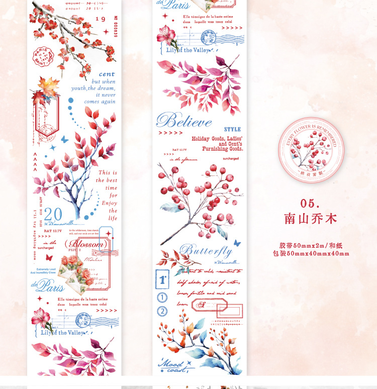 황혼과 종이 테이프 남쪽 가지 바람 편지 시리즈 6 복고풍 가지를 선택하고 테마 소재 장식 DIY 스티커를 남깁니다.