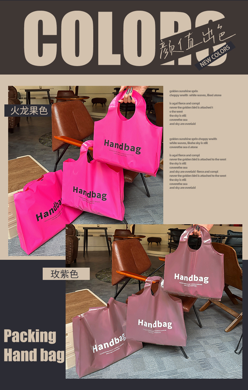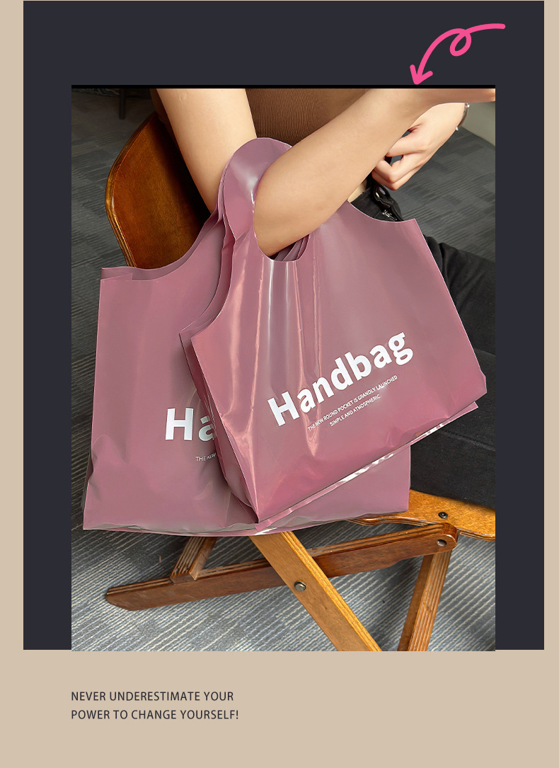 고급 의류 매장 핸드백 영어 인쇄 쇼핑 가방 포장 가방 패션 비닐 봉투 여성의 상업 포장 가방스토어 가기