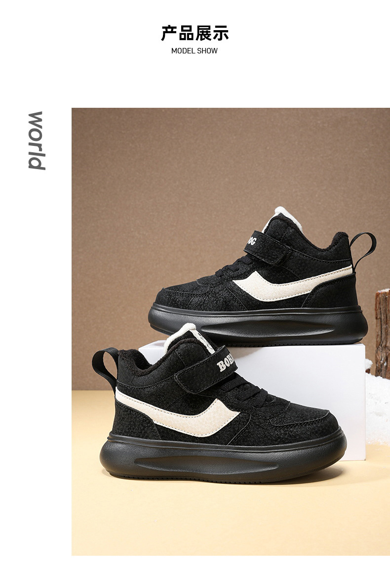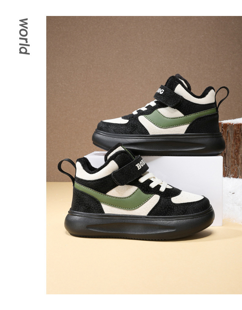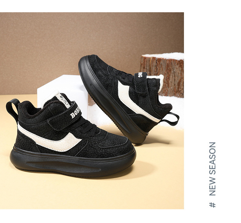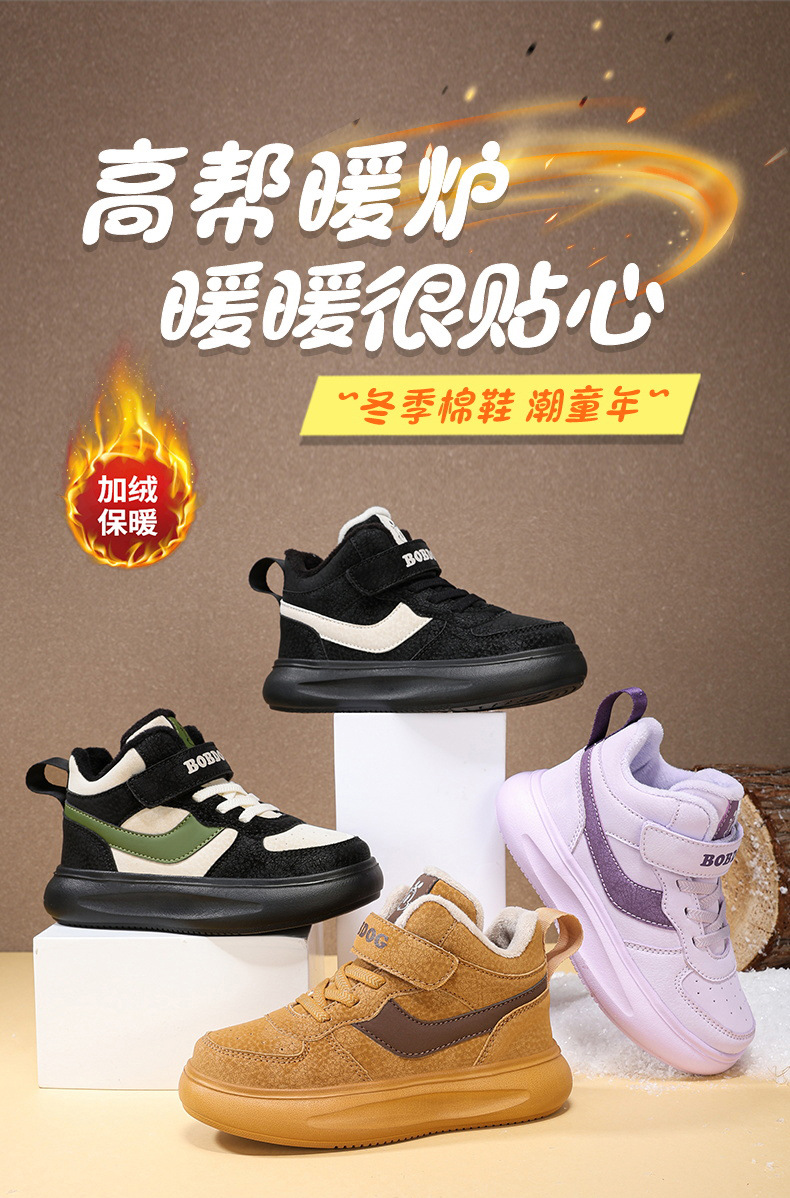 바부 콩 어린이 신발 소년 면화 2024 겨울 새 기모 따뜻한 어린이 운동화 소년 면화 신발