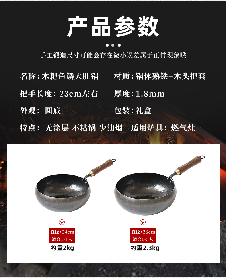 Zhangqiu 물고기 규모 패턴 벨리 냄비 두꺼운 단철 손으로 만든 단철 냄비 코팅되지 않은 가정용 튀김 냄비스토어 가기