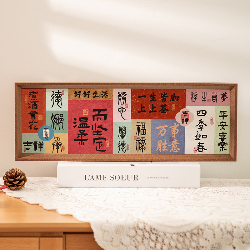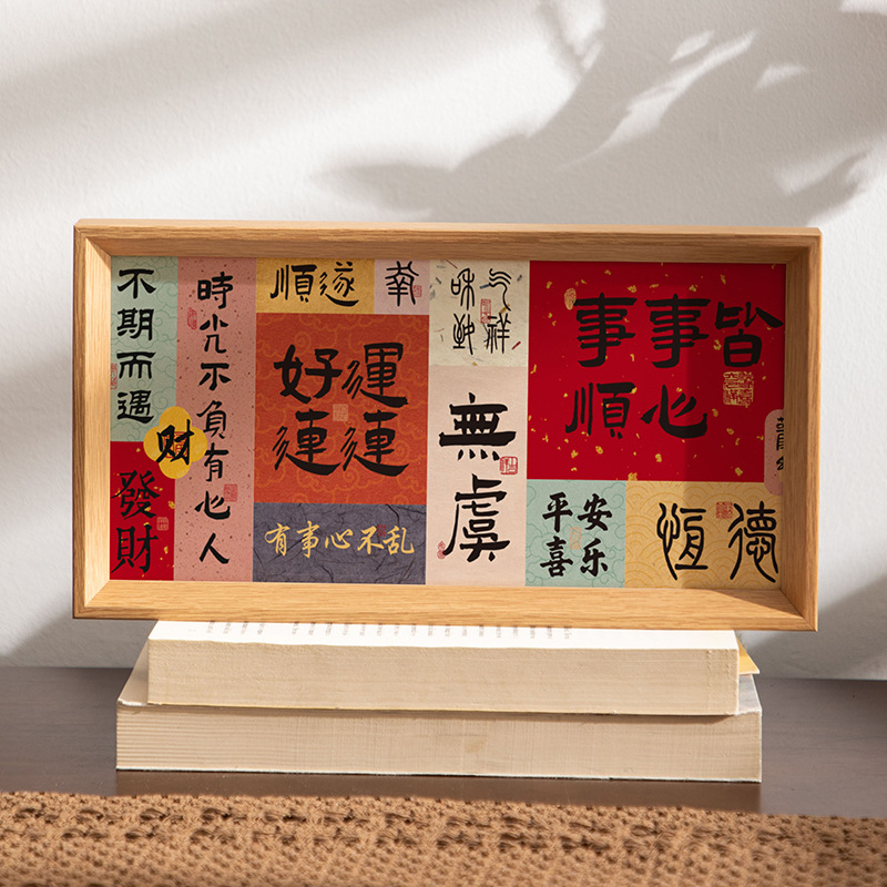 새로운 중국 서예 축복 텍스트 사진 프레임 테이블 새 집 장식 장식 데스크탑 장식품 홈 액세서리스토어 가기