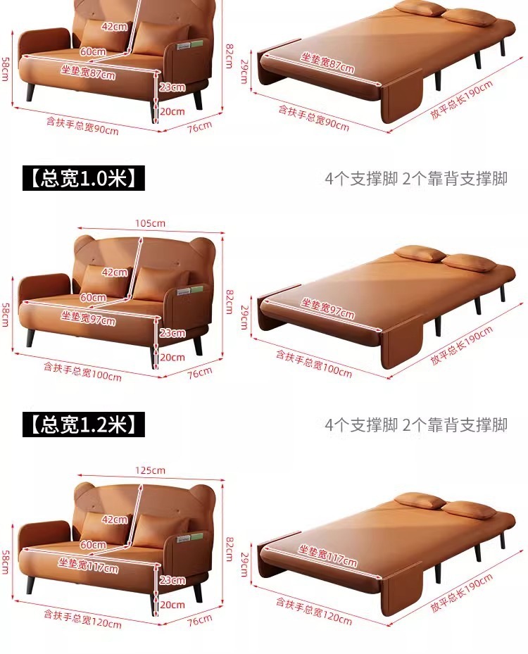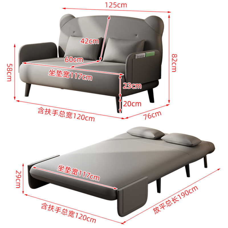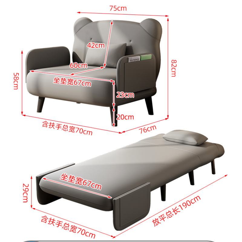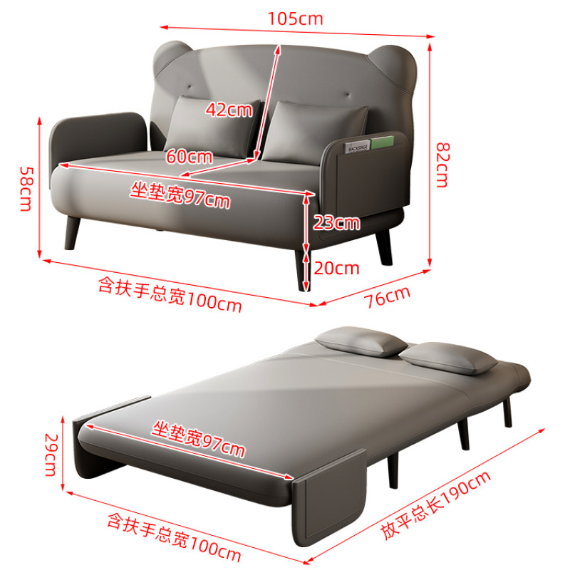 1인용 접이식 침대 소파 시트, 2인용, 간단한 소형 거실 소파, 누워서 앉고 자는 데 사용 가능