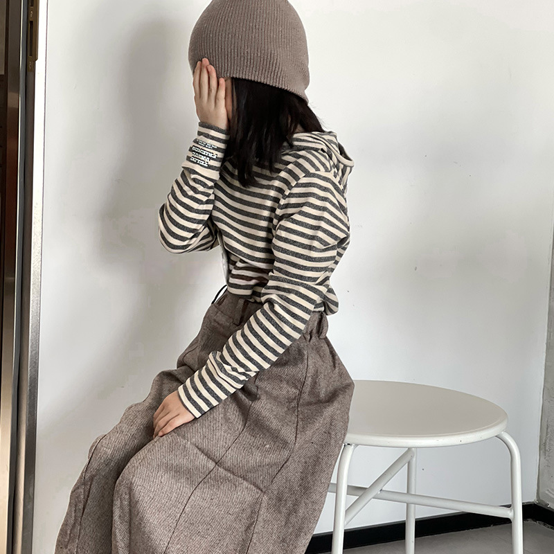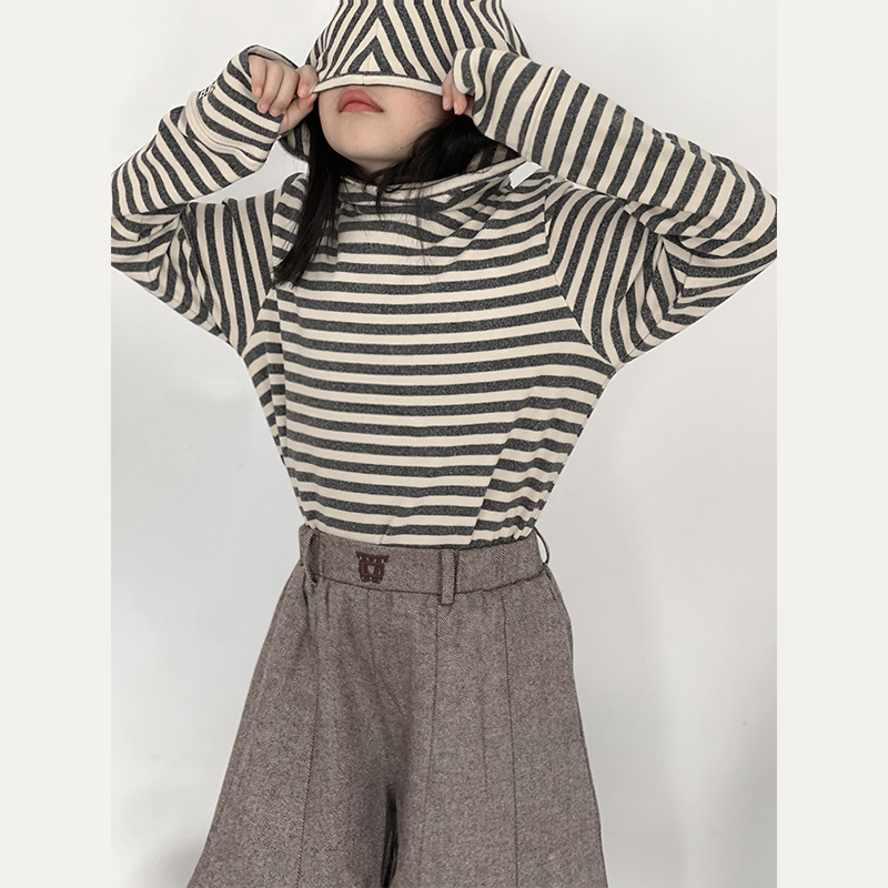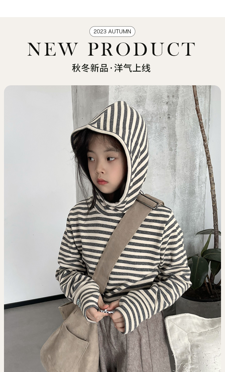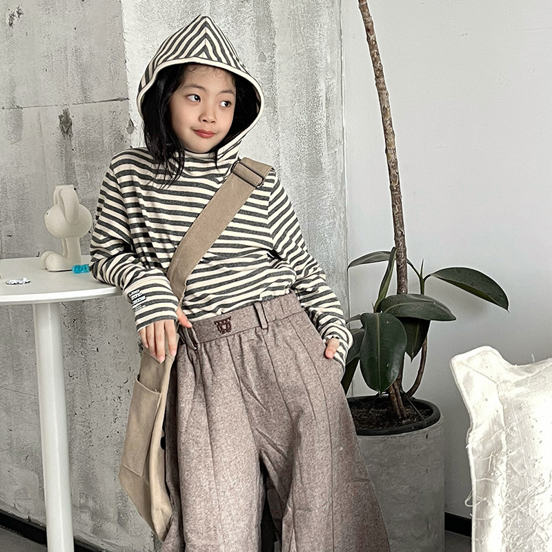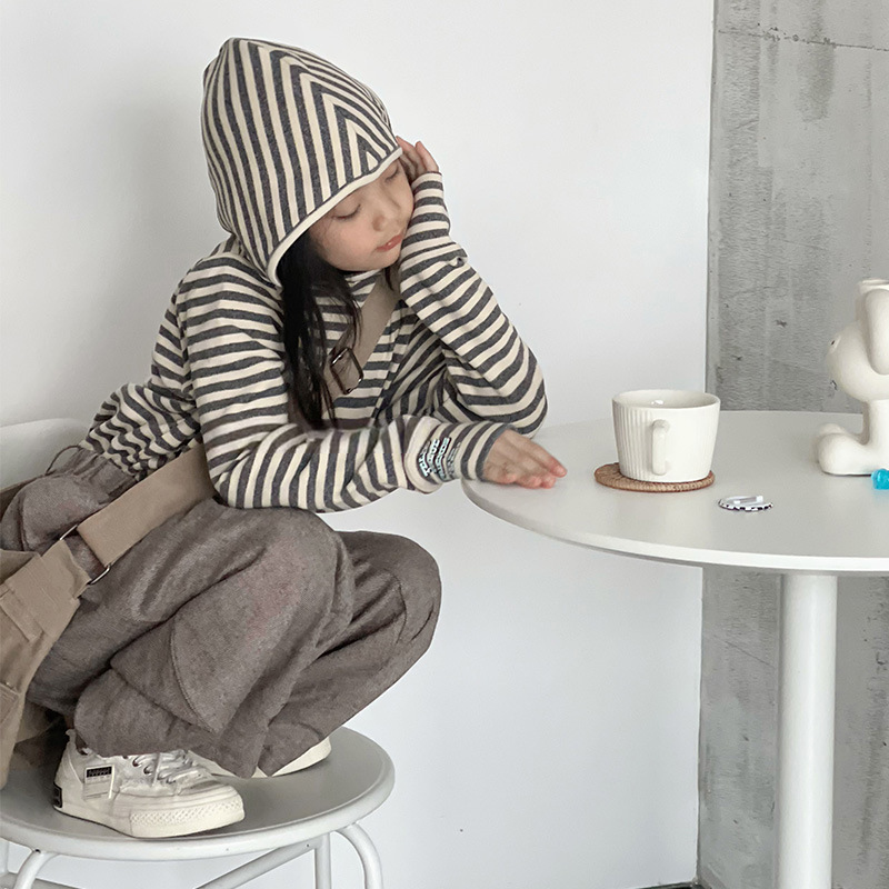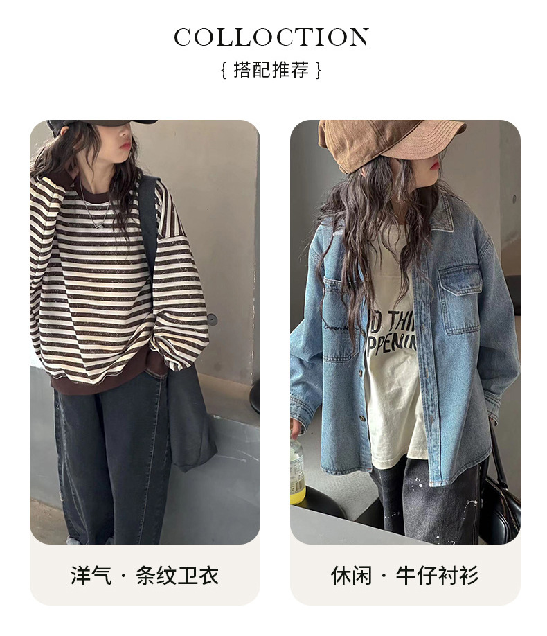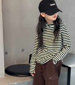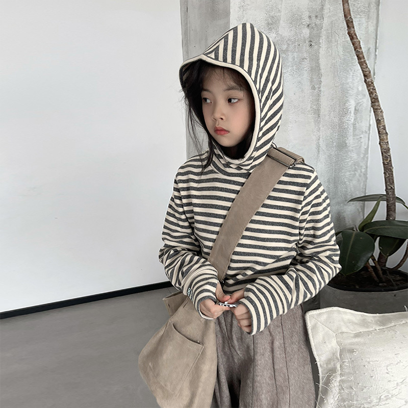 1526 # 한국 아동복 걸스 백킹 셔츠 2024 가을 어린이 후디 중 큰 어린이 티셔츠 소년 웨이 Yi