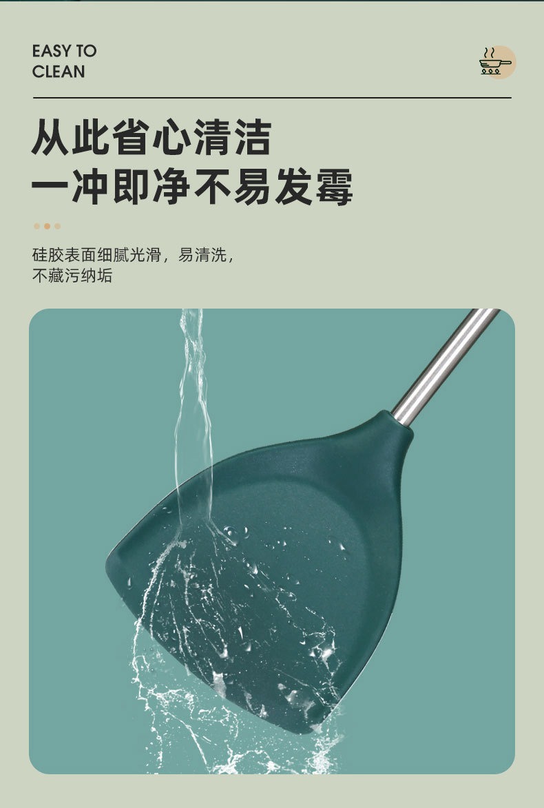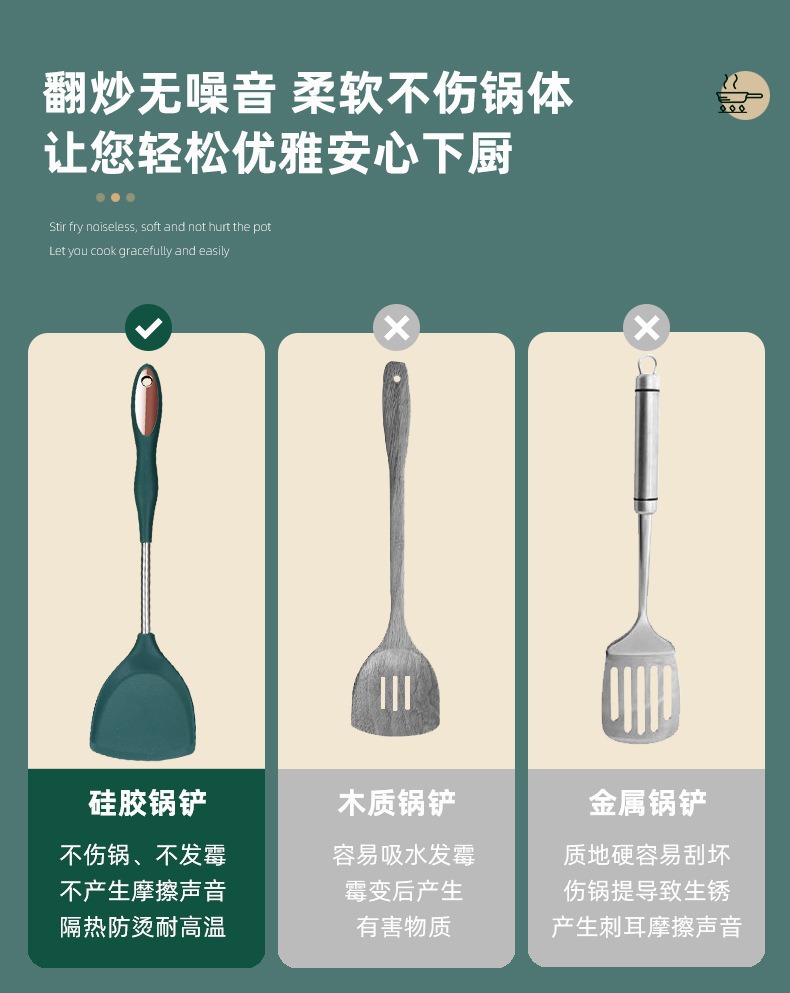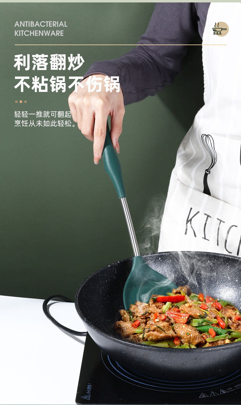 식품 등급 실리콘 주걱 304 스테인레스 스틸 실리콘 볶음 주걱 고온 내성 비 스틱 조리기구 주걱 스푼 세트
