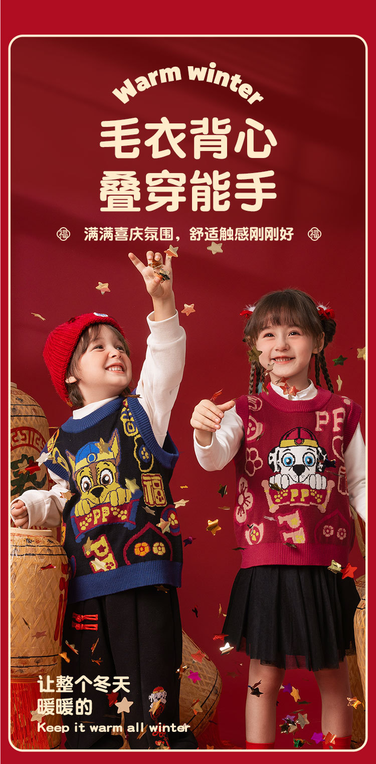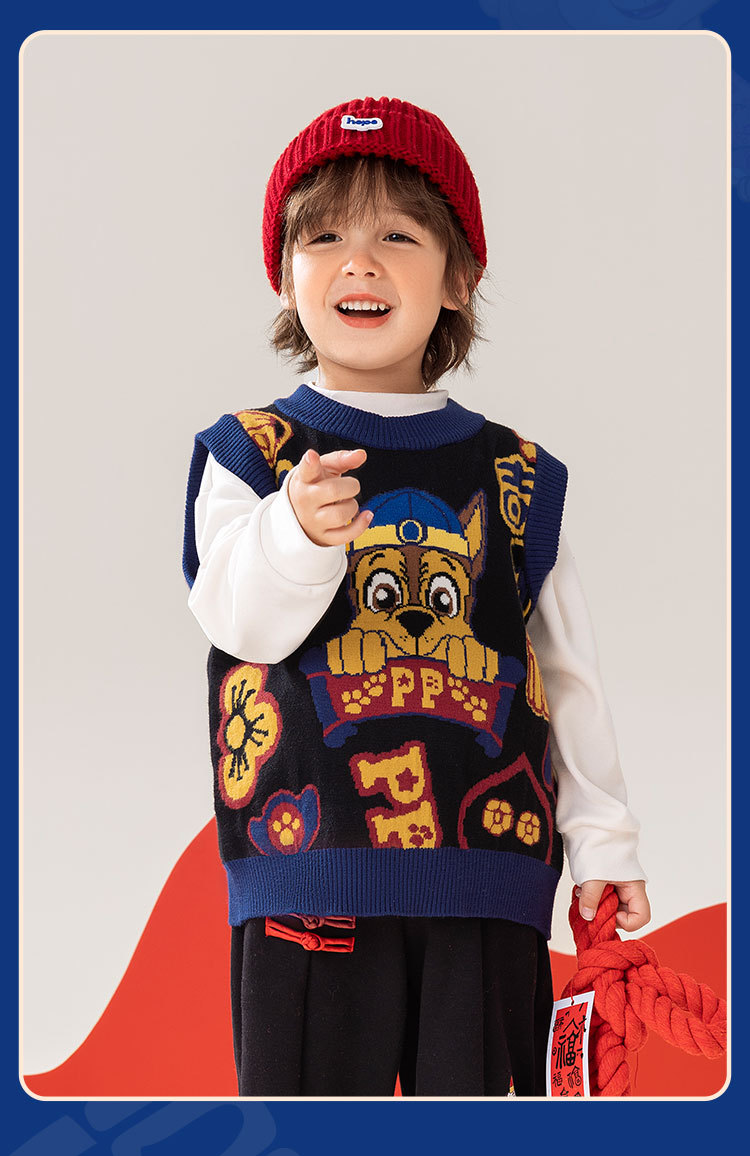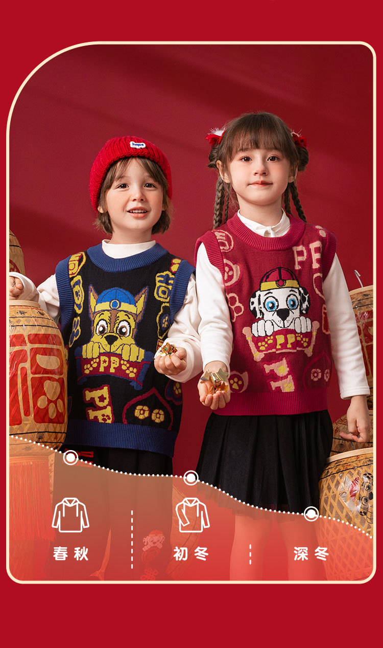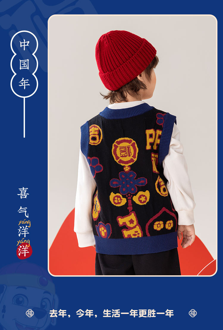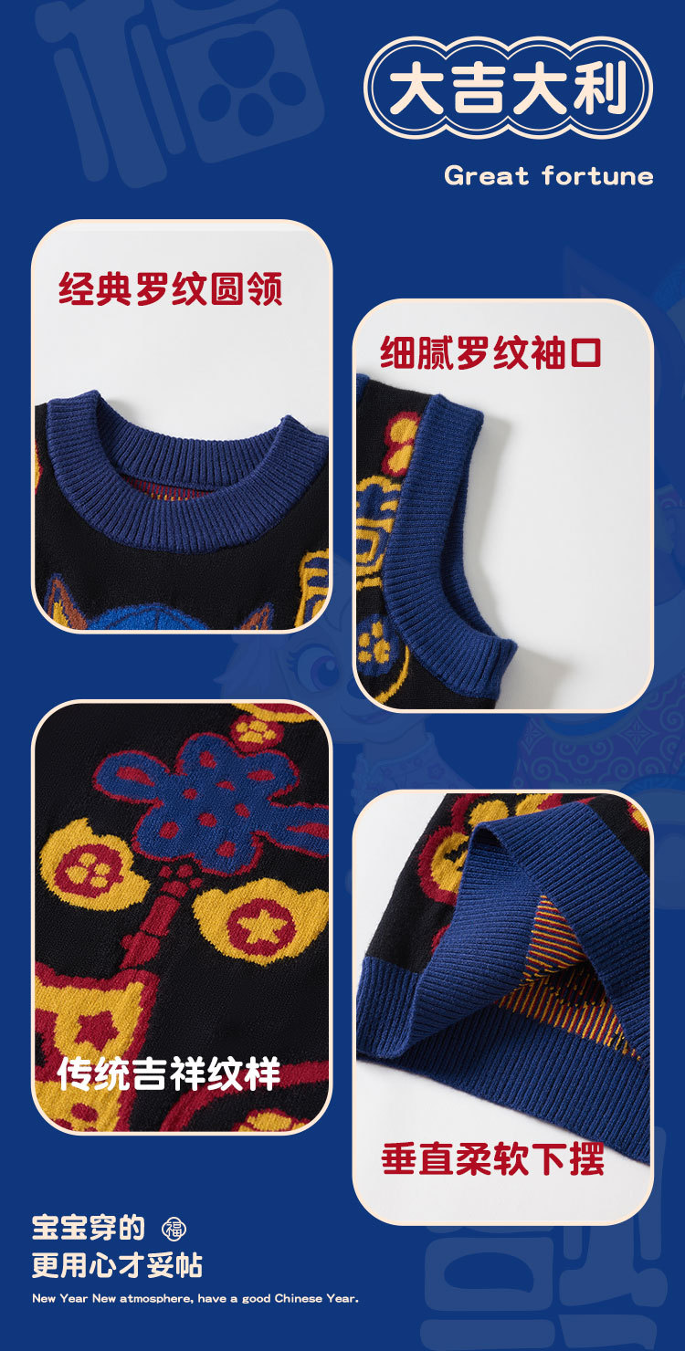 왕왕 팀 어린이 조끼 신년복 가을과 겨울 붉은 크루 넥 니트 소년 스웨터 조끼 겉옷 두꺼운 조끼스토어 가기