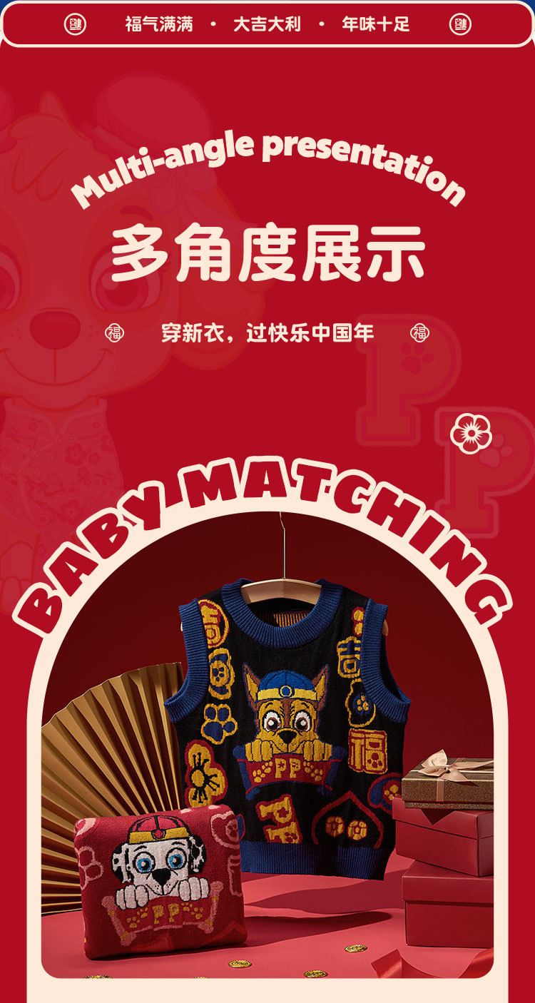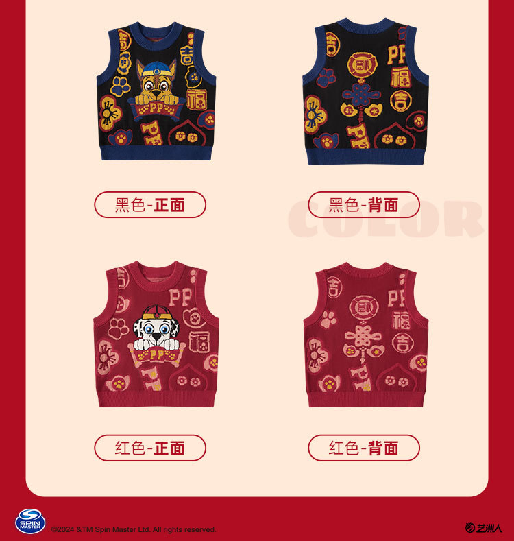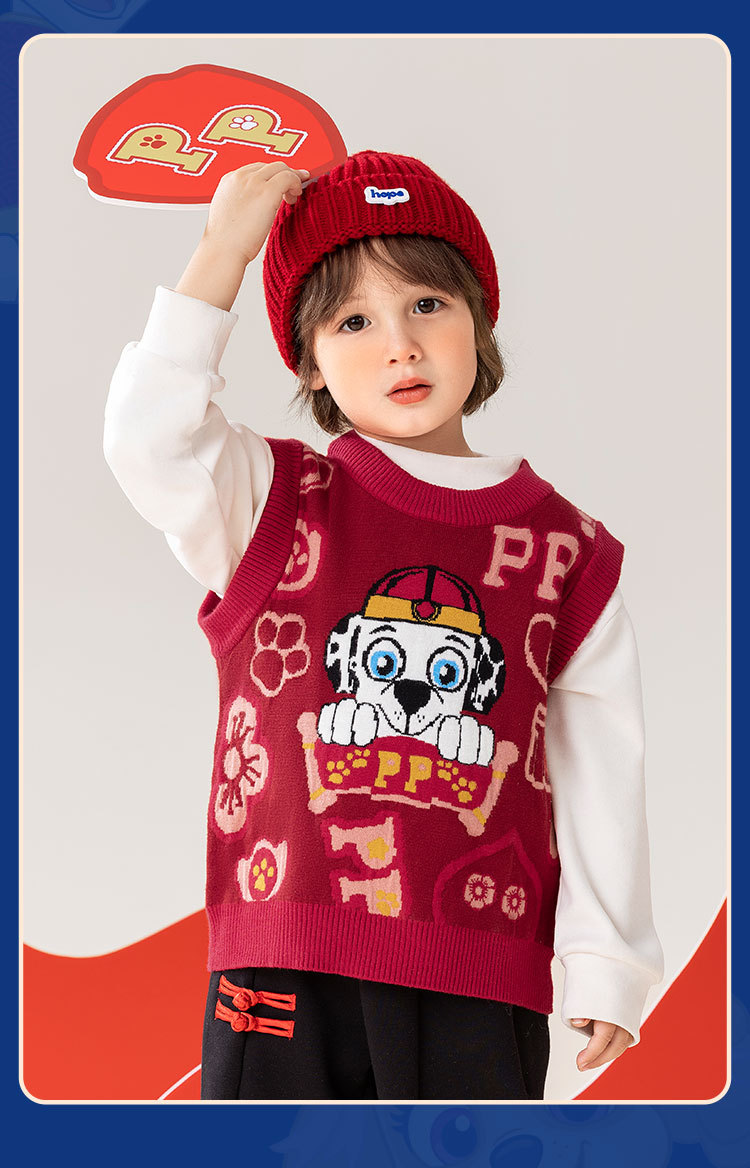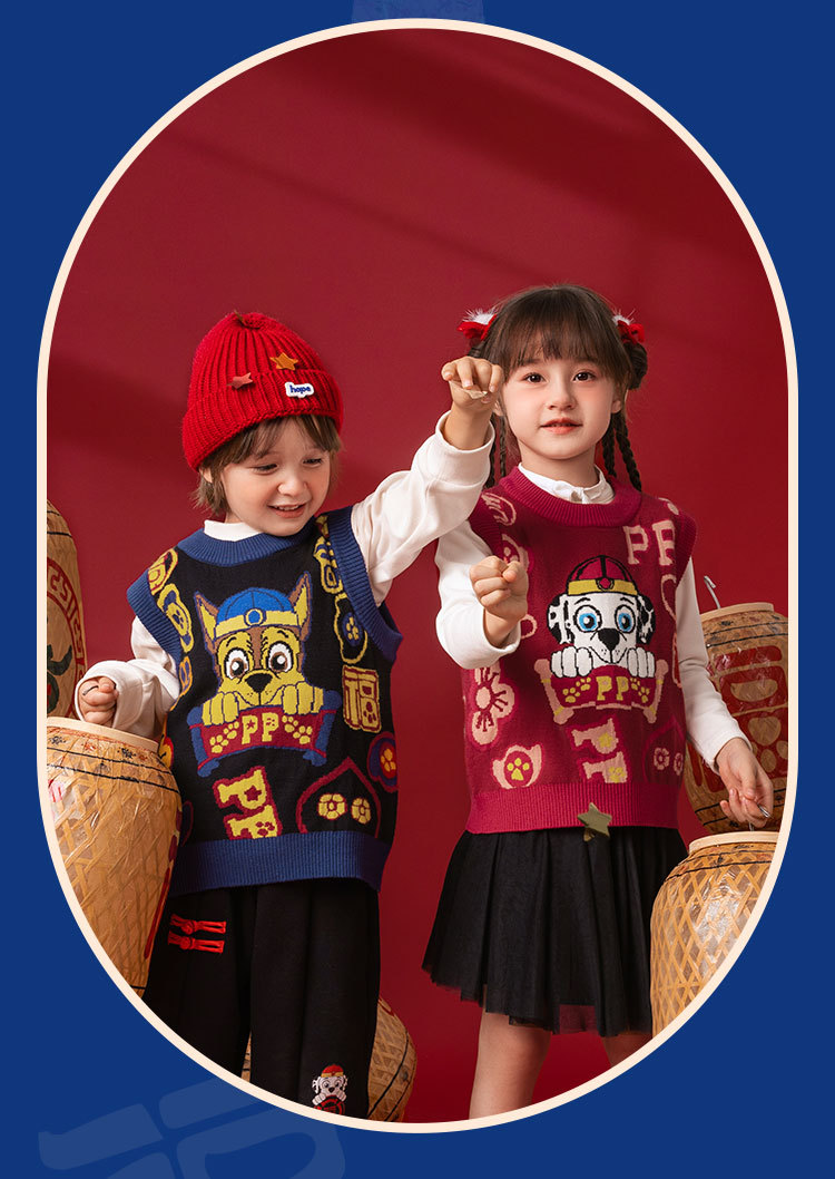 왕왕 팀 어린이 조끼 신년복 가을과 겨울 붉은 크루 넥 니트 소년 스웨터 조끼 겉옷 두꺼운 조끼