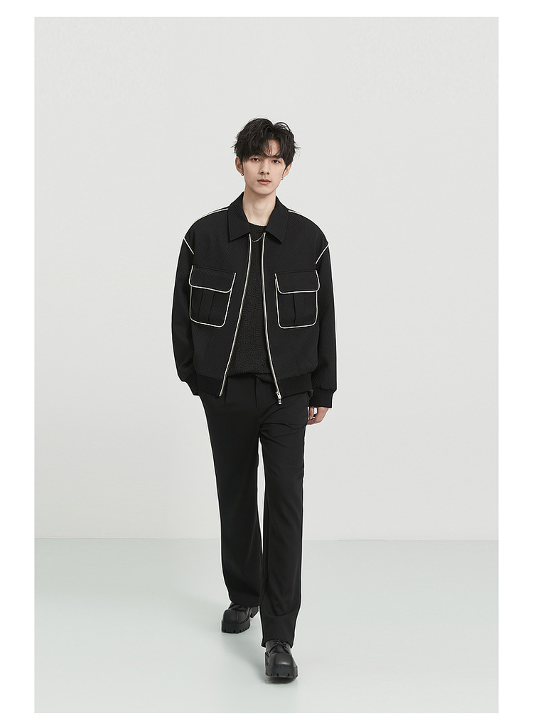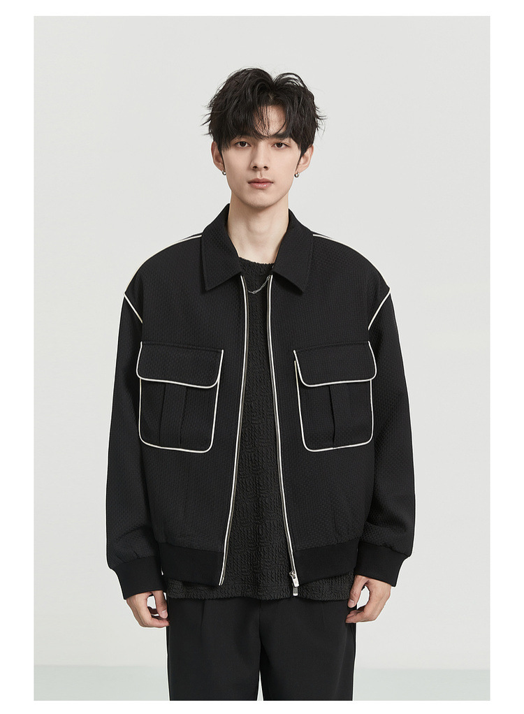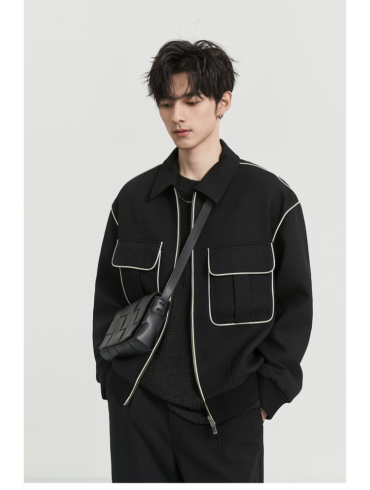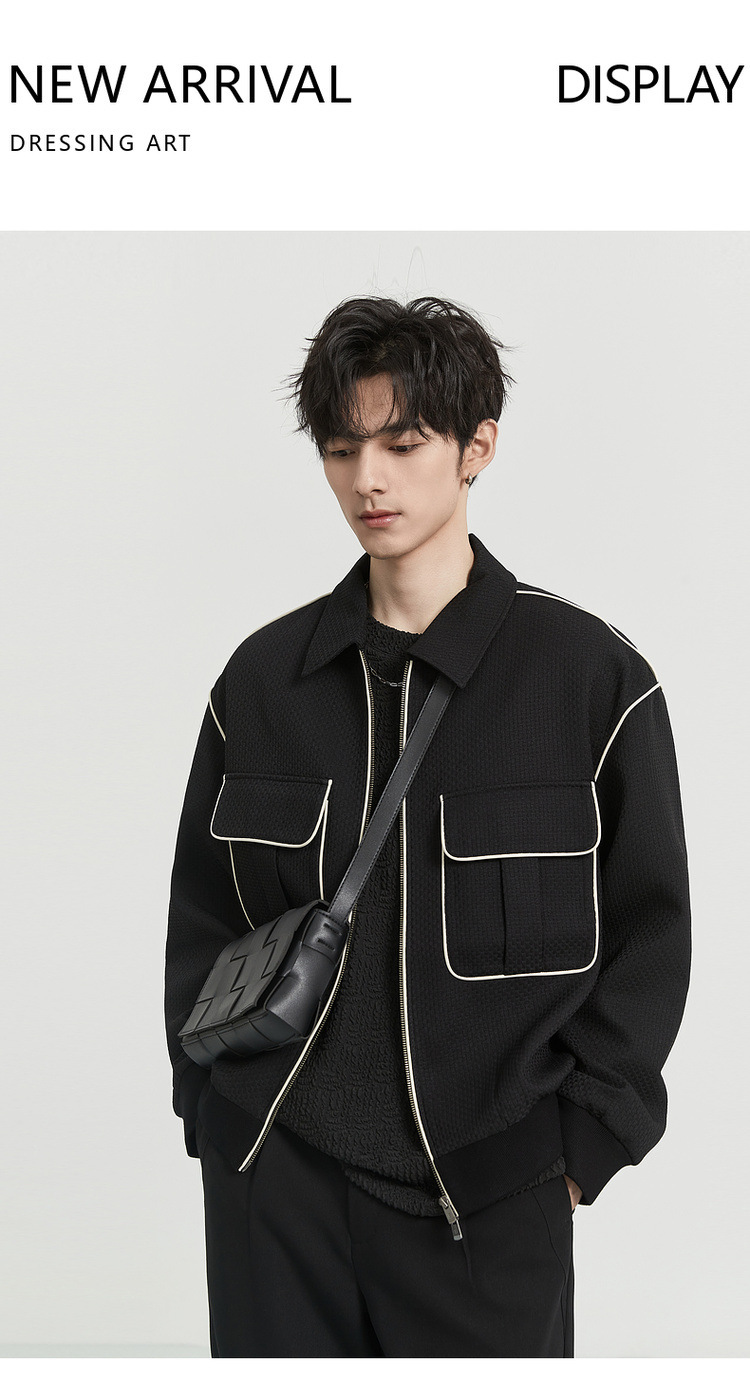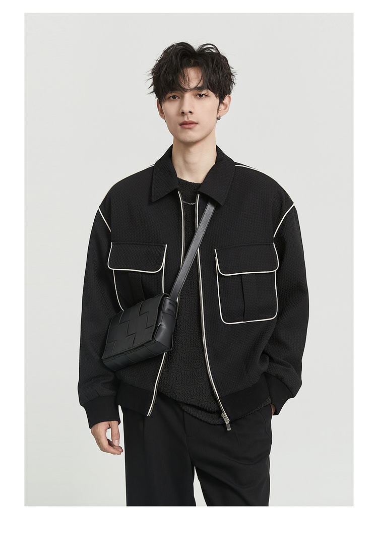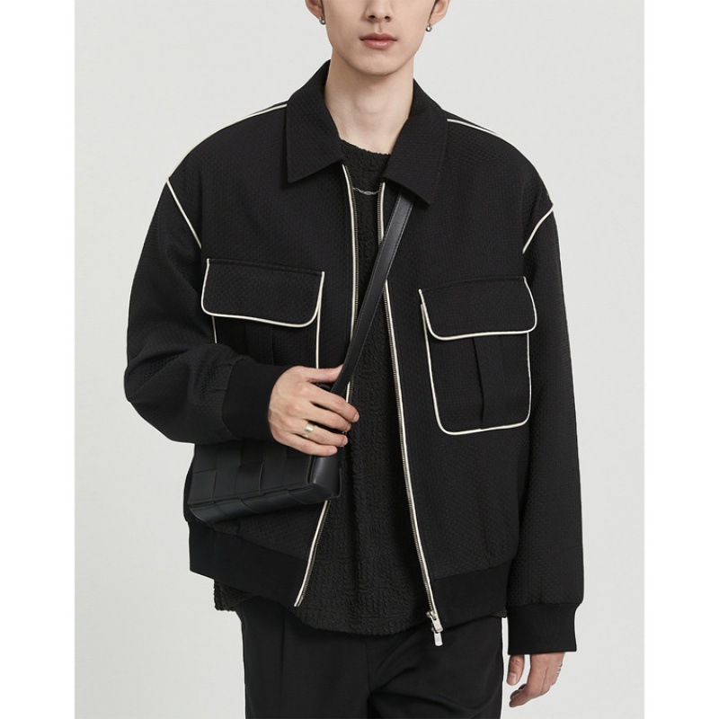 국경 간 고급 디자인 센스 재킷 남자의 봄과 가을 툴링 느슨한 재킷 경쟁 스타일 흑백 캡슐화 대비 컬러 밝은 라인