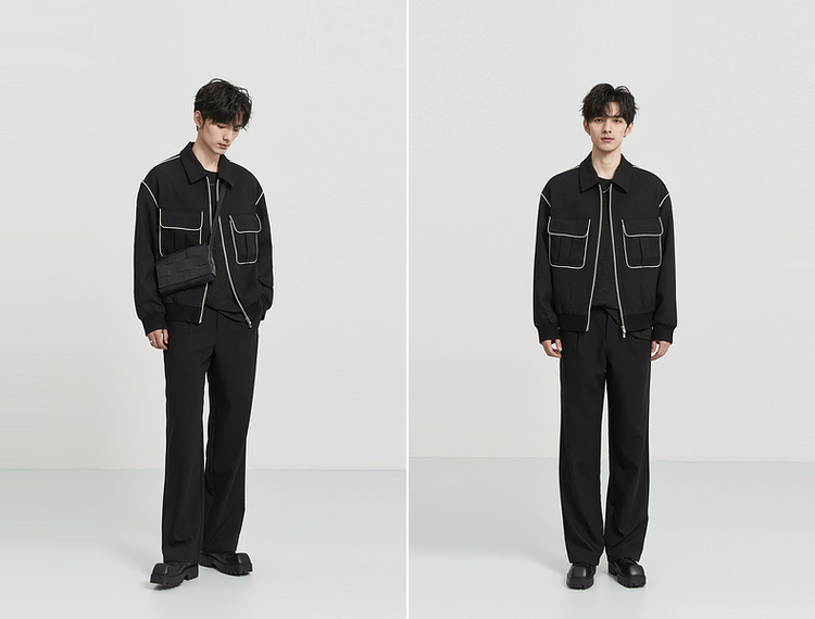 국경 간 고급 디자인 센스 재킷 남자의 봄과 가을 툴링 느슨한 재킷 경쟁 스타일 흑백 캡슐화 대비 컬러 밝은 라인스토어 가기