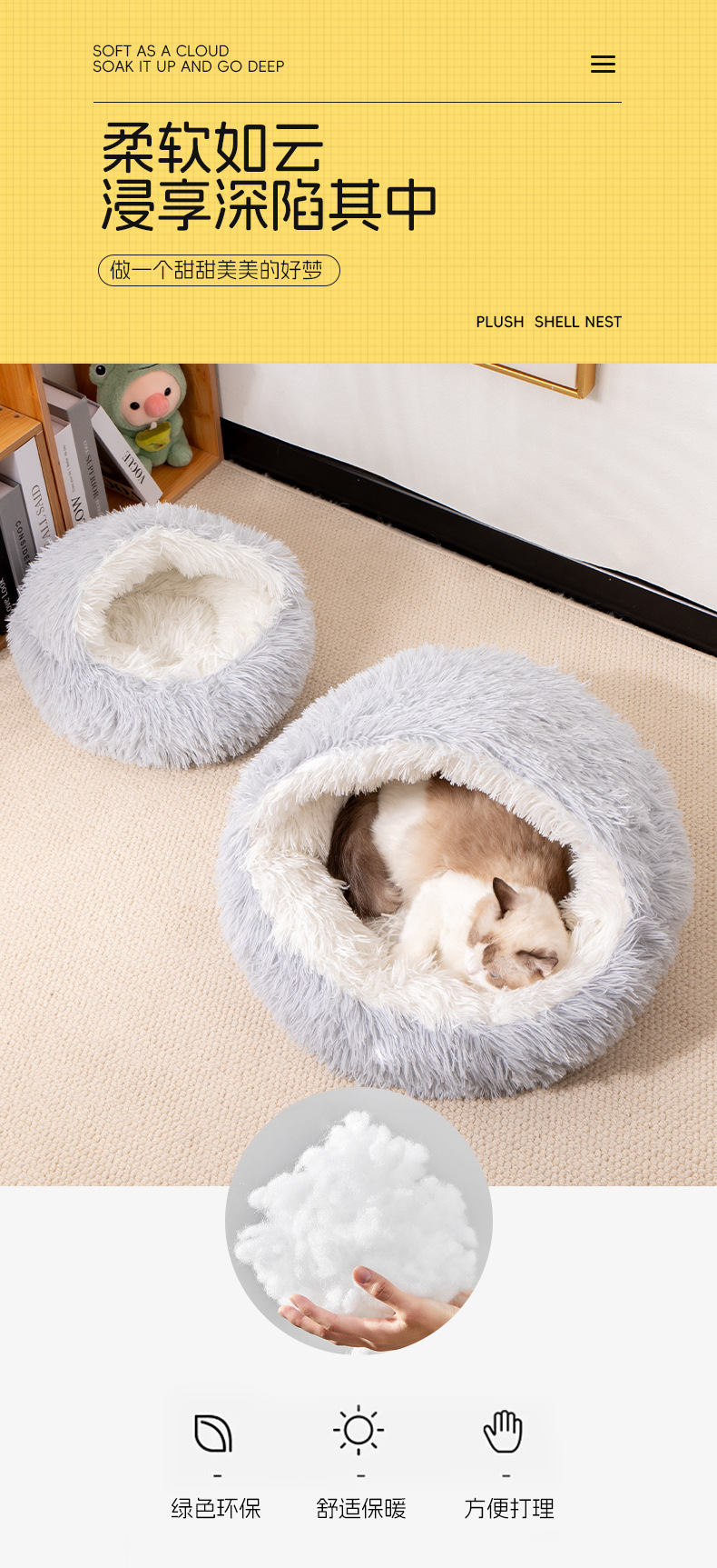 뜨거운 긴 머리 껍질 둥지 벨벳 두꺼운 잠자는 고양이 침낭 따뜻한 가을과 겨울 보편적 인 고양이와 개 사육장 국경 도매스토어 가기