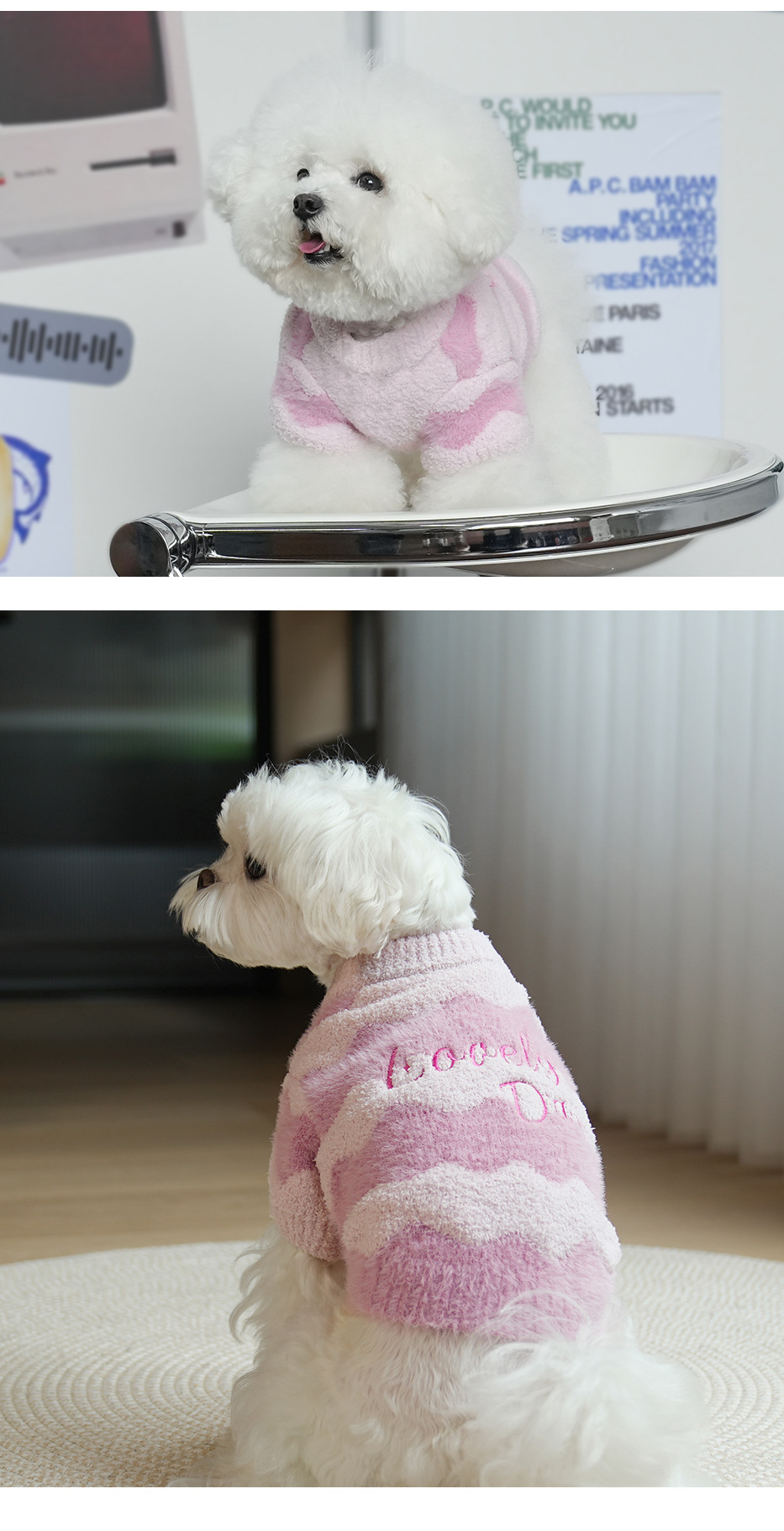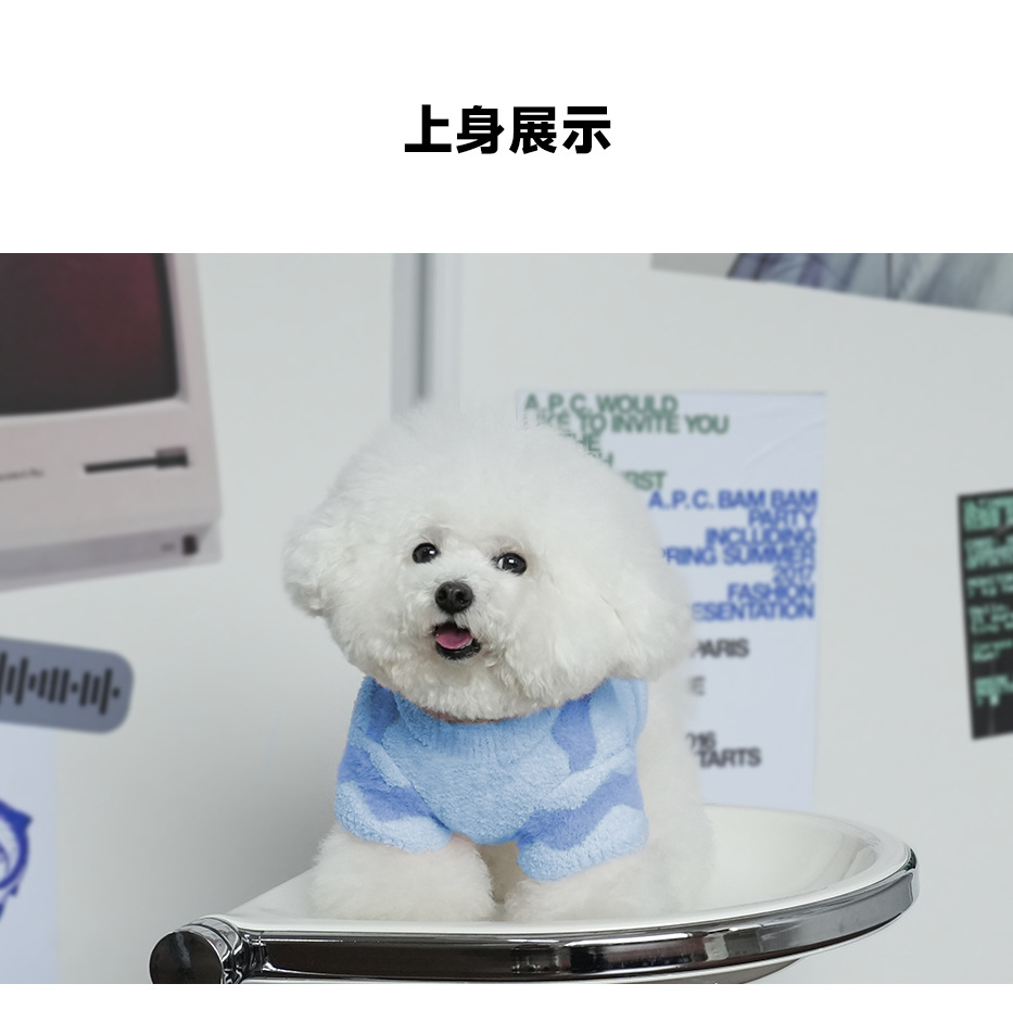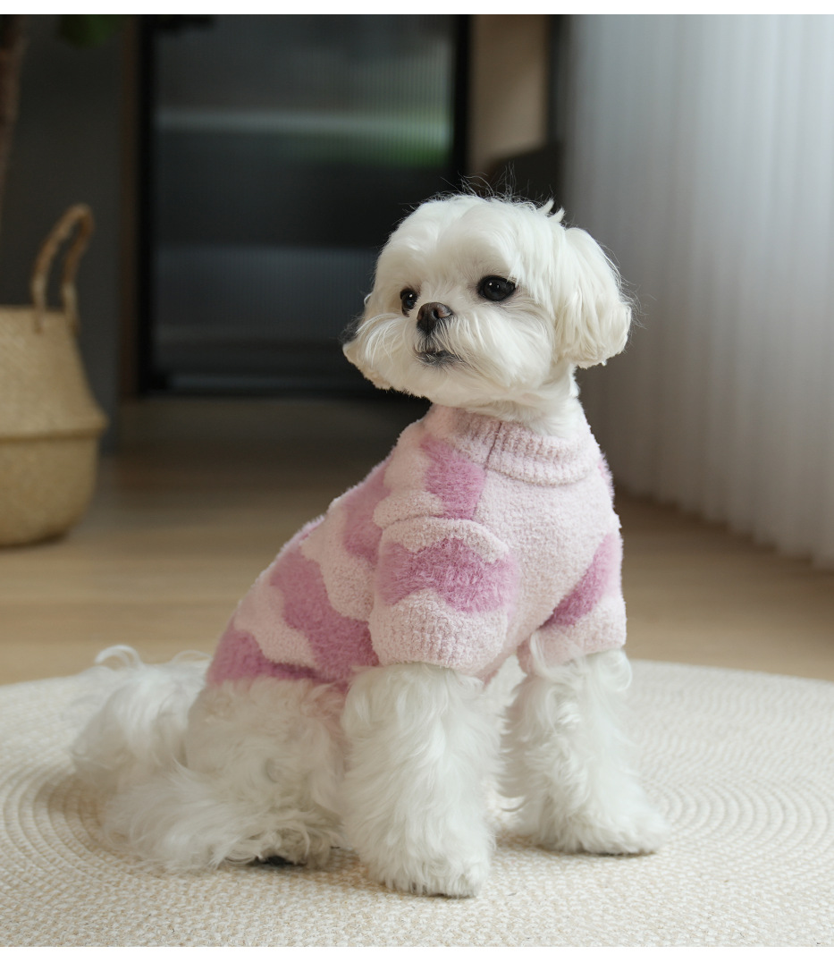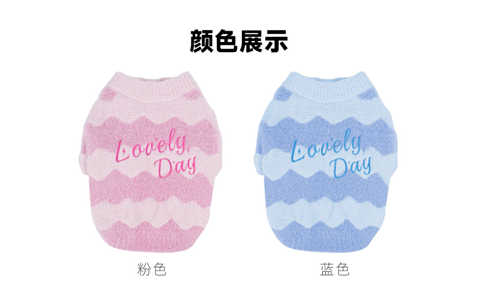 애완 동물 의류 가을과 겨울 물 리플 반 벨벳 풀오버 스웨터 두 다리 입체 자수 따뜻한 개 스웨터 도매