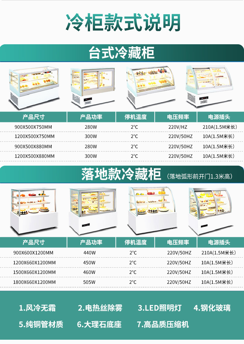 케이크 냉장 디스플레이 캐비닛 전면 도어 아크 상업용 우유 차 가게 과일 신선한 캐비닛 공랭식 웨스트 포인트 디저트 냉장고