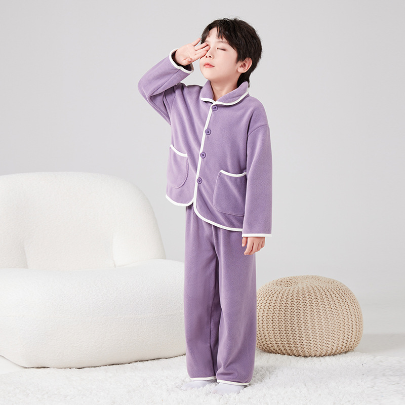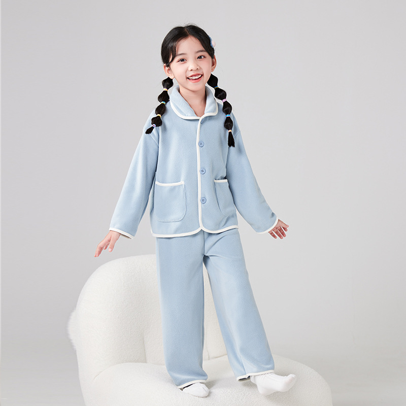 가을과 겨울 새로운 아이들의 느슨한 잠옷 가을 극지 양털 단색 카디건 소년 소녀 따뜻한 가정 옷 세트