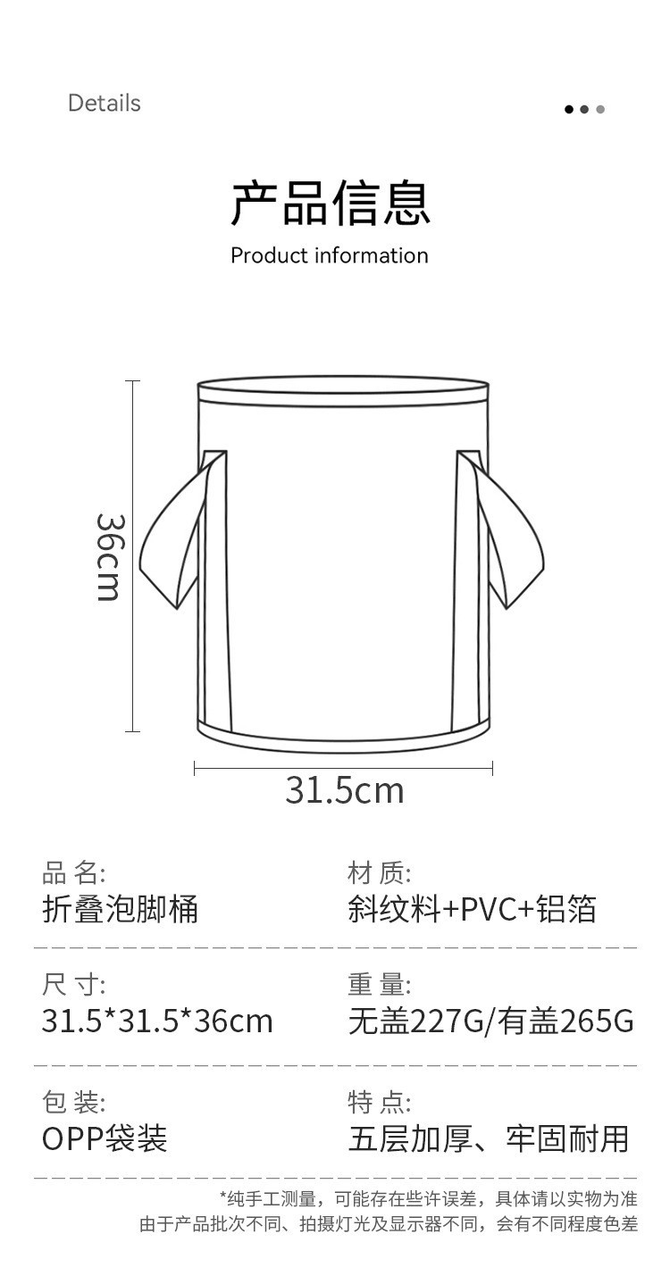 접이식 발 담근 가방 높고 깊은 송아지 가정용 휴대용 발 목욕 분지 열 절연 발 적신 배럴 일정한 온도