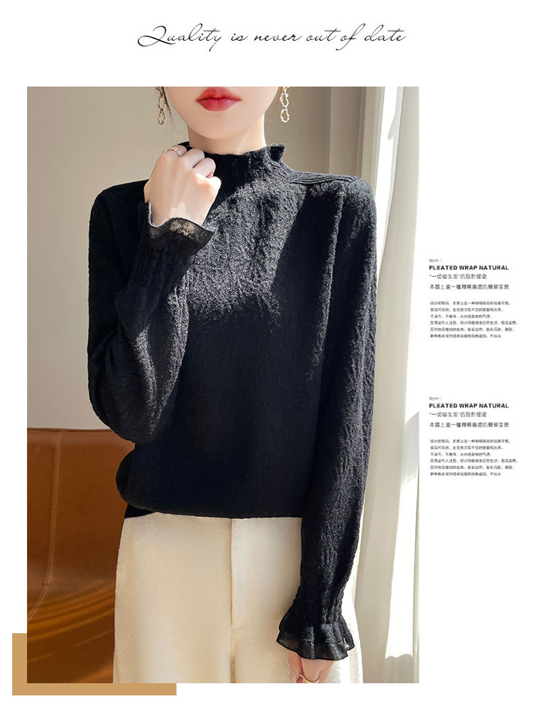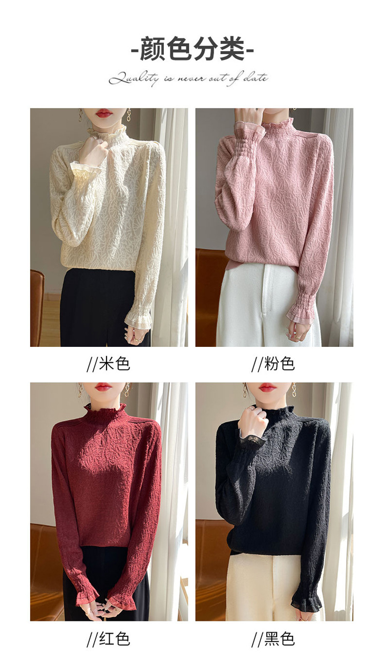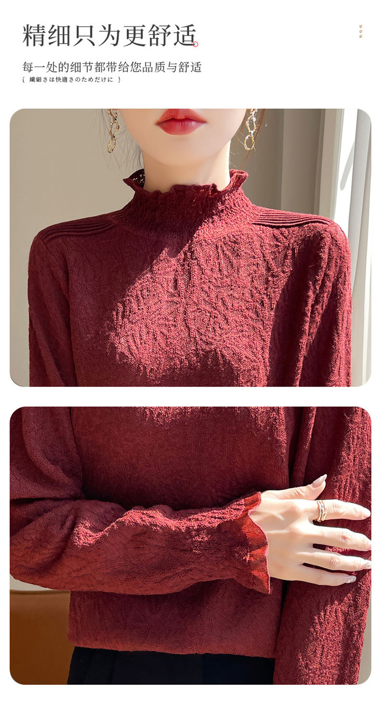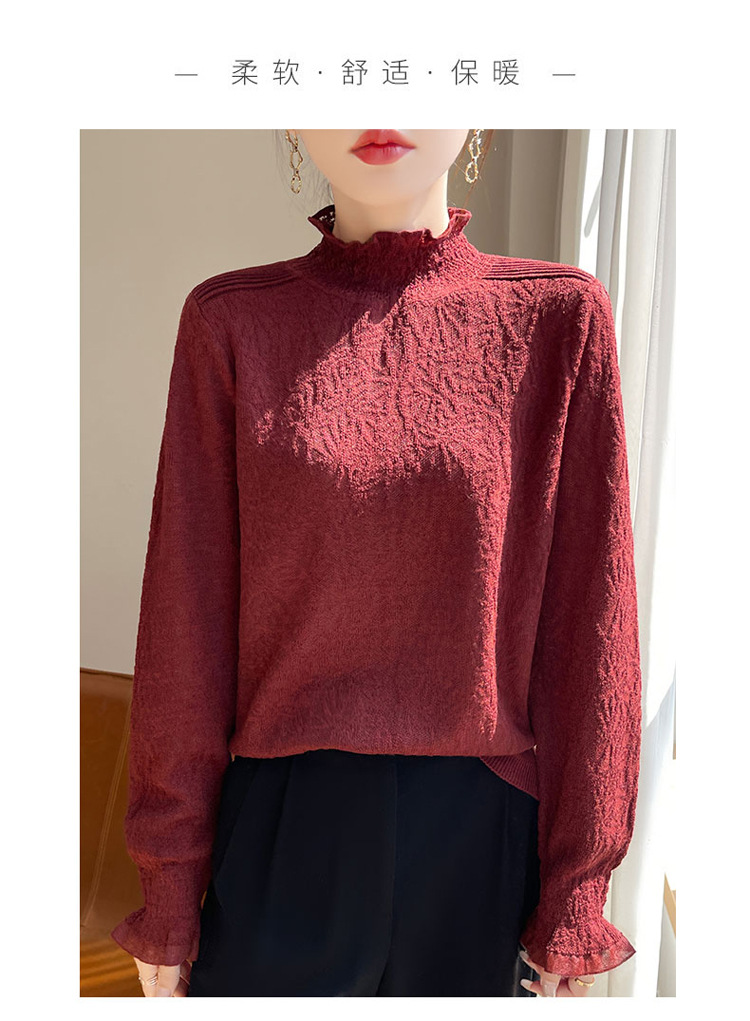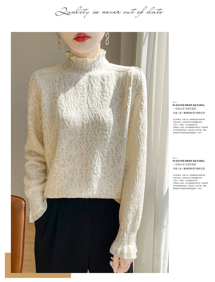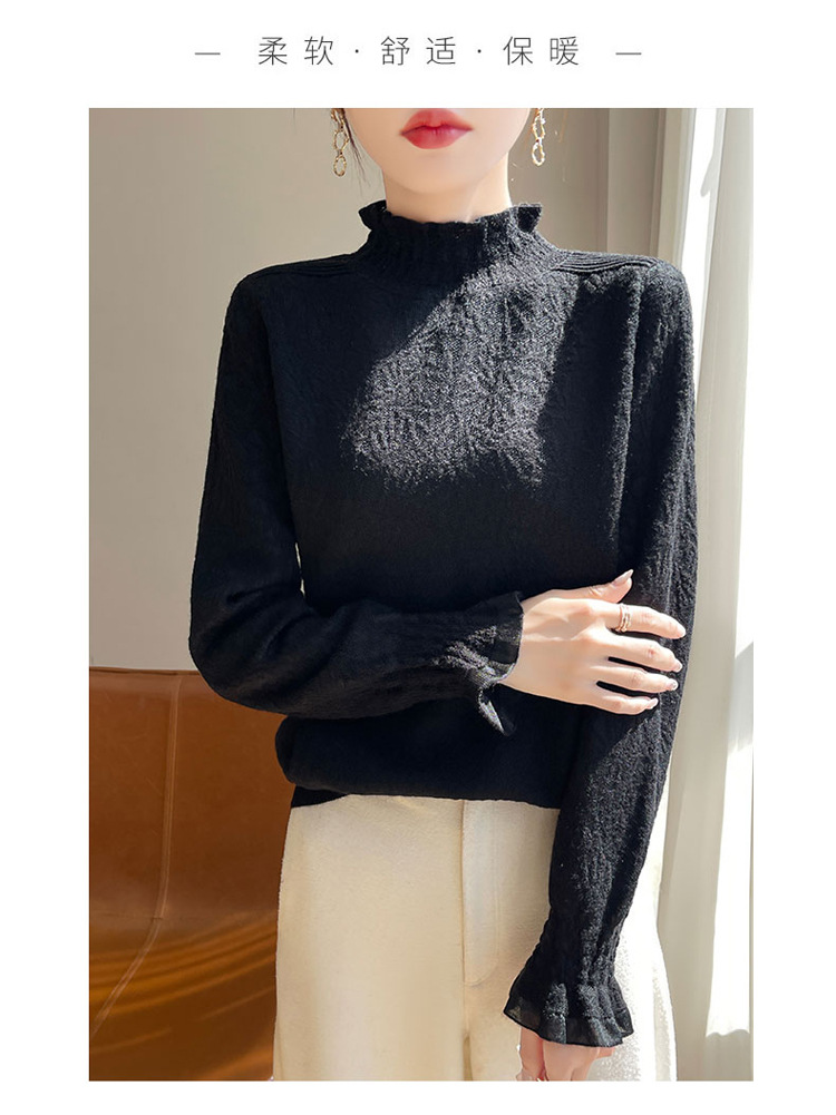새로운 스타일의 러플 테일러드 하프 터틀넥 여성용 고급 울 니트 베이스 셔츠 루즈핏 긴팔 상의 캐주얼 심플 스웨터스토어 가기