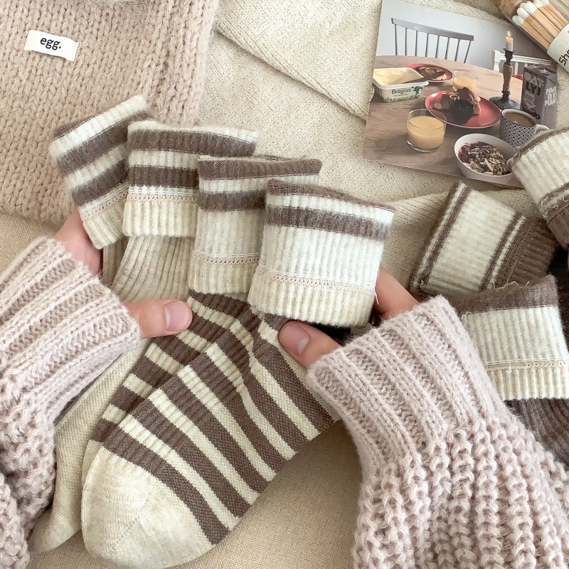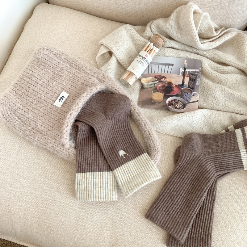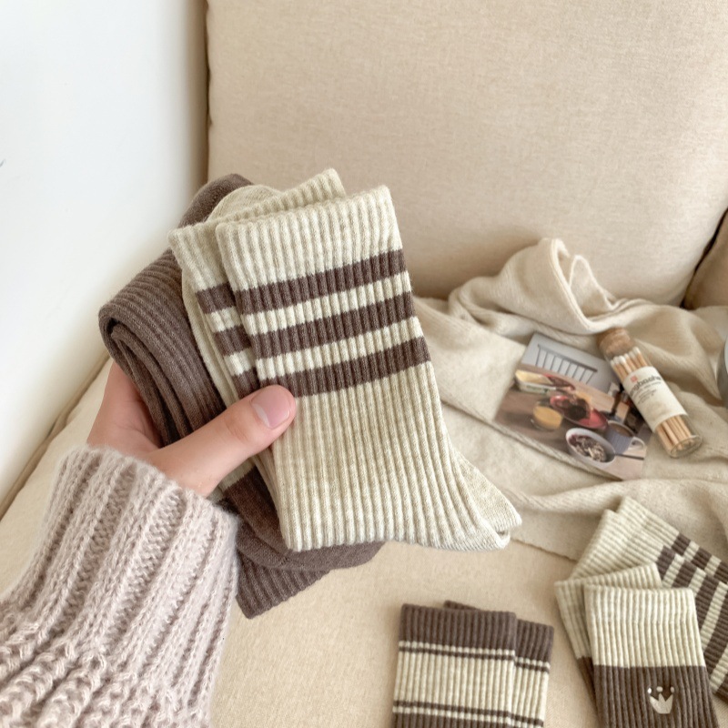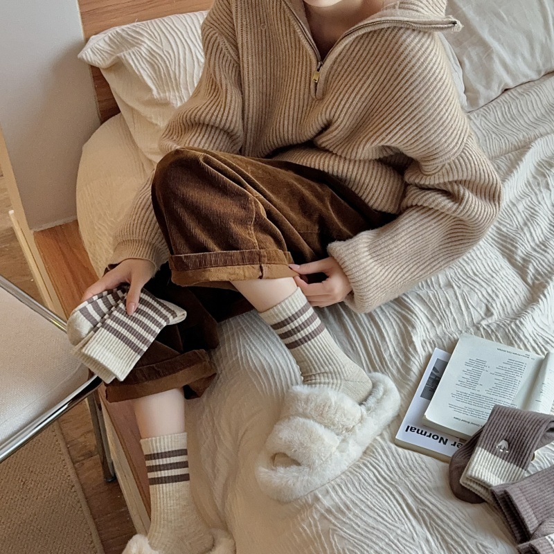 24 년 된 일본식 뒤꿈치 자수 두꺼운 따뜻한 모조 더블 바늘 안티 필링 스크럽 양 양말 다크 브라운 스타일 여성용 미드 튜브 양말스토어 가기