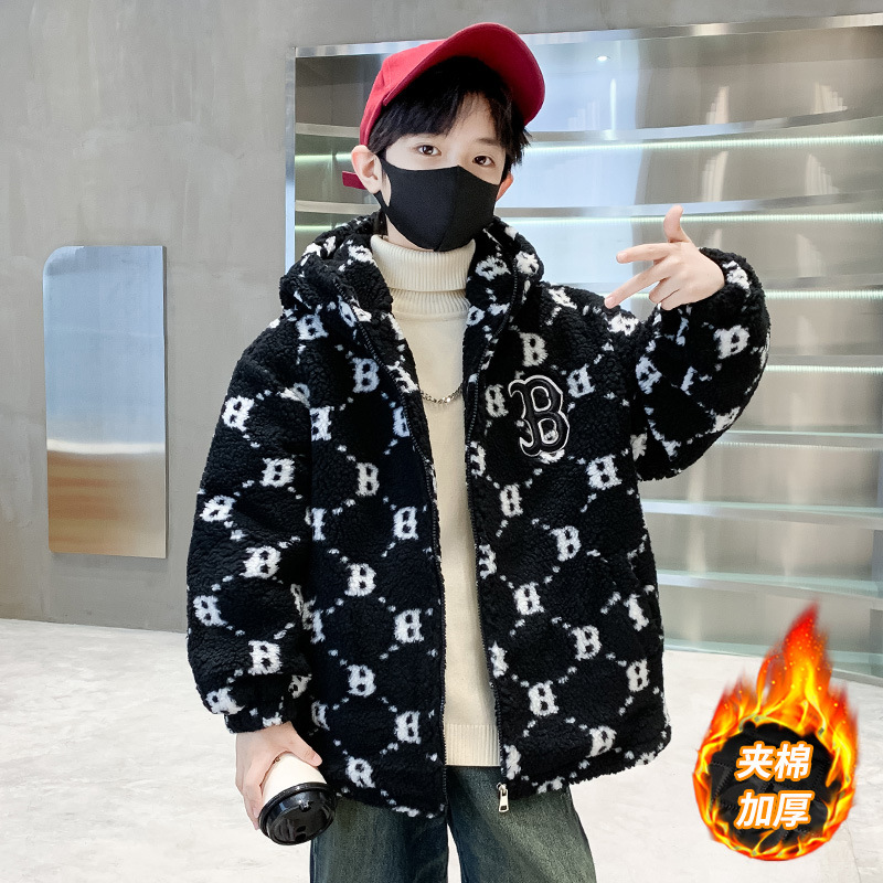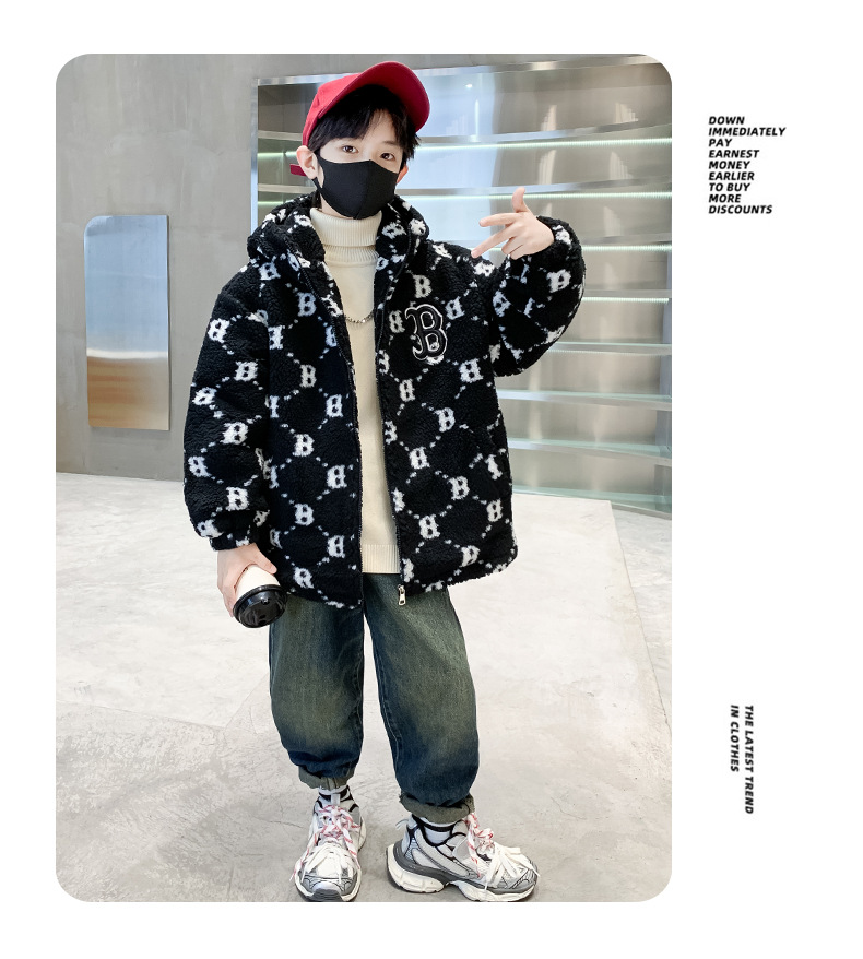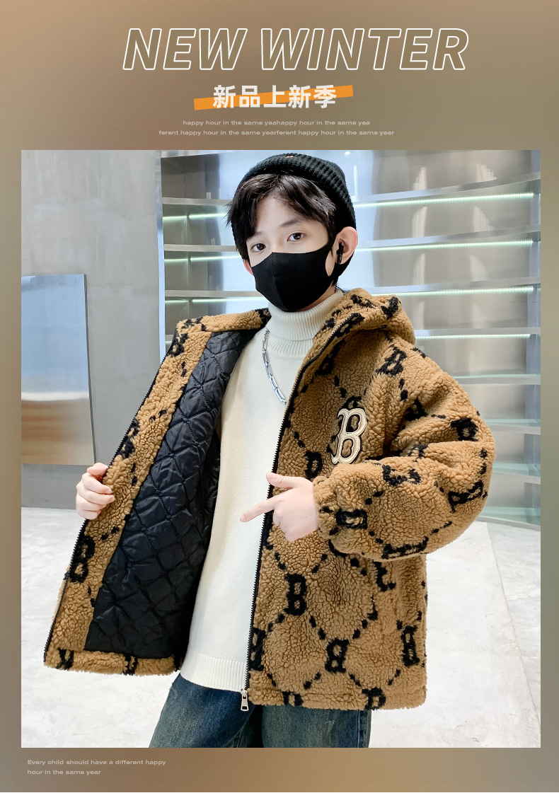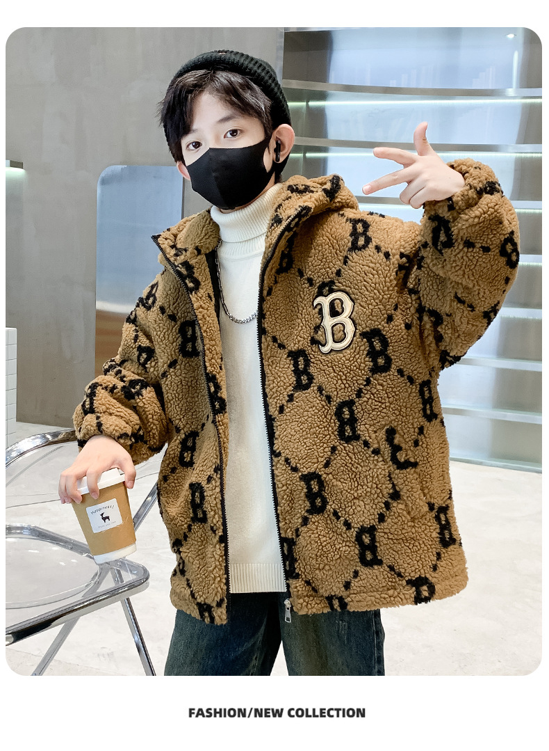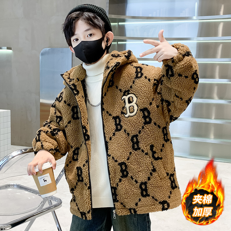 소년 코트 2024 년 가을과 겨울 새로운 서양식 어린이 두꺼운 겨울 코트 캐시미어 큰 소년의 잘 생긴 모직 스웨터스토어 가기