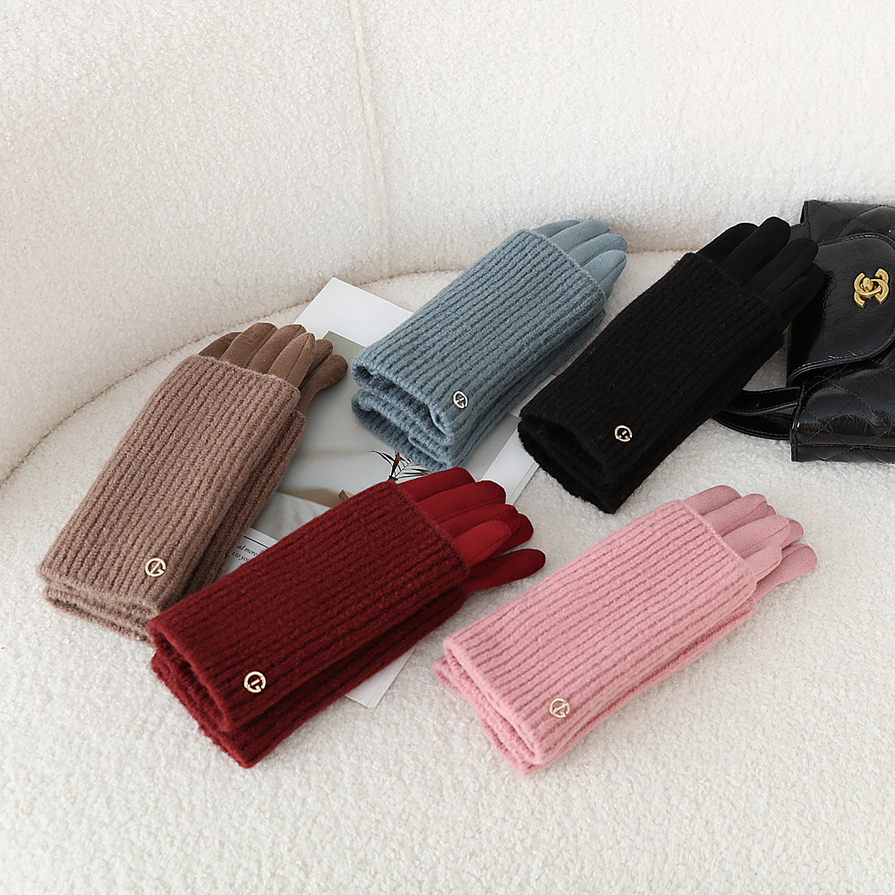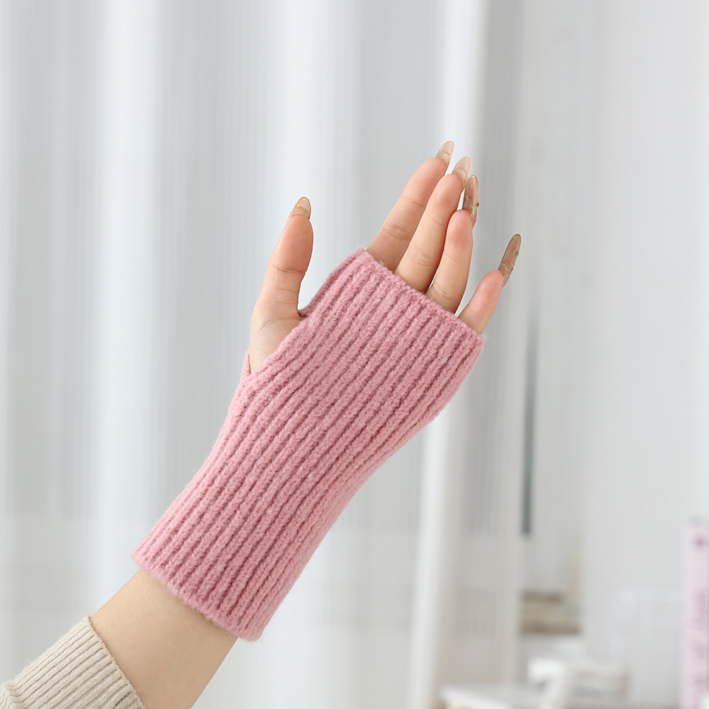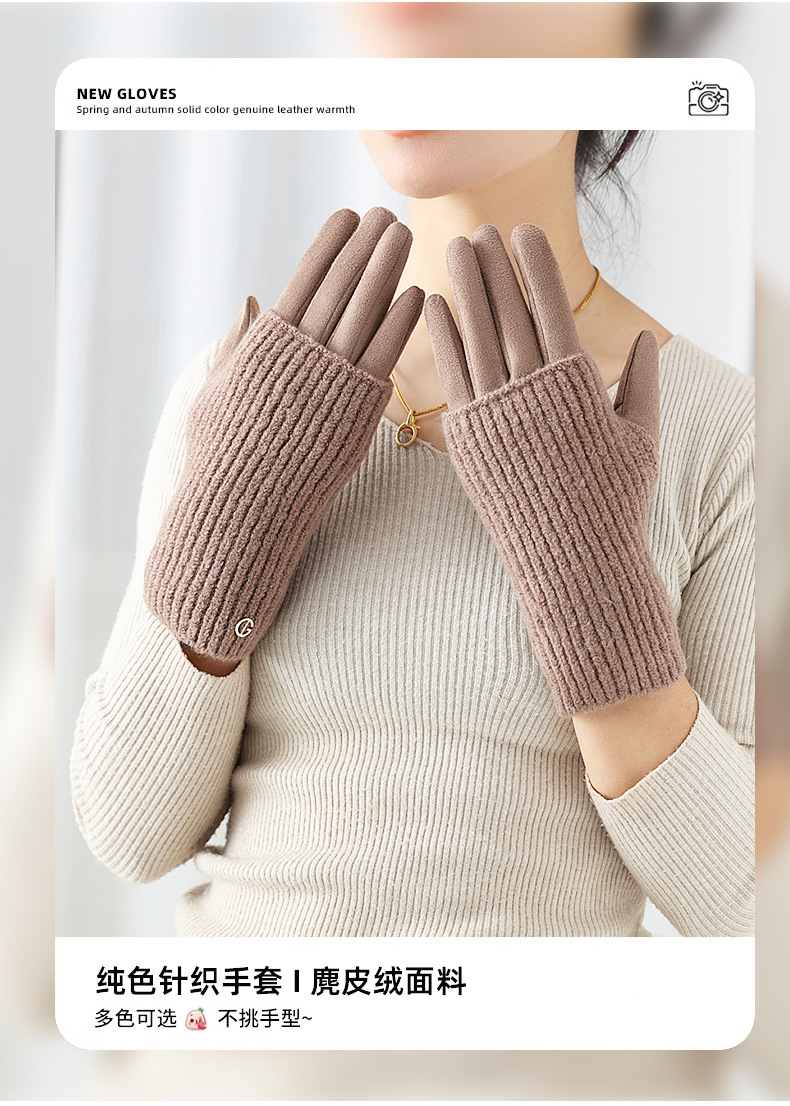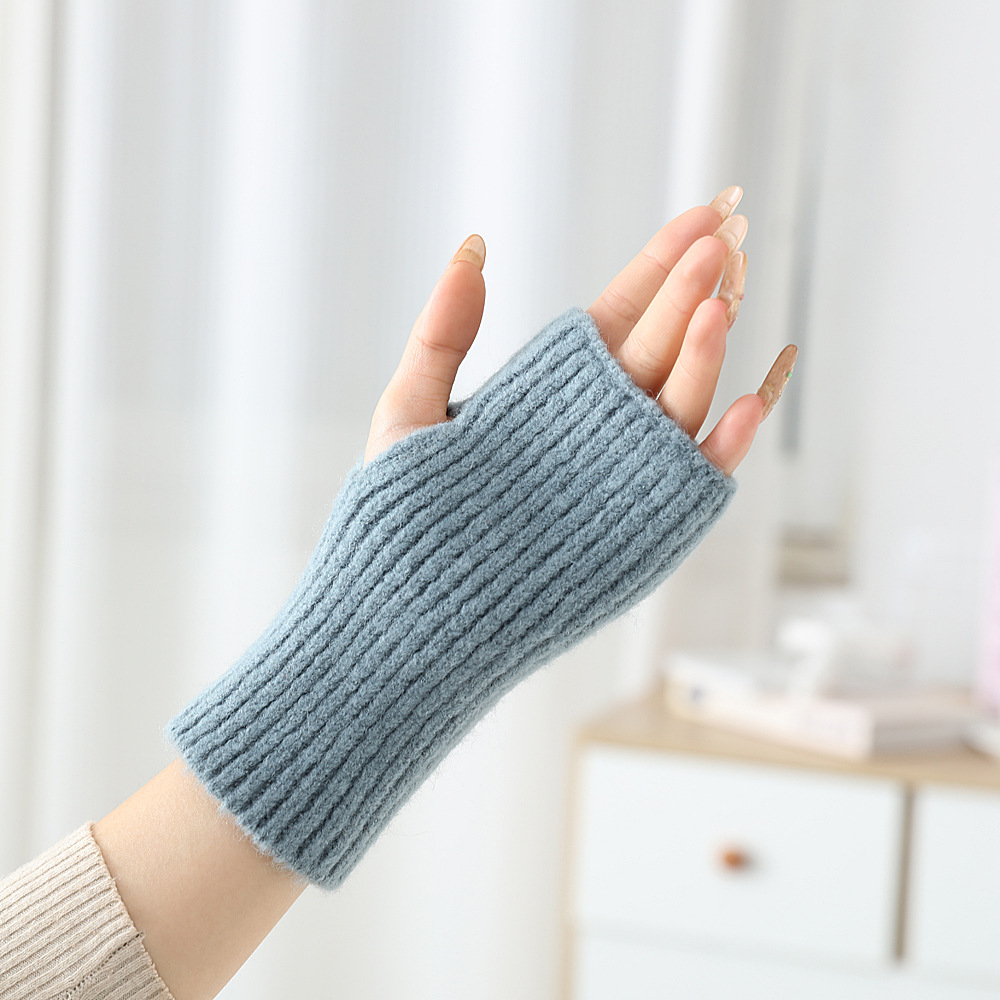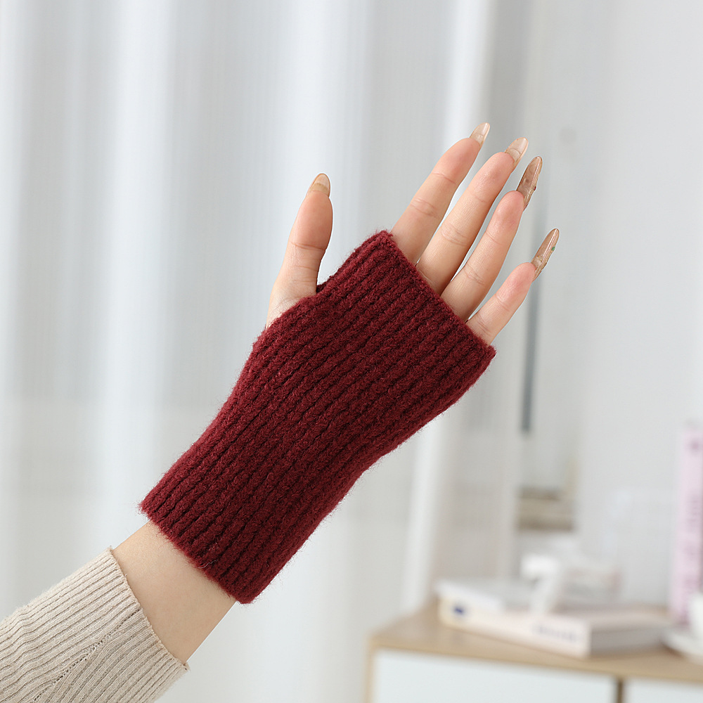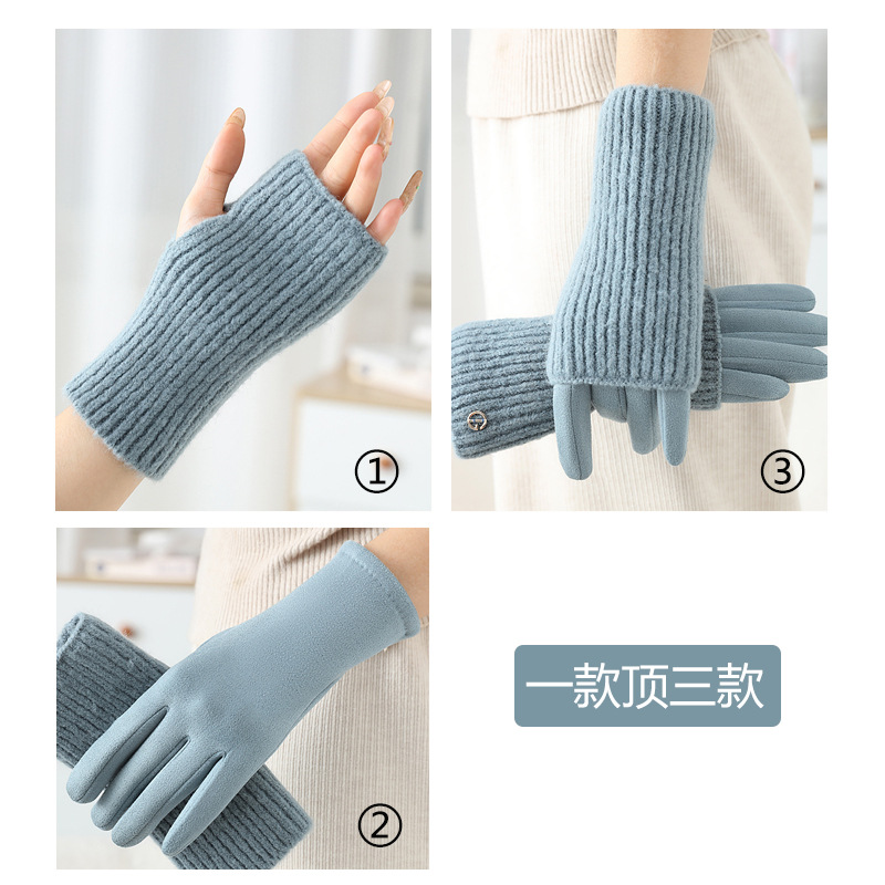 일본식 3중 착용 단색 니트 모직 탈부착 장갑, 손가락 노출형, 터치스크린 사용 가능, 겨울철 보온 방한 장갑