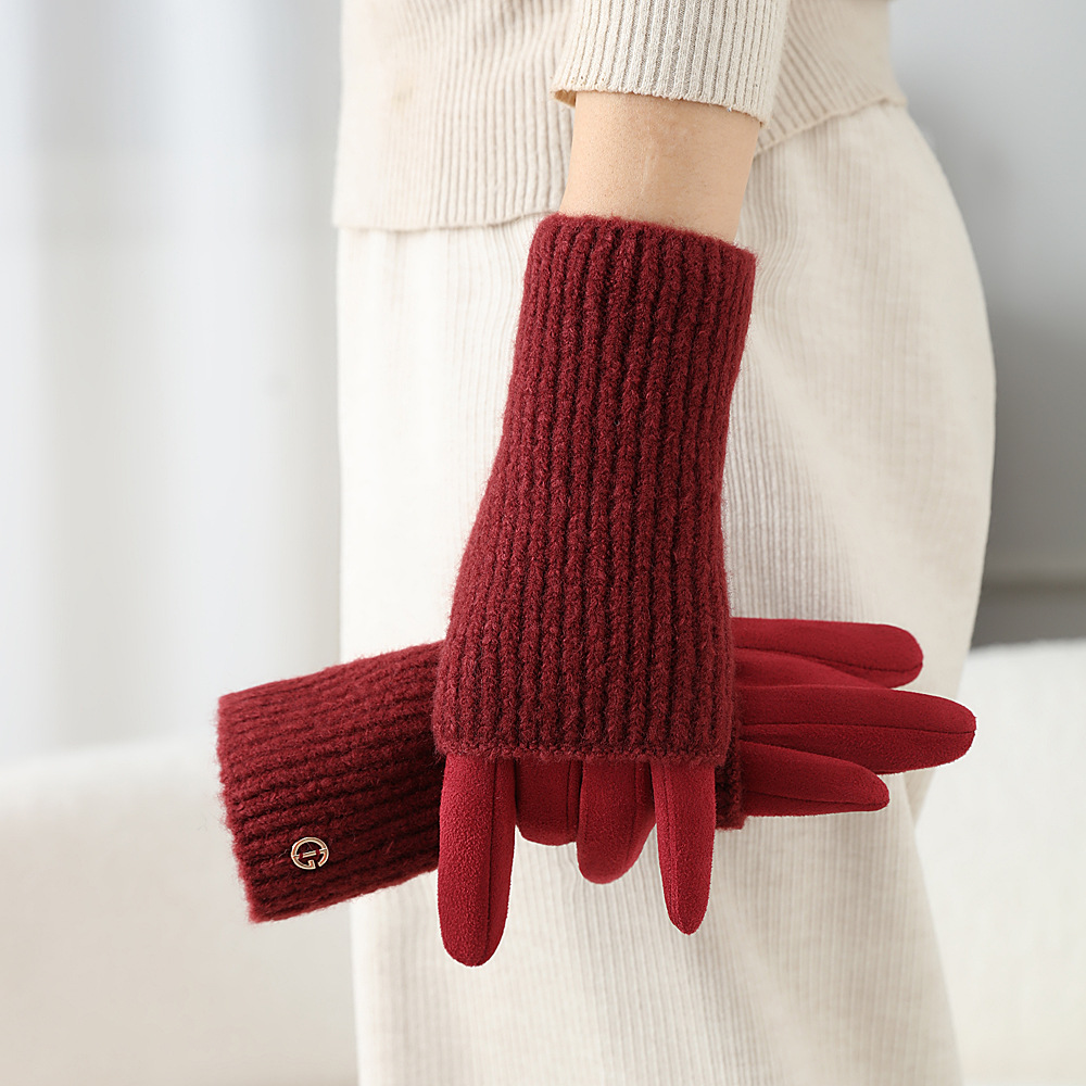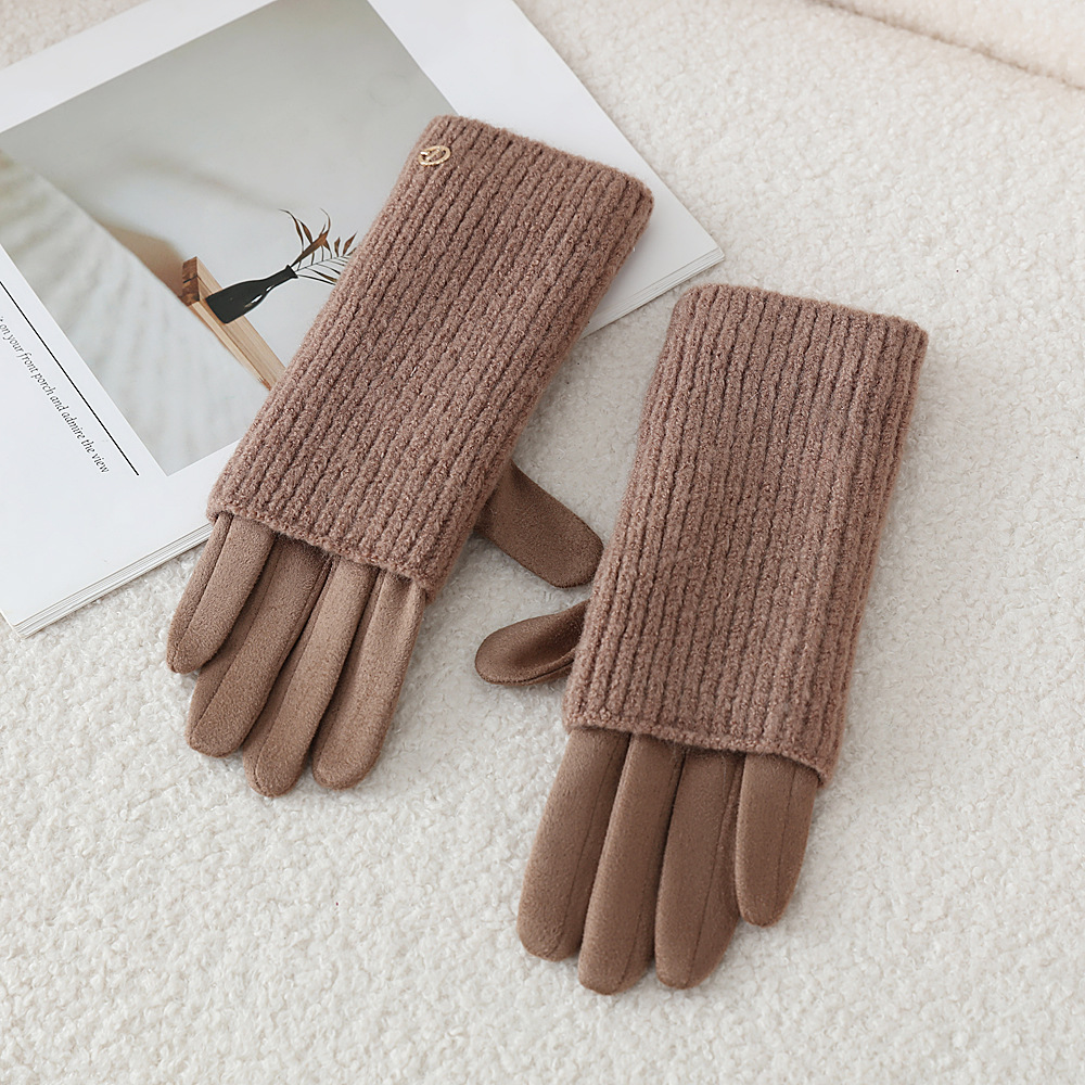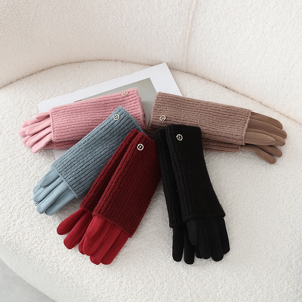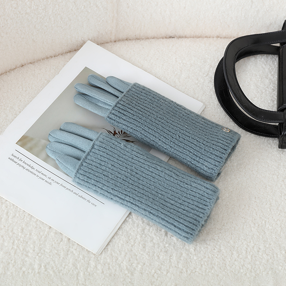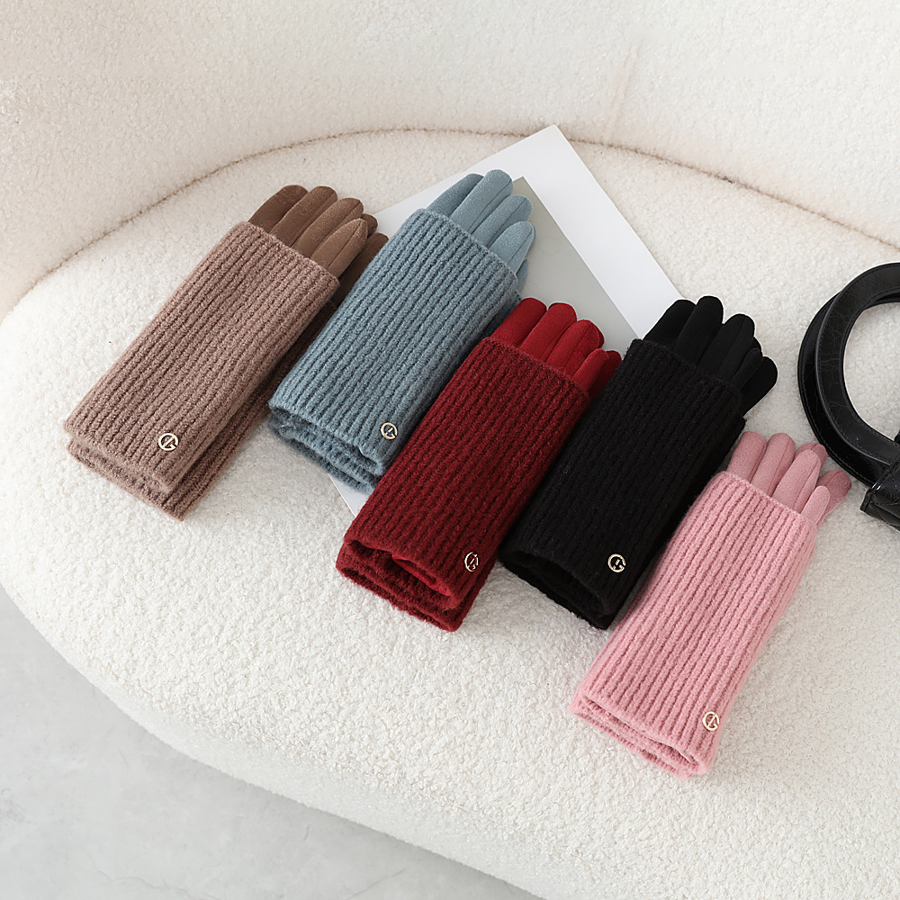 일본식 3중 착용 단색 니트 모직 탈부착 장갑, 손가락 노출형, 터치스크린 사용 가능, 겨울철 보온 방한 장갑