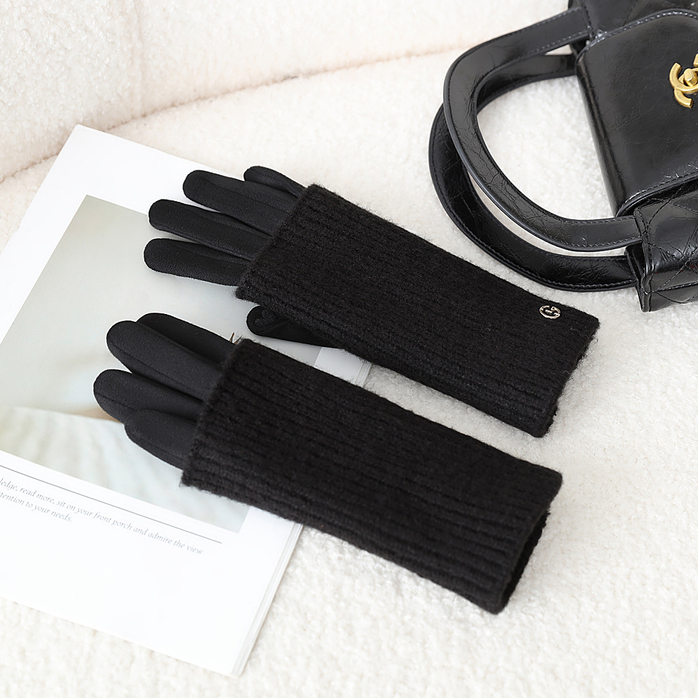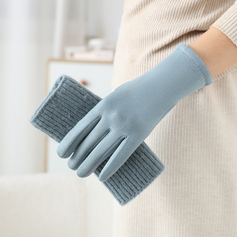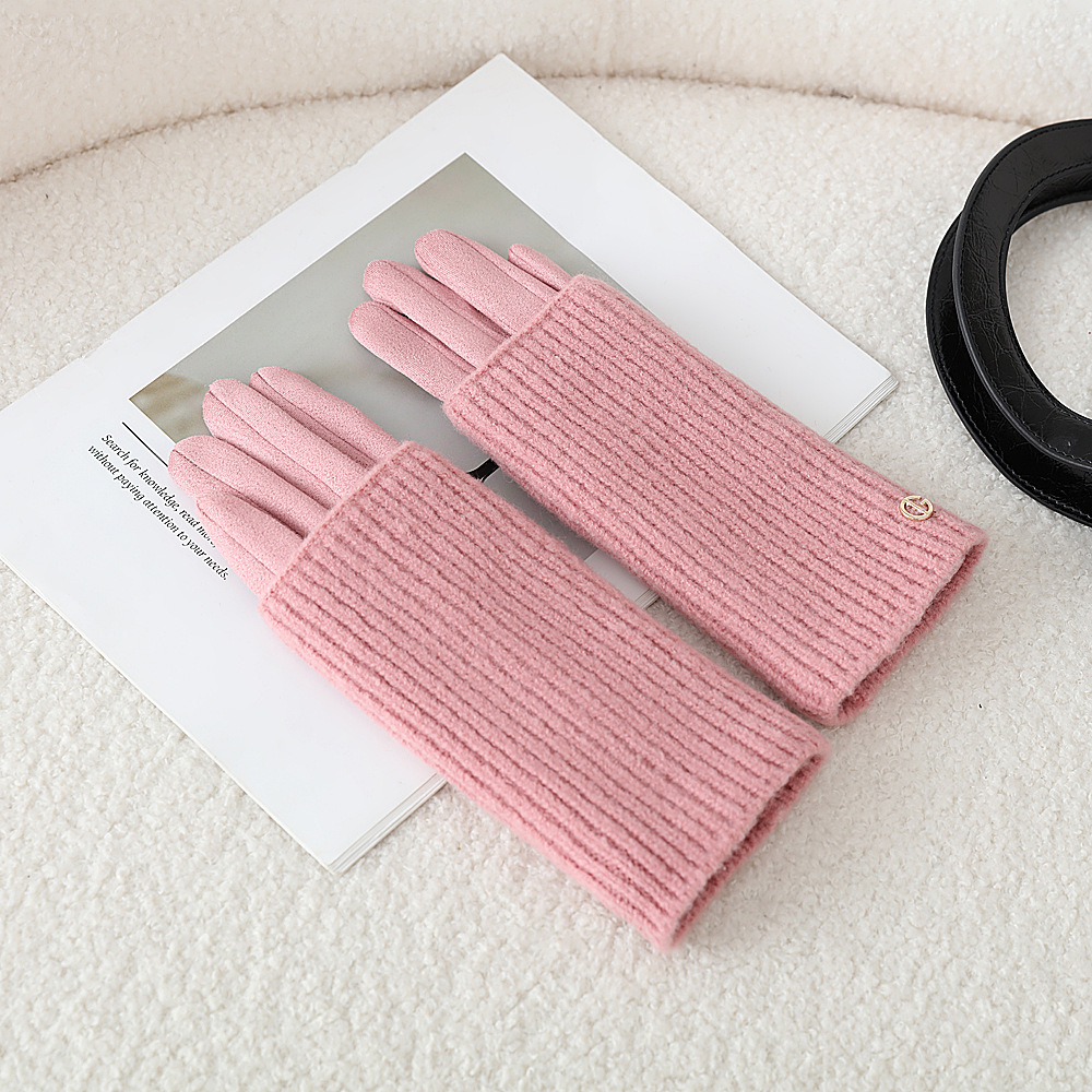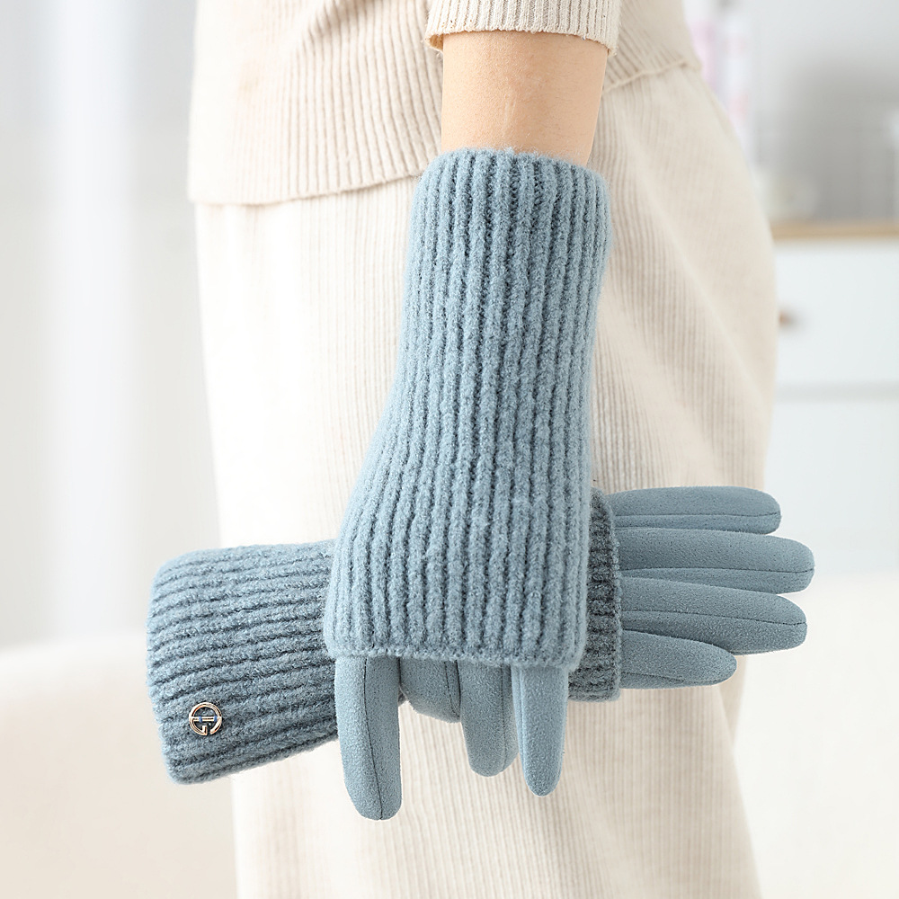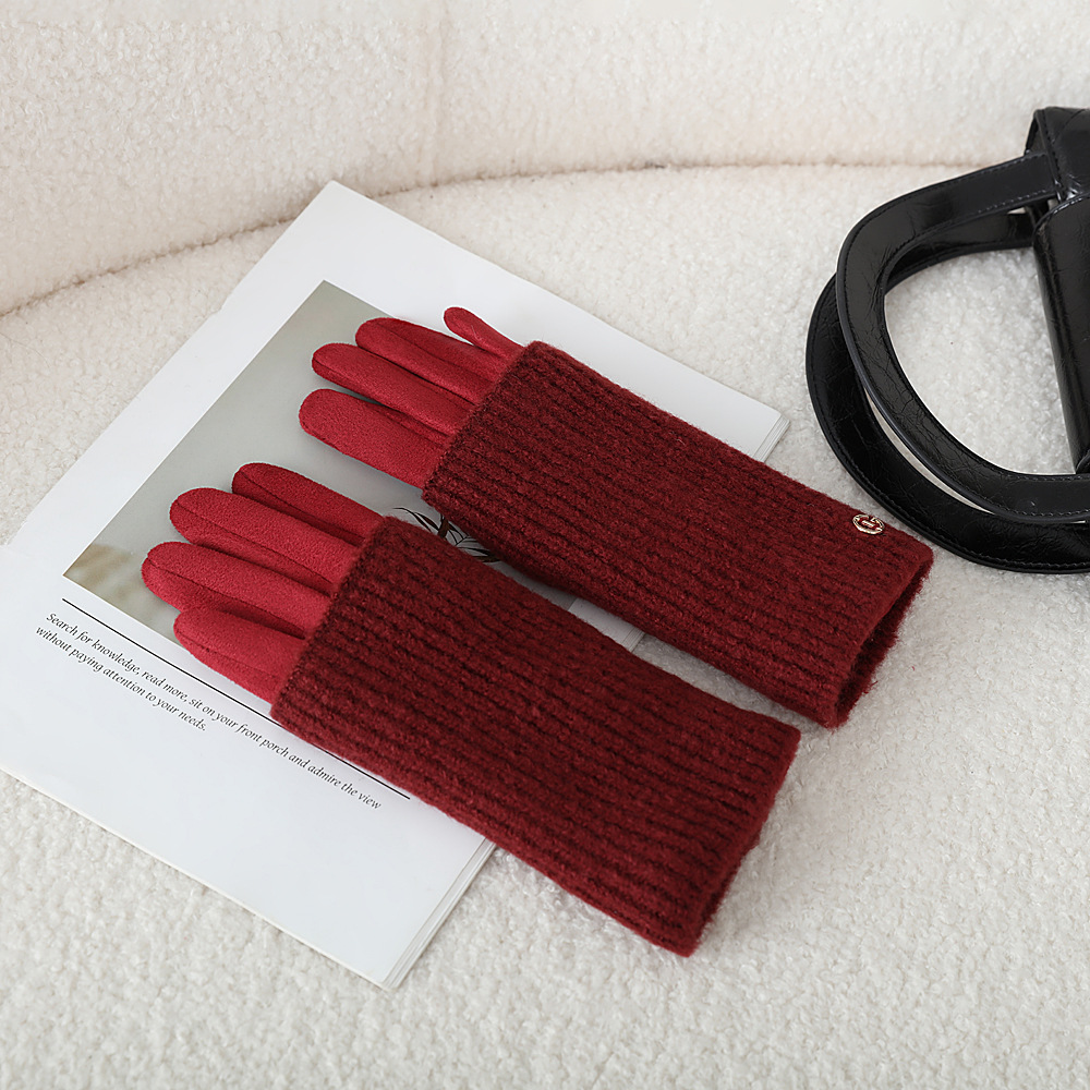 일본식 3중 착용 단색 니트 모직 탈부착 장갑, 손가락 노출형, 터치스크린 사용 가능, 겨울철 보온 방한 장갑