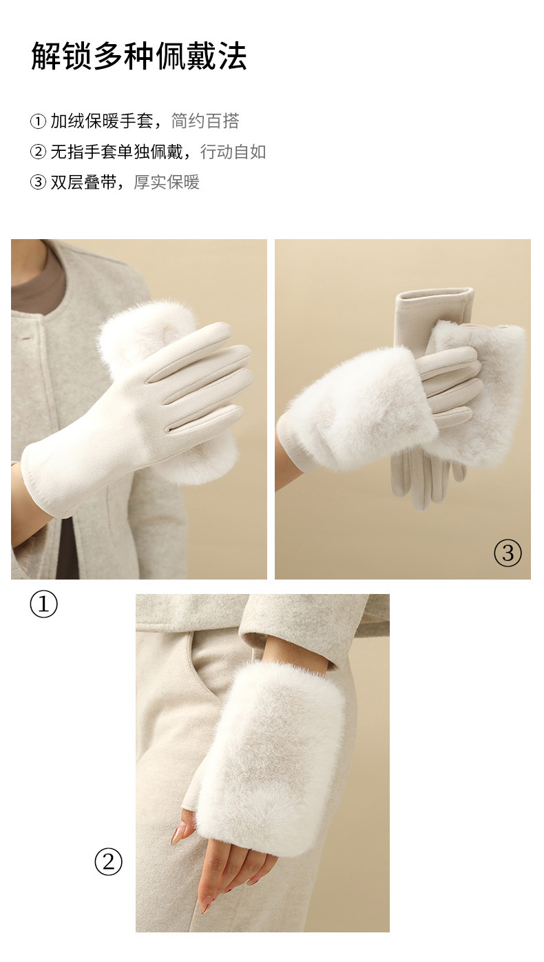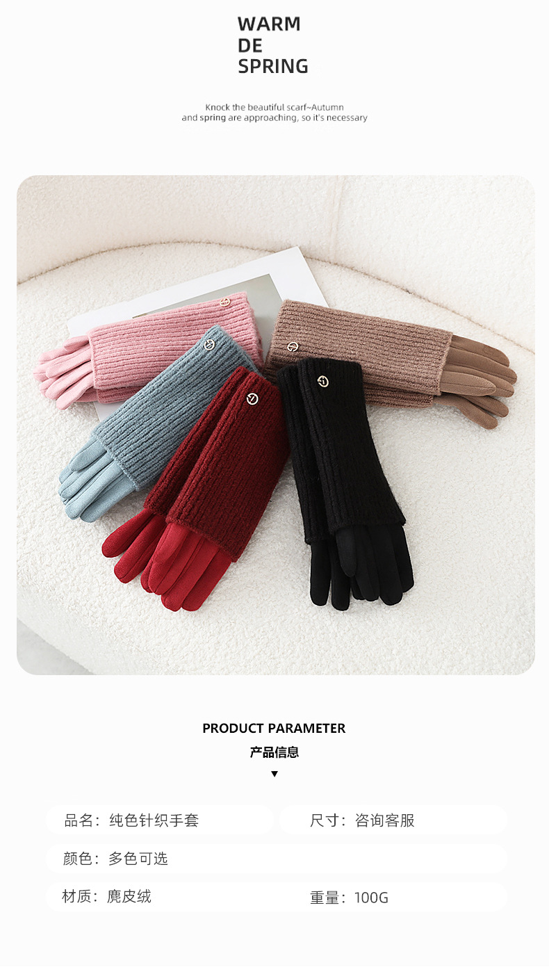 일본식 3중 착용 단색 니트 모직 탈부착 장갑, 손가락 노출형, 터치스크린 사용 가능, 겨울철 보온 방한 장갑스토어 가기