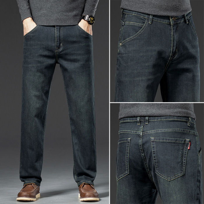 가을 느슨한 스트레이트 청바지 남자 2024 새로운 하이 엔드 스톤 블루 캐주얼 바지 트렌디 한 레트로 남성용 바지스토어 가기