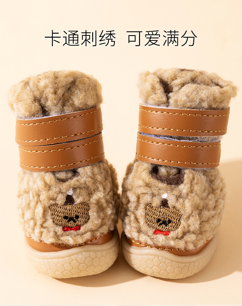 가을과 겨울 개 신발 만화 따뜻한 봉제 신발 기모 미끄럼 방지 개 신발 귀여운 테디 애완 동물 신발스토어 가기