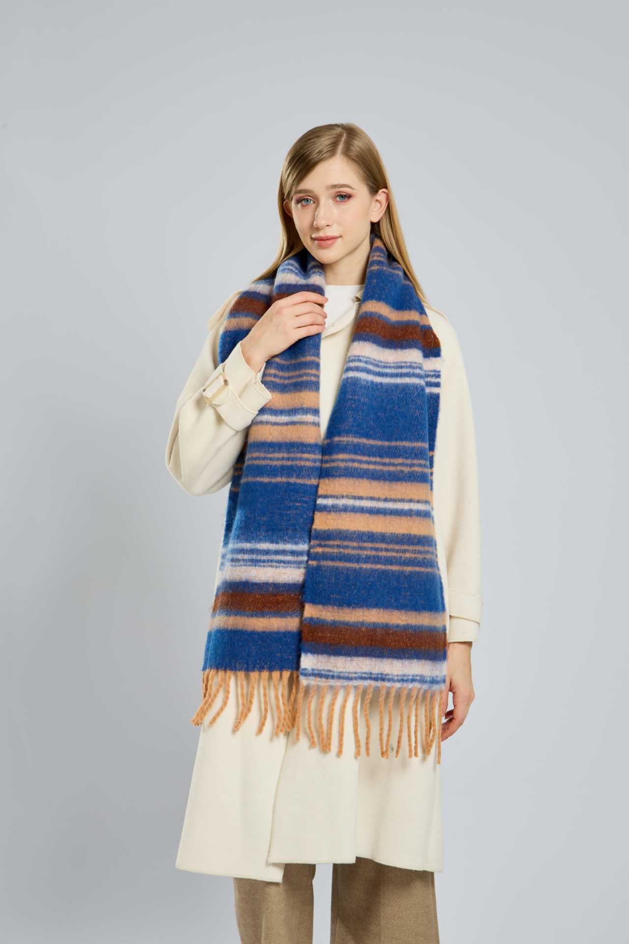 도파민 캐시미어 스트라이프 술 고급 스카프 여성의 가을과 겨울 따뜻한 패딩 모헤어 스카프 도매스토어 가기