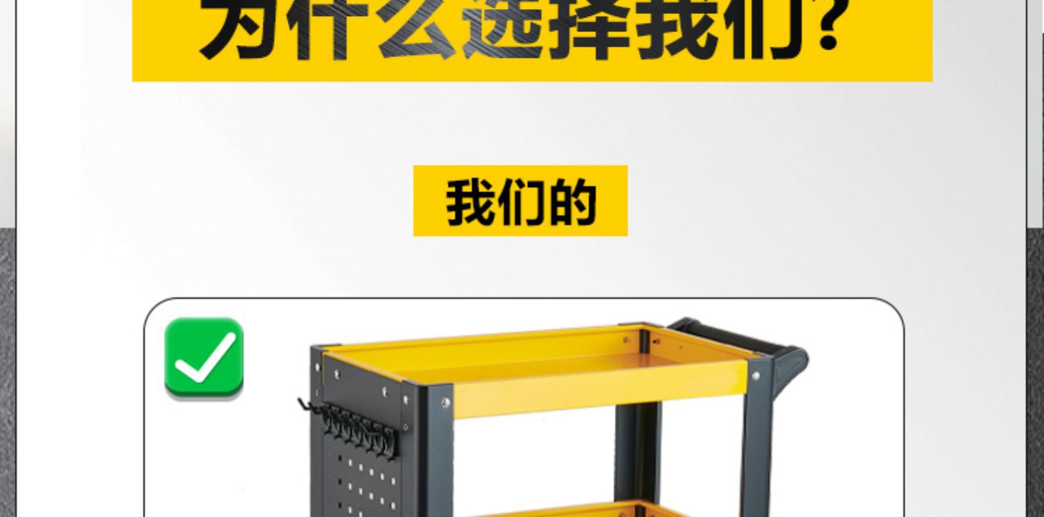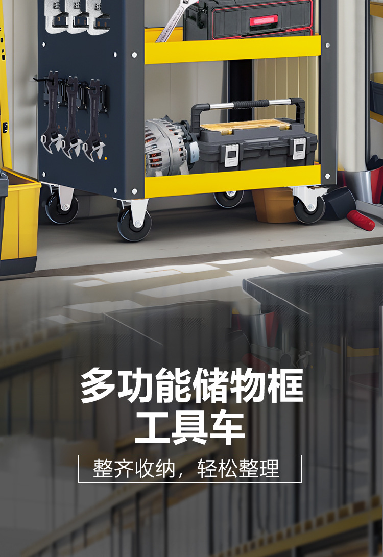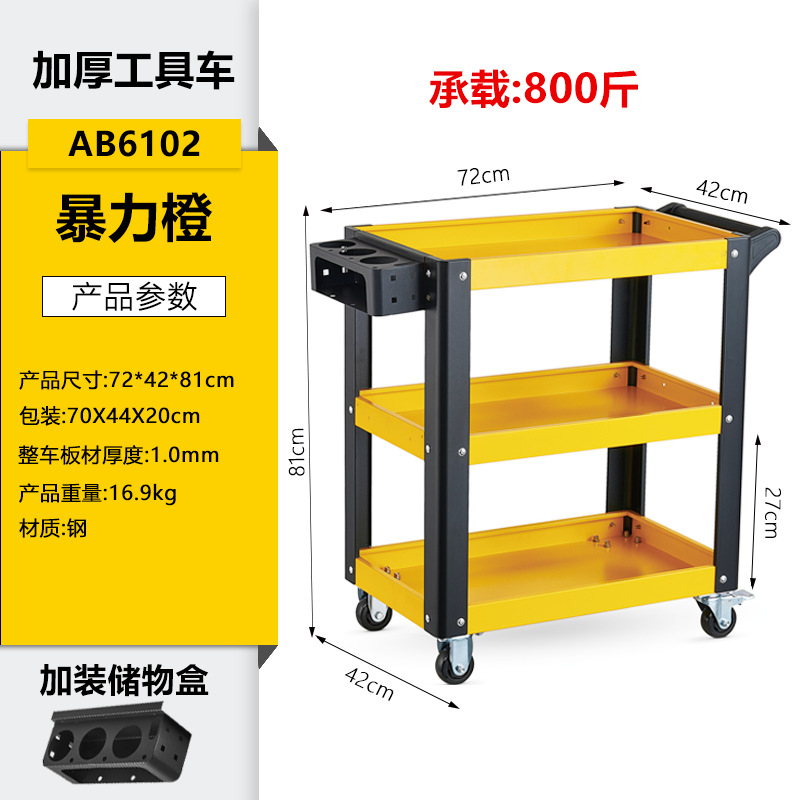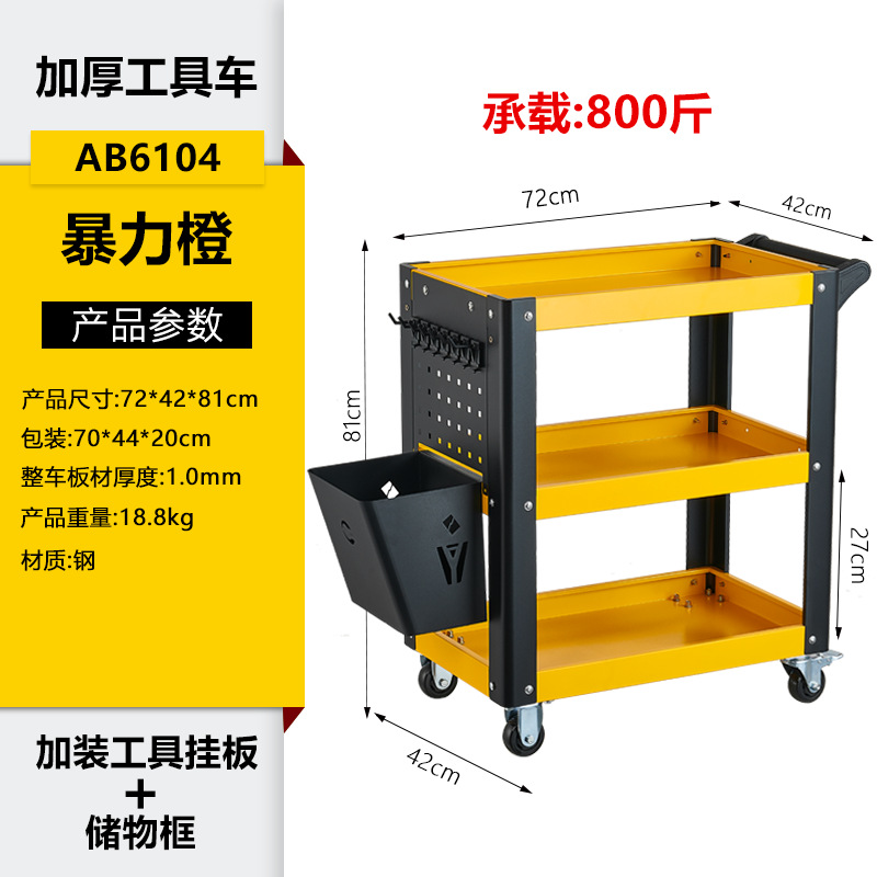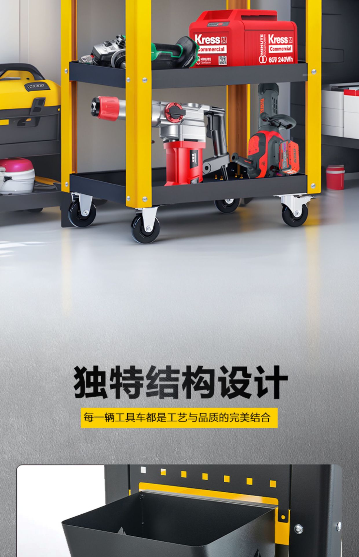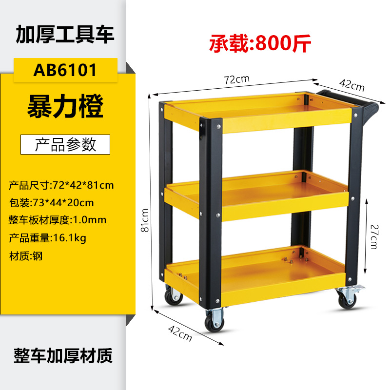 • 검정색과 노란색 [중형 3층 공구 카트] 차량 전체 1.0 플레이트 16.1KG