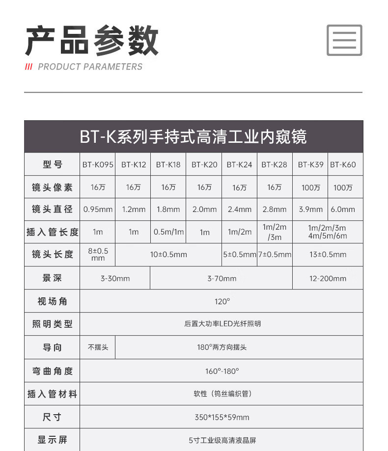 페릭 BT-K 시리즈 산업용 내시경 보레스코프 사이드 다이렉트 비전 항공 우주 홀 직경 특수 측정스토어 가기