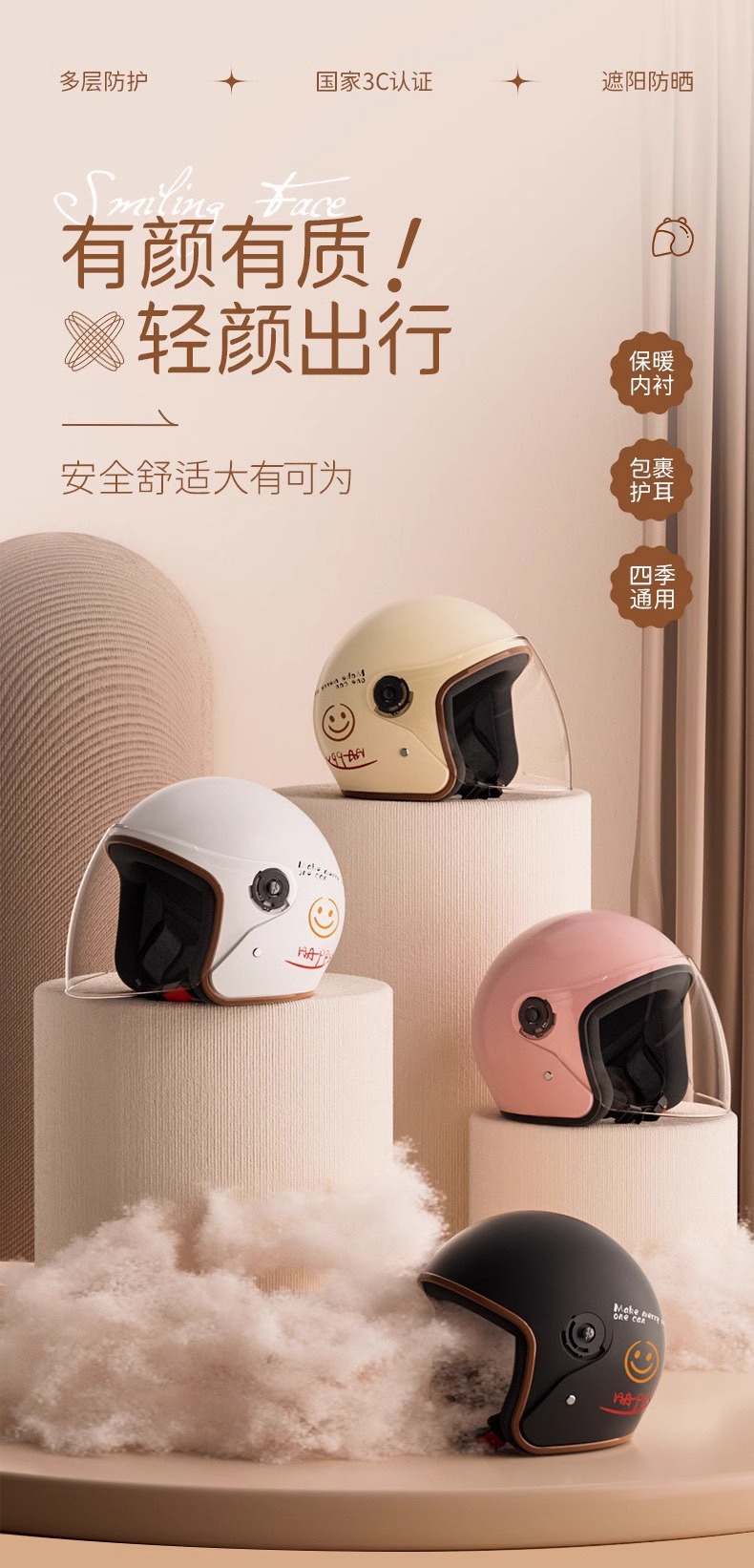 • 두꺼운 EPS 버퍼✅새로운 국가 표준 3C-오프화이트 웃는 얼굴 [HD 김서림 방지 장경 + 검은 귀] 7겹 완충층 보호★독일 충돌 방지 기술★나노 온도 잠금