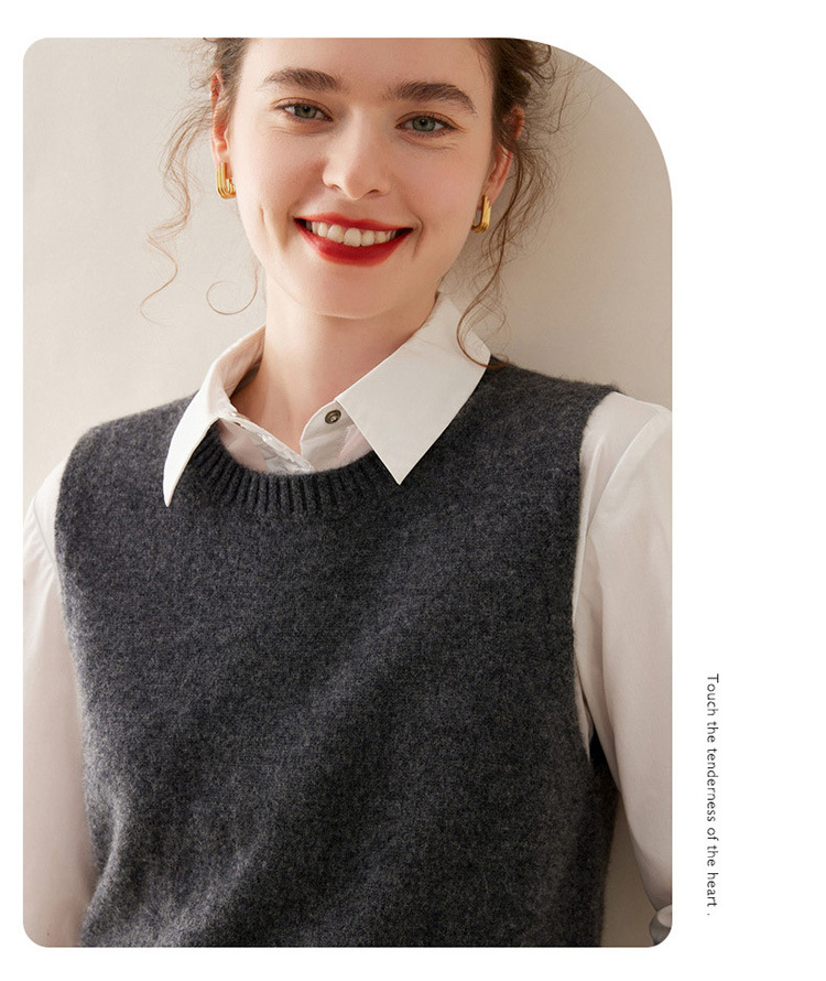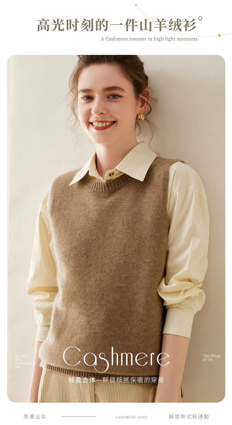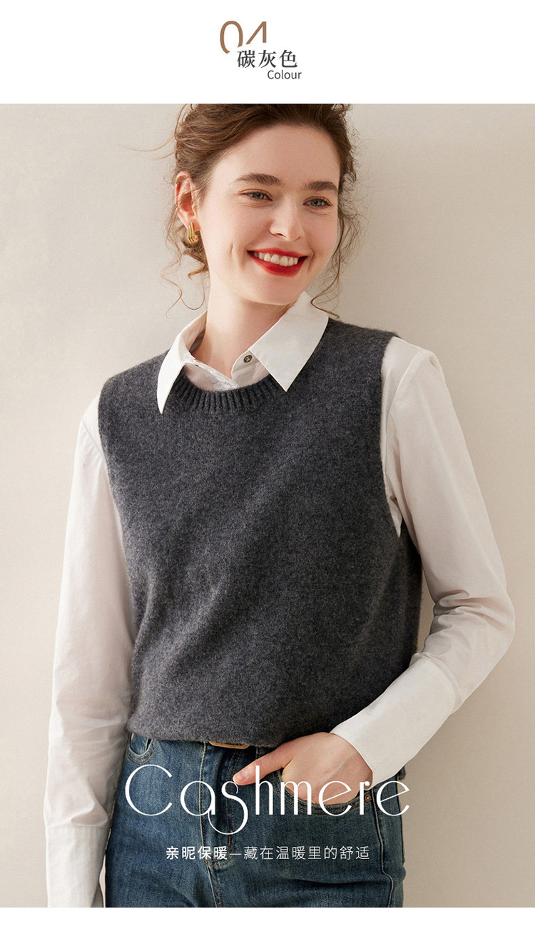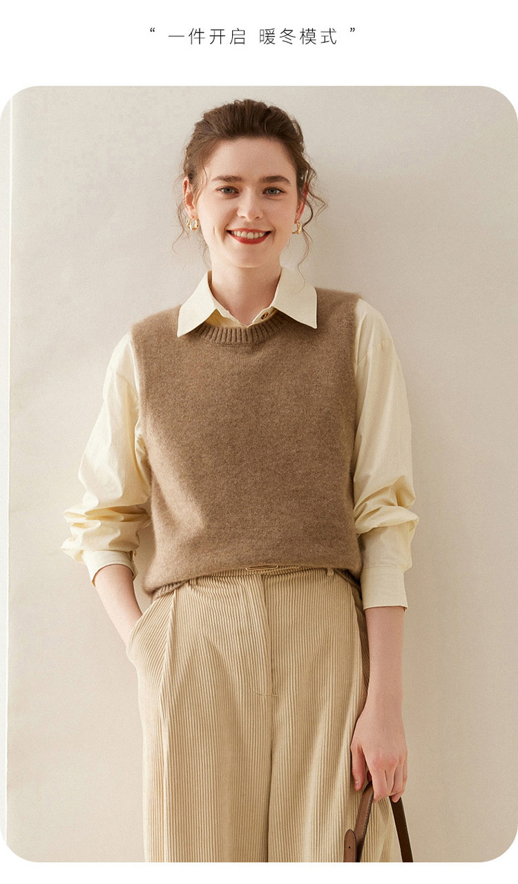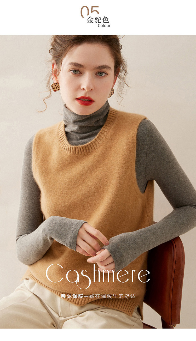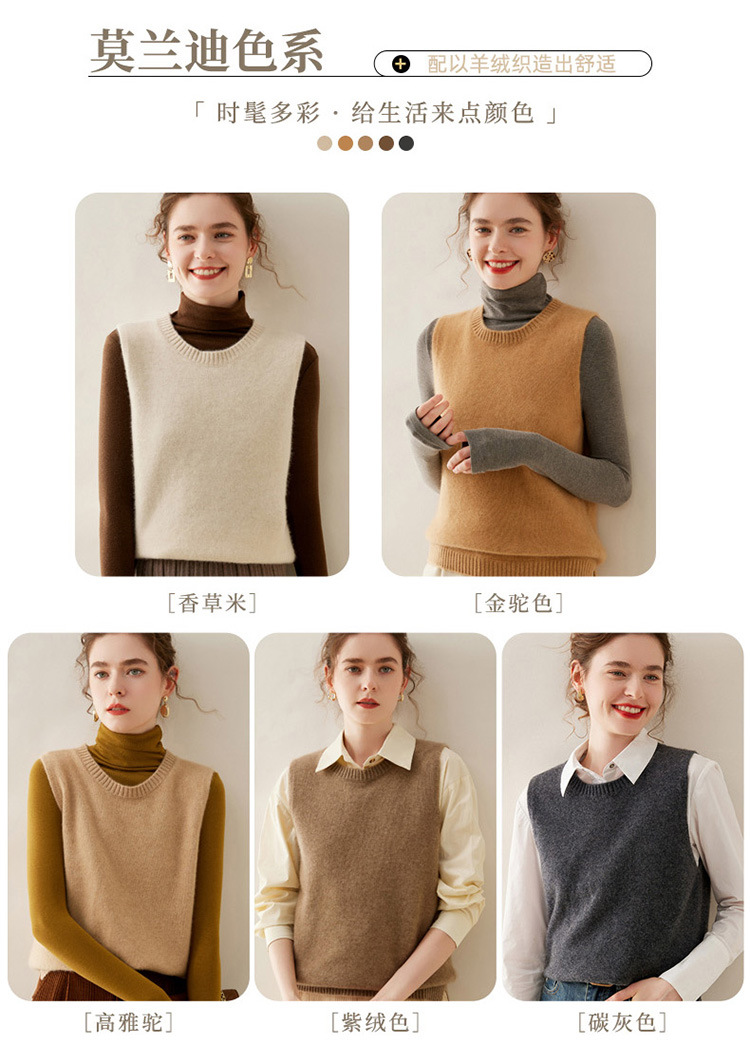 이른 가을 새로운 캐시미어 니트 조끼 여성 민소매 라운드 넥 느슨한 따뜻한 외부 솔리드 컬러 조끼 유행 소프트 왁스스토어 가기