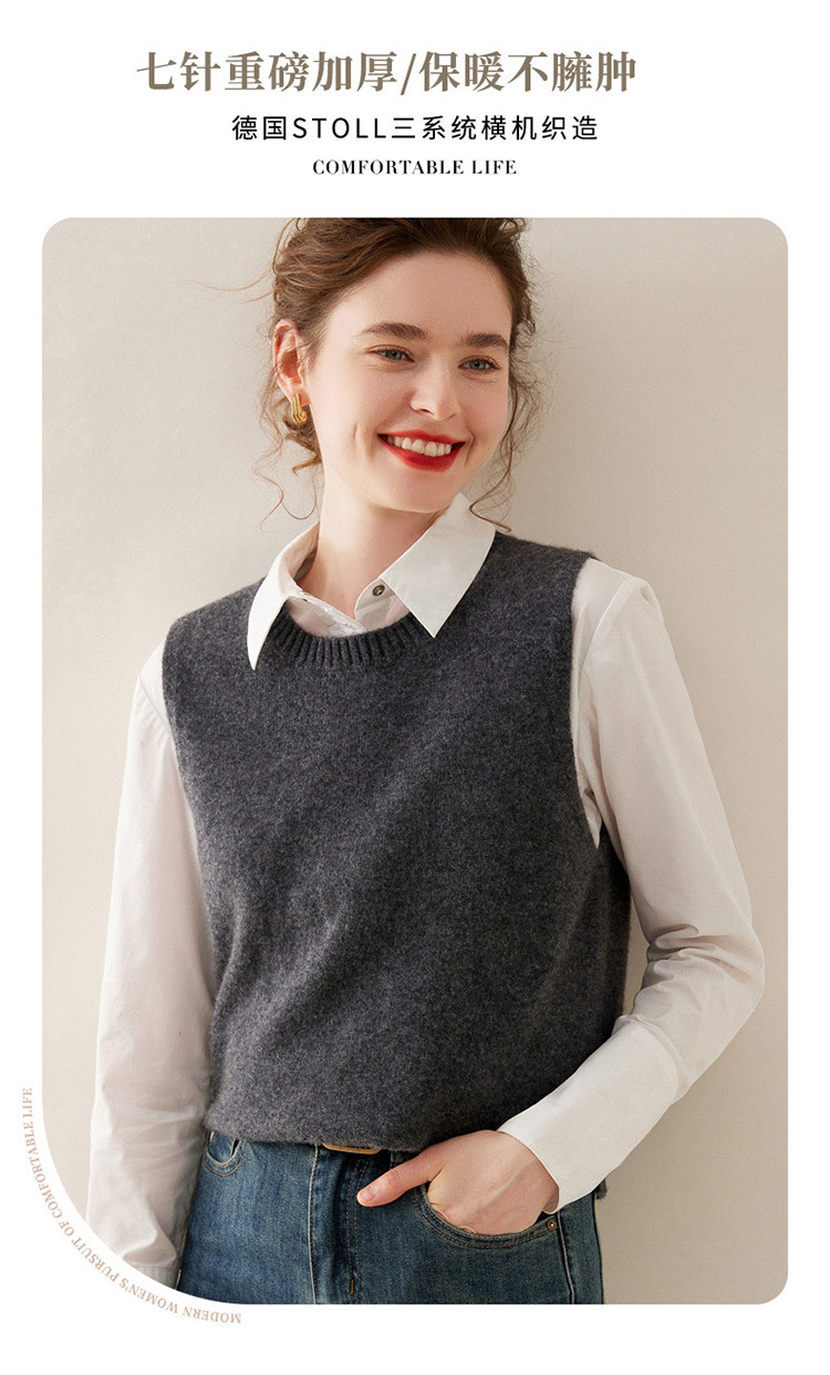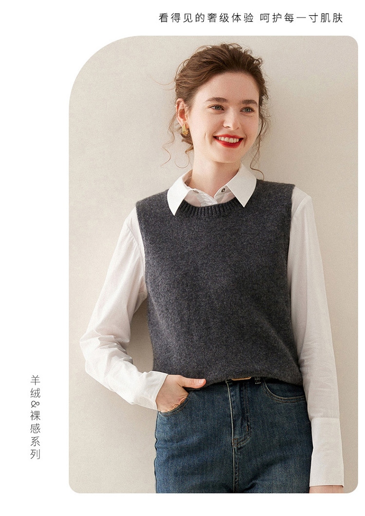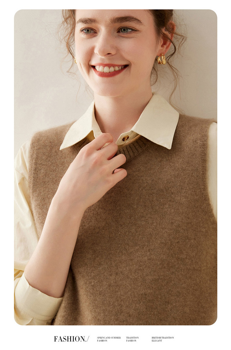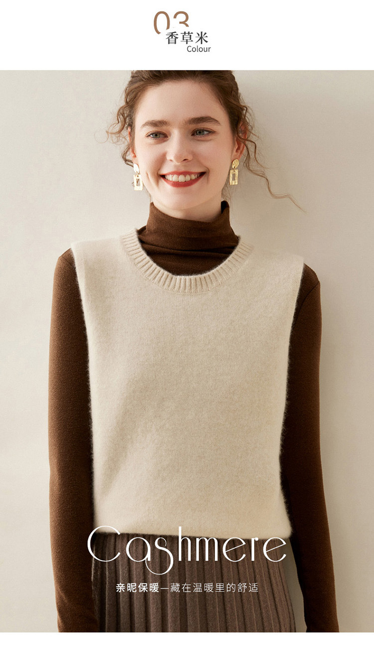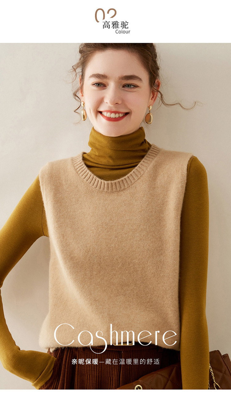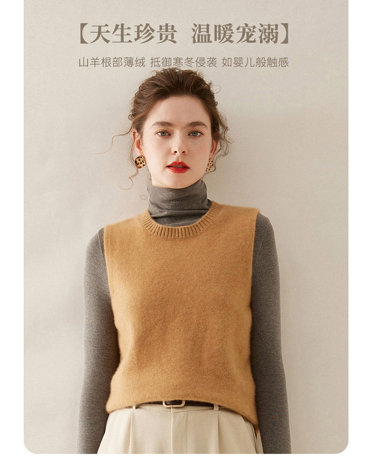 이른 가을 새로운 캐시미어 니트 조끼 여성 민소매 라운드 넥 느슨한 따뜻한 외부 솔리드 컬러 조끼 유행 소프트 왁스스토어 가기