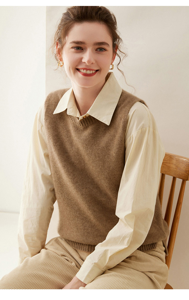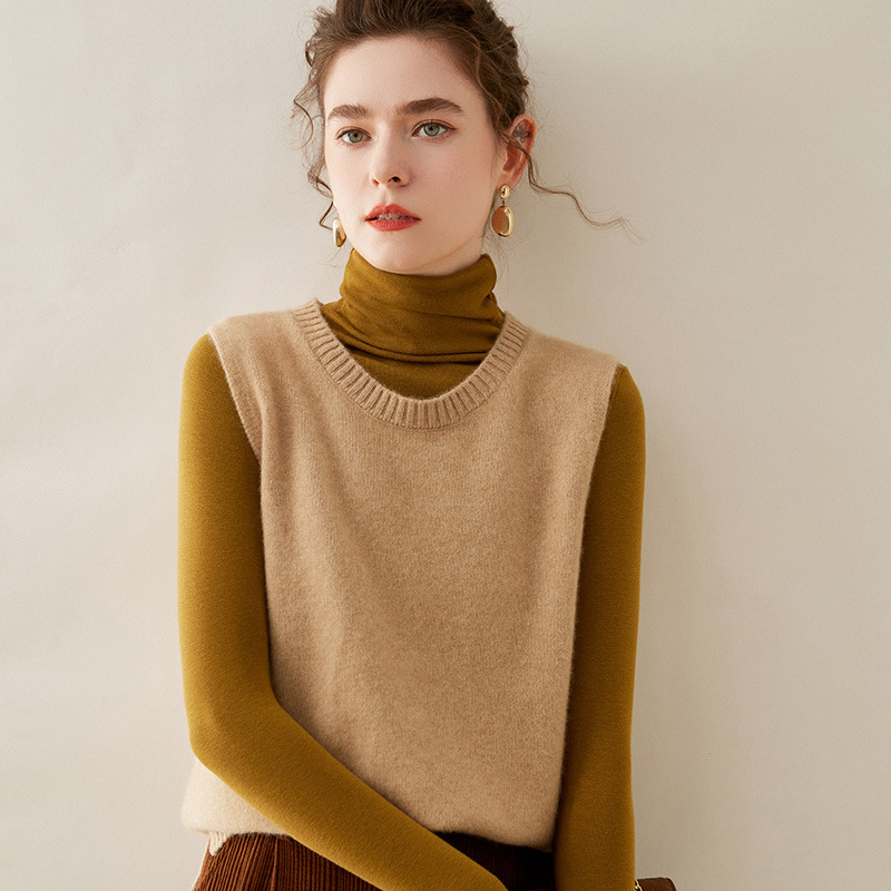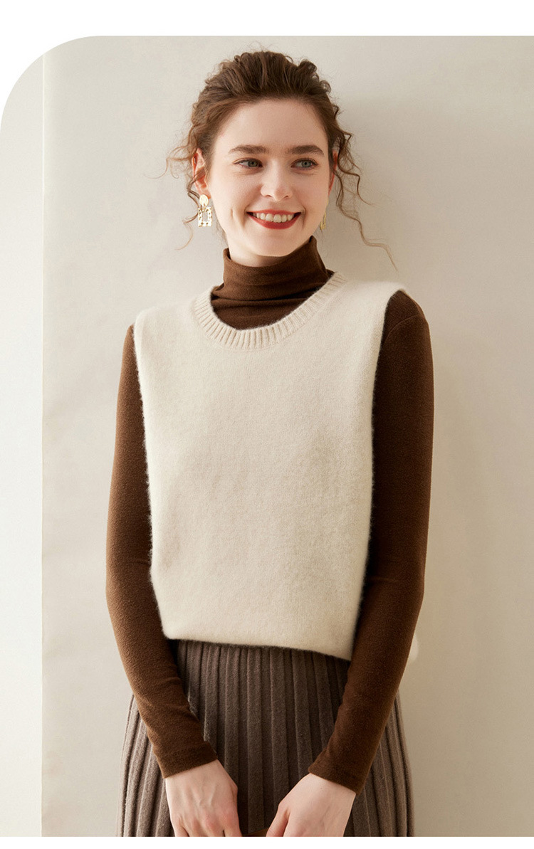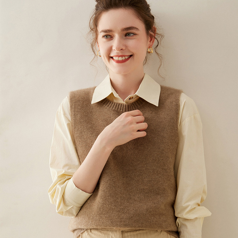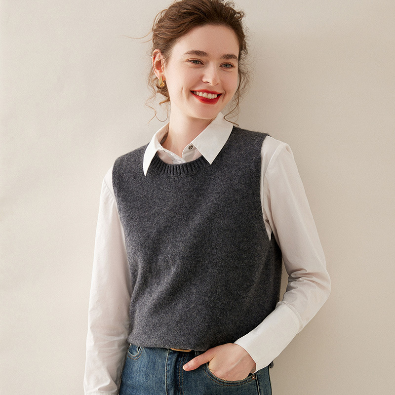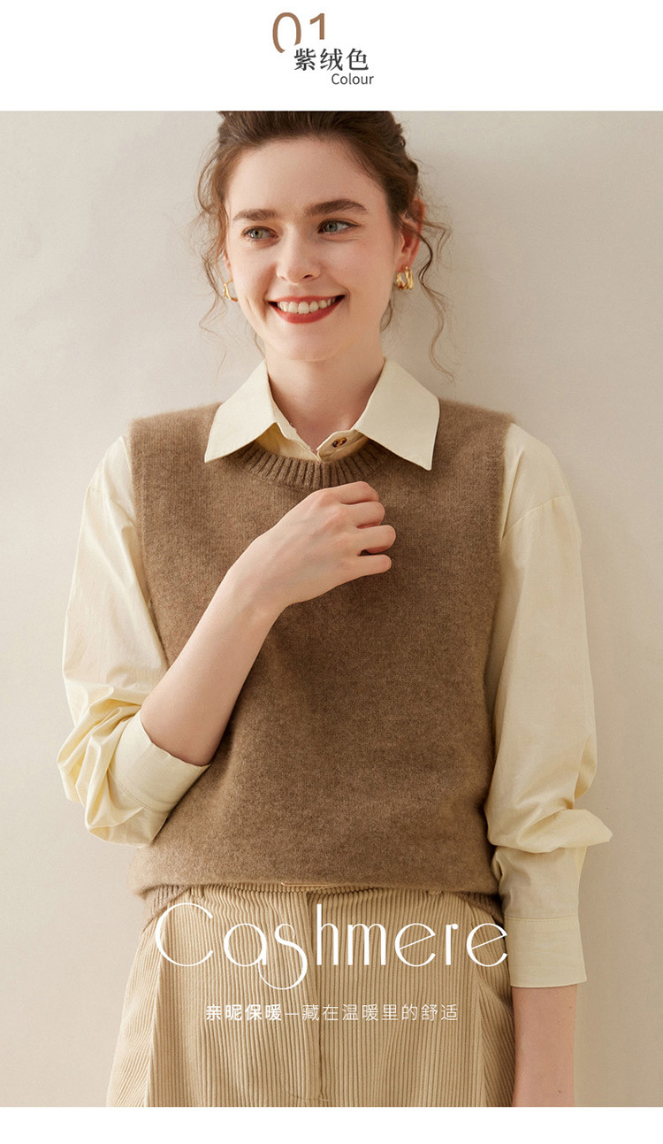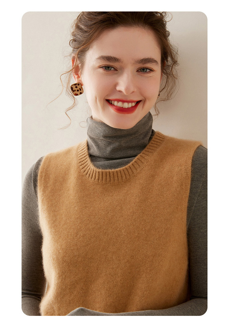 이른 가을 새로운 캐시미어 니트 조끼 여성 민소매 라운드 넥 느슨한 따뜻한 외부 솔리드 컬러 조끼 유행 소프트 왁스스토어 가기
