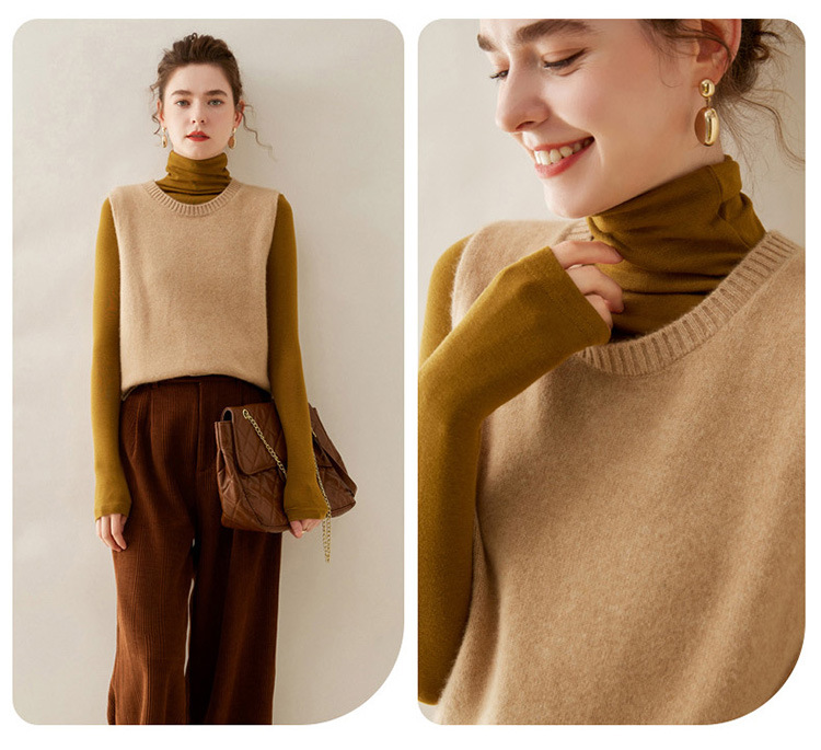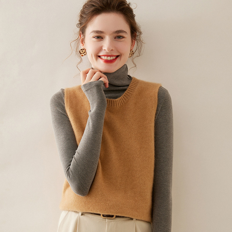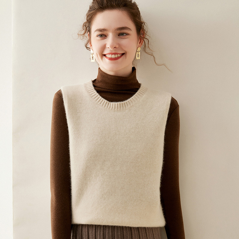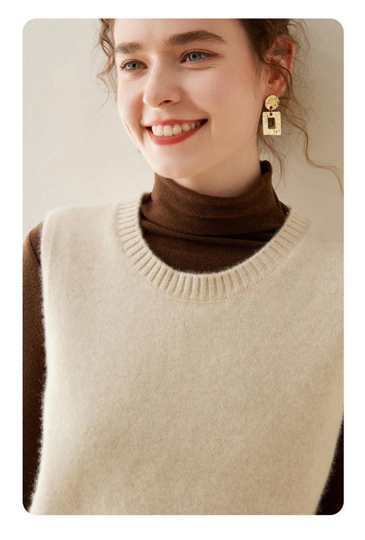이른 가을 새로운 캐시미어 니트 조끼 여성 민소매 라운드 넥 느슨한 따뜻한 외부 솔리드 컬러 조끼 유행 소프트 왁스