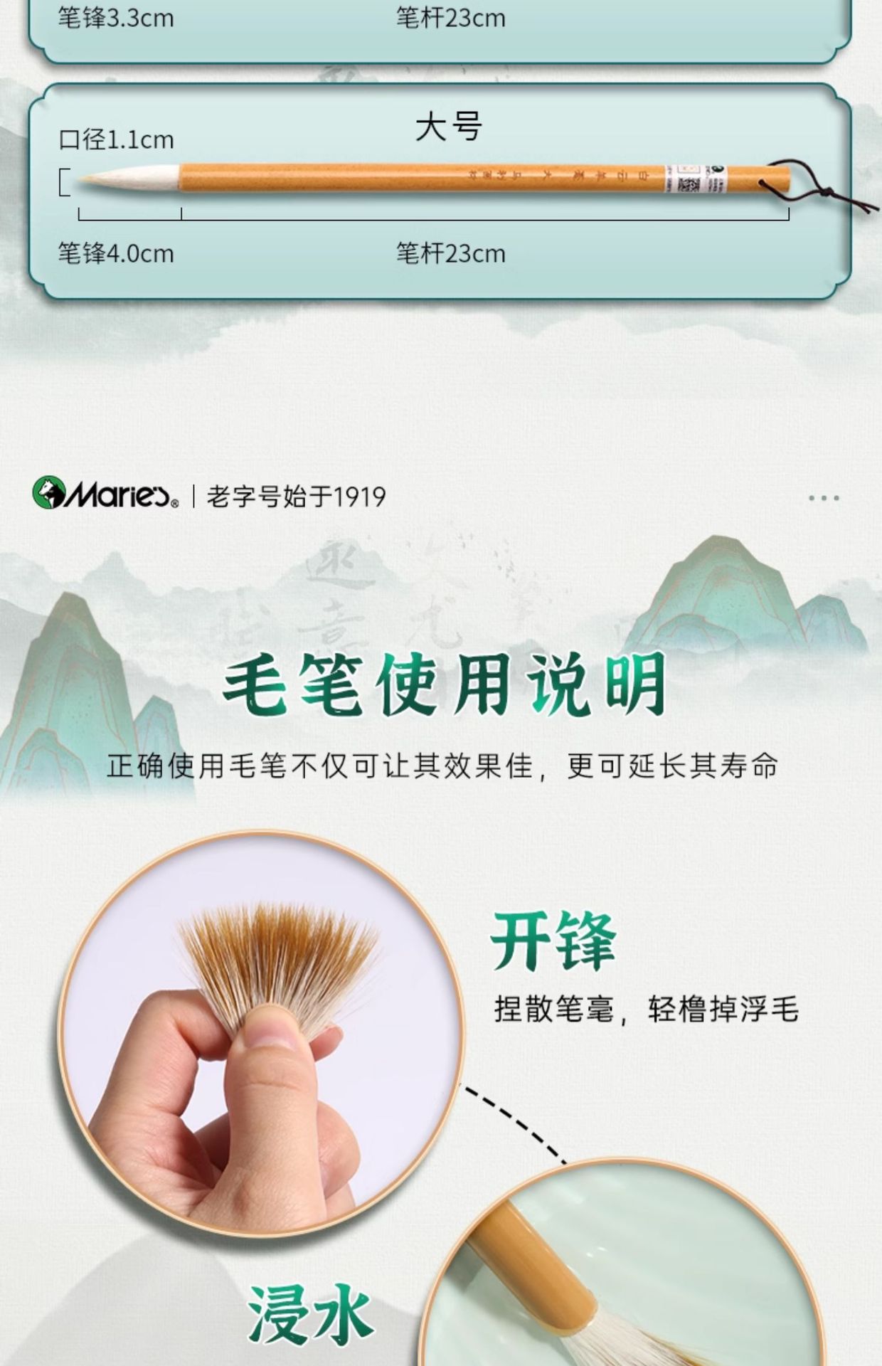 Marley Baiyun 브러시 서예 초보자를위한 특별 중국 그림 작은 정사이즈 스크립트 브러쉬 울프의 브러쉬와 크고 작은 소프트 서예 펜