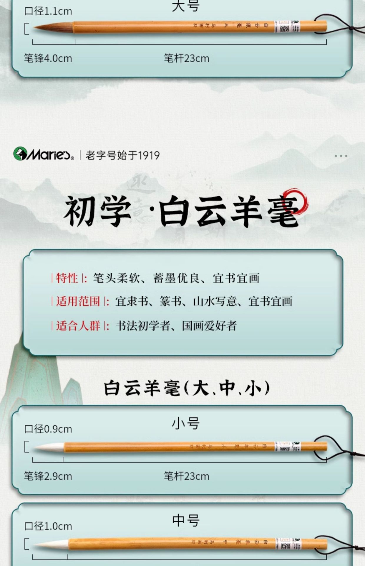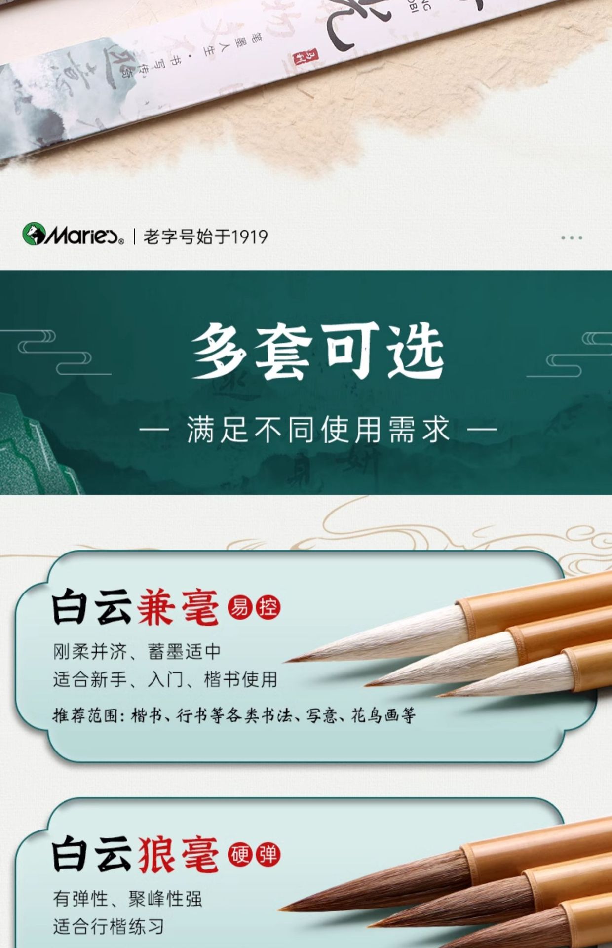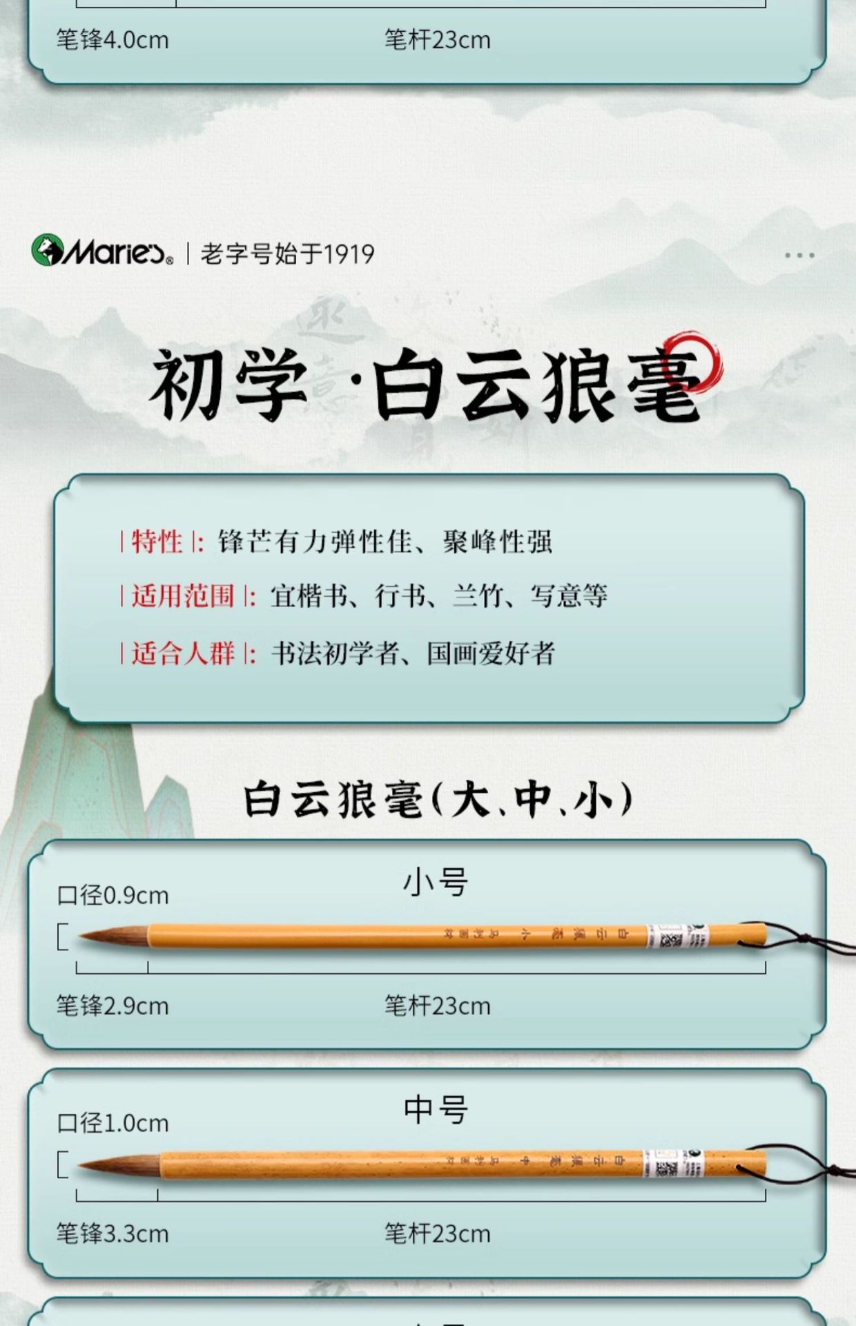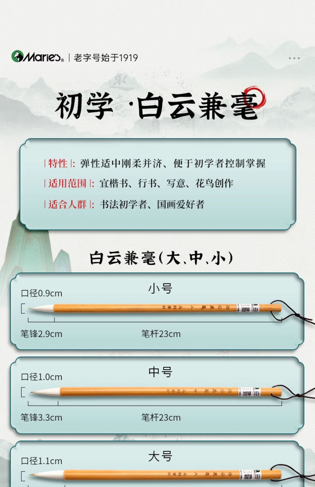 马利白云毛笔书法专用初学者国画小楷毛笔狼毫兼毫大中小练字软笔