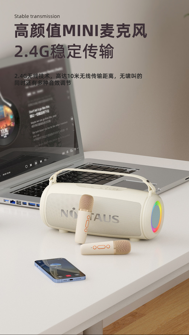 새로운 노래 K-노래 마이크 소형 사운드 마이크 통합 휴대용 고품질 무선 블루투스 스피커 홈 KTV