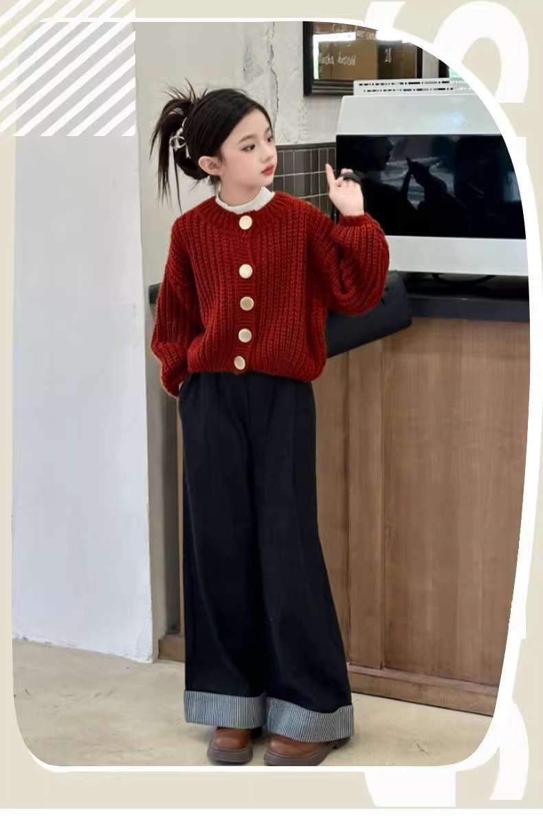 소녀 스웨터 코트 가을과 겨울 2024 새로운 소녀 서양식 빨간 니트 어린이 가을 카디건 탑