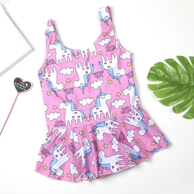 소녀 수영복 패션 귀여운 공주 폴리 에스테르 만화 인쇄 어린이 원피스 스커트 수영복 제조 업체 도매스토어 가기
