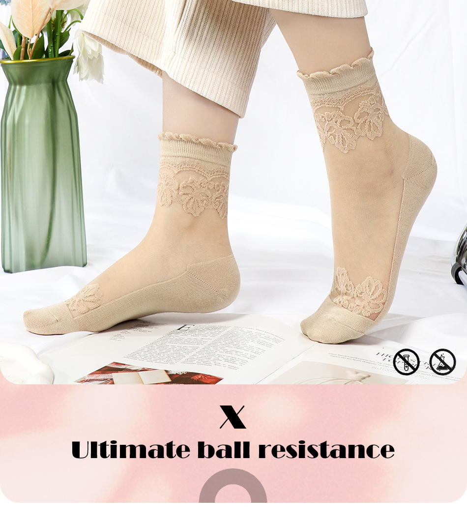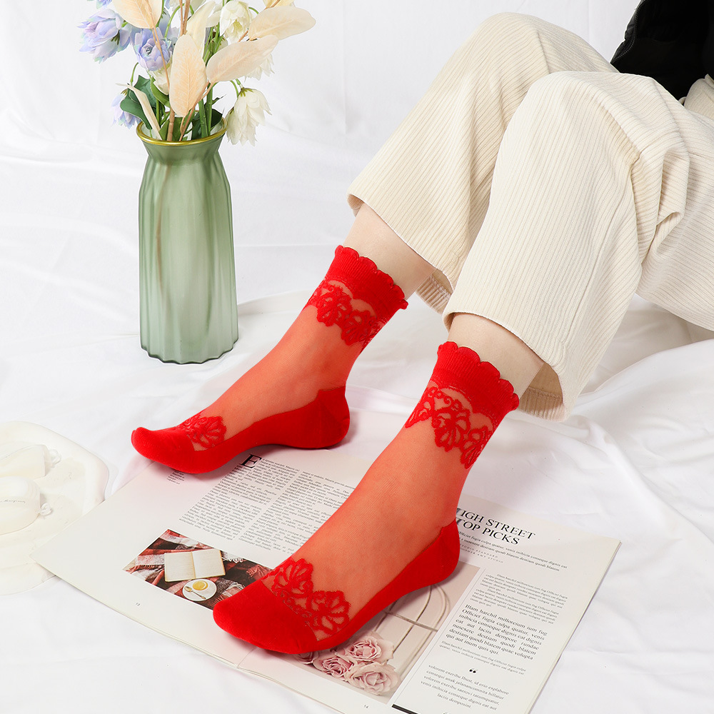 실크 스타킹 여성의 봄과 여름 얇은 꽃 유리 일본식 투명 코튼 하단 크리스탈 스타킹 빈티지 레이스 미드 사이즈 스타킹스토어 가기