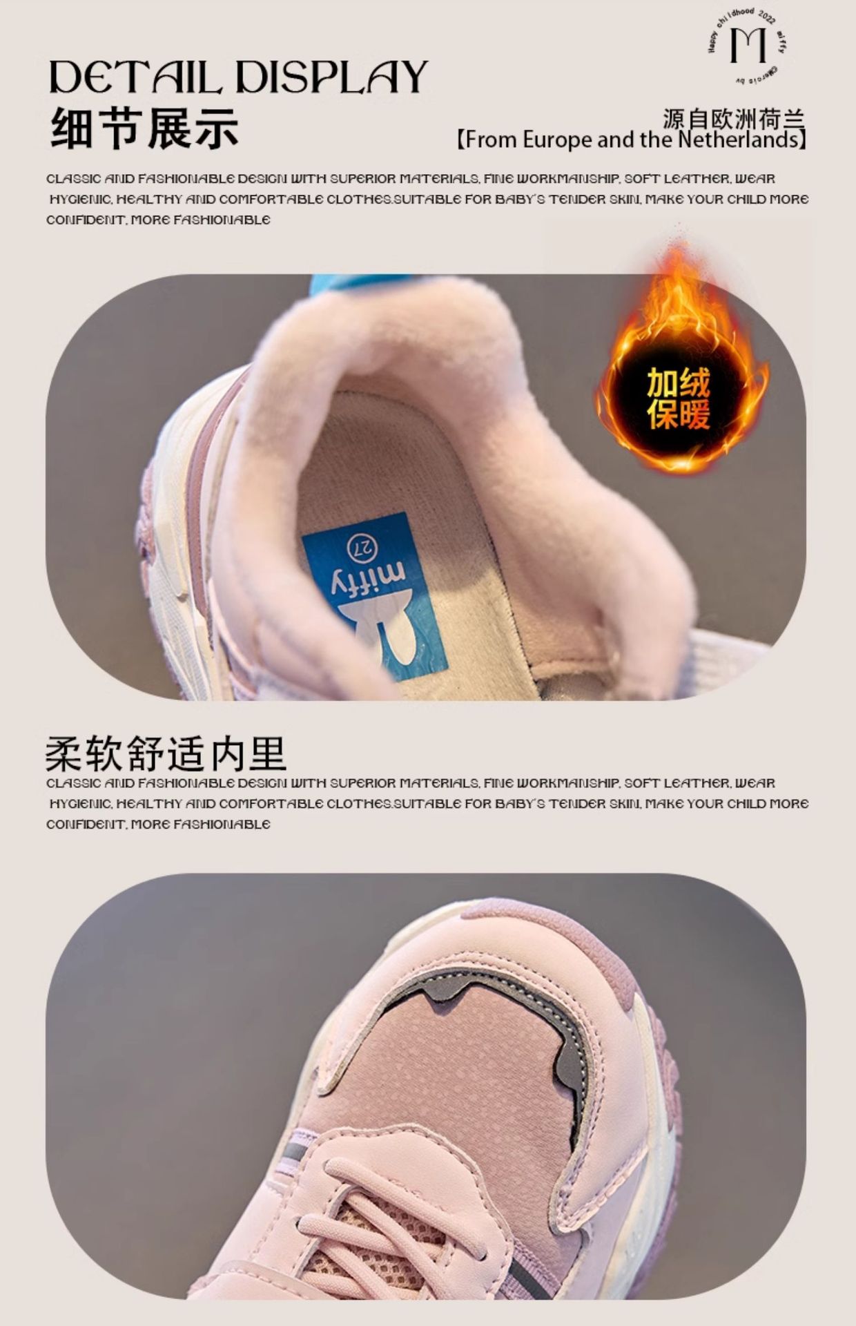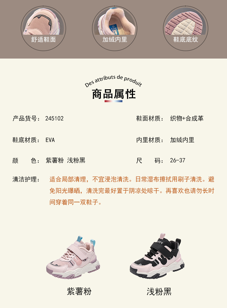 Miffy 여아용 겨울 새 스타일 플러스 벨벳 따뜻한 면화, 중대형 아동 캐주얼 아동용 내마모성 운동화스토어 가기
