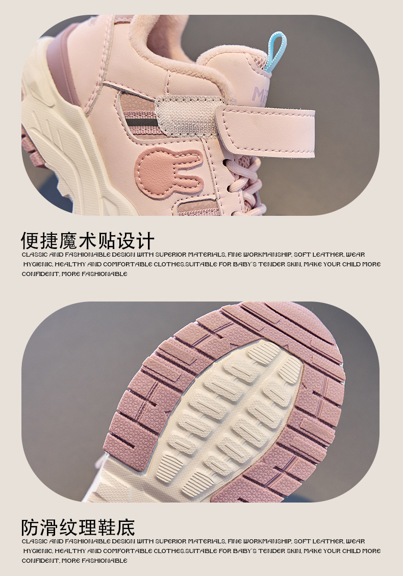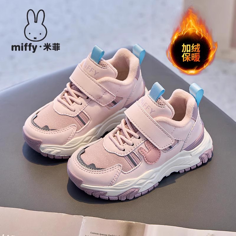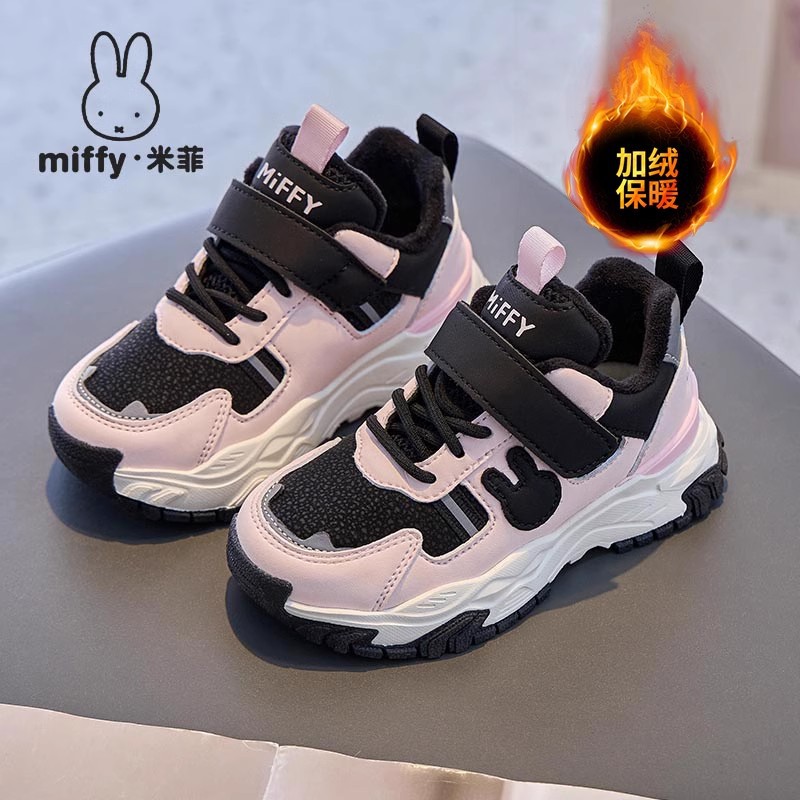 Miffy 여아용 겨울 새 스타일 플러스 벨벳 따뜻한 면화, 중대형 아동 캐주얼 아동용 내마모성 운동화