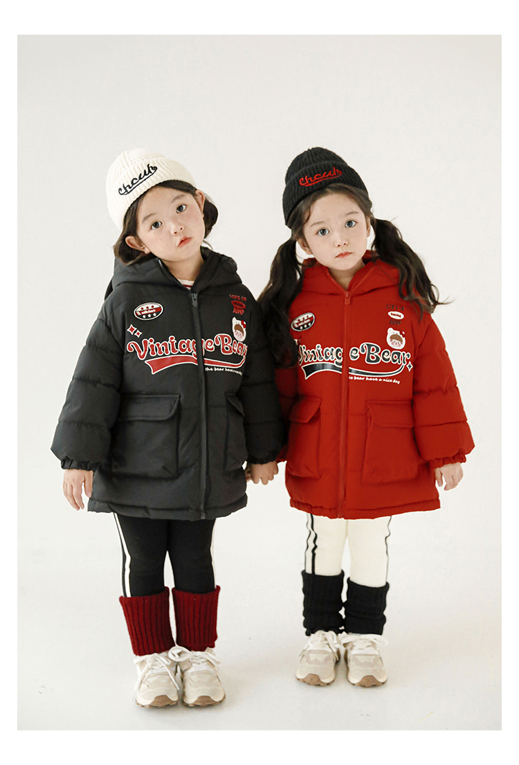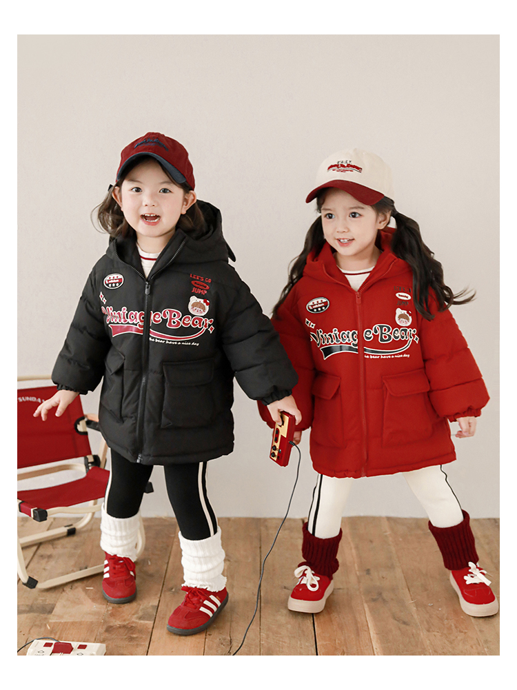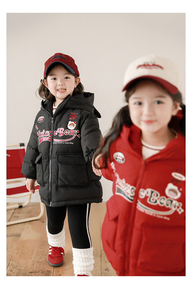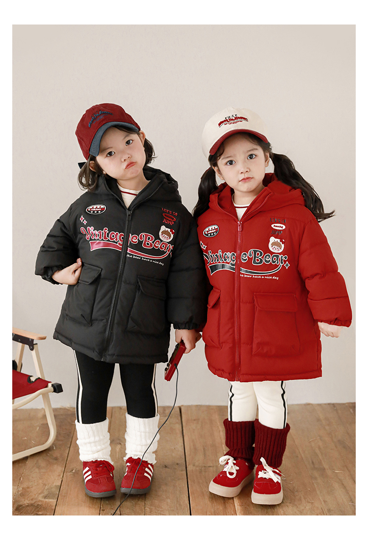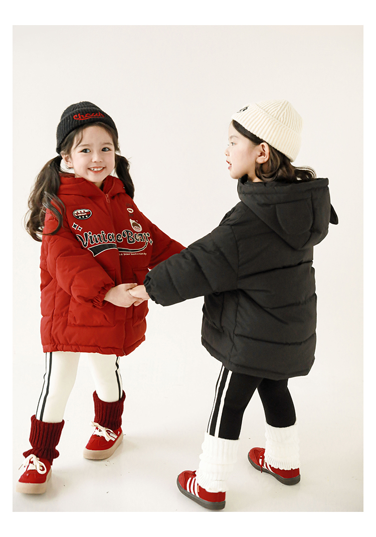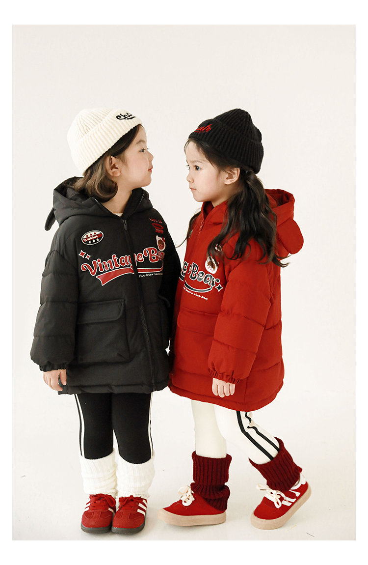 Wuri Bo a girl Anan Tab 자수 라벨 긴 두꺼운 코튼 패딩 재킷 겨울 어린이 따뜻한 코튼 패딩 재킷 타이드스토어 가기