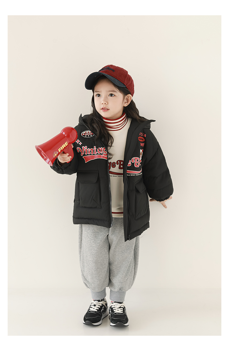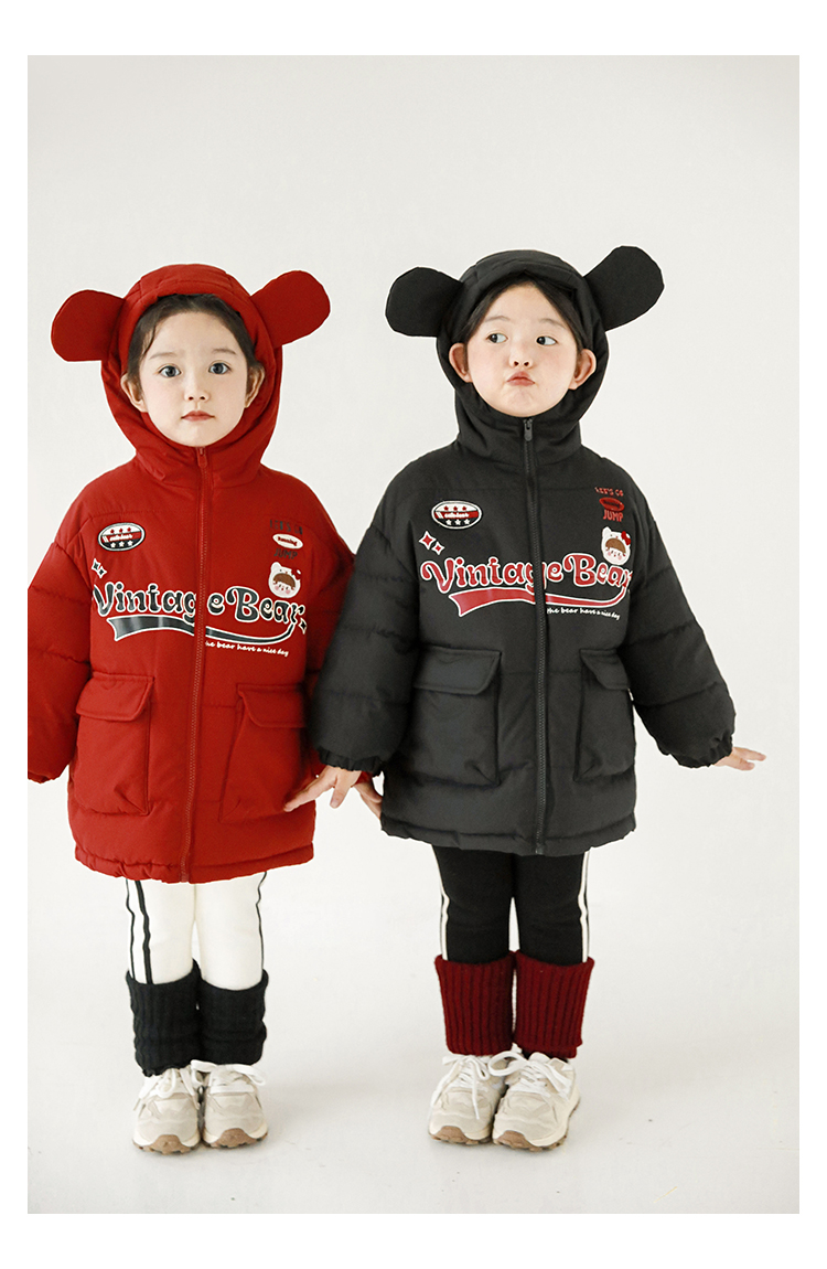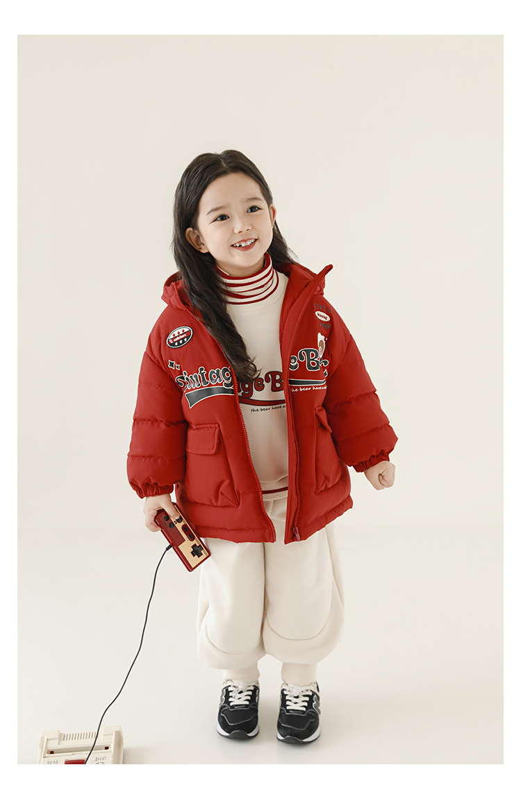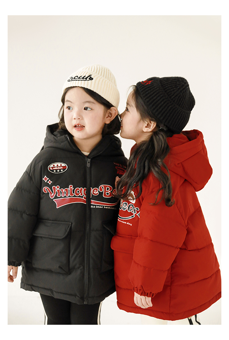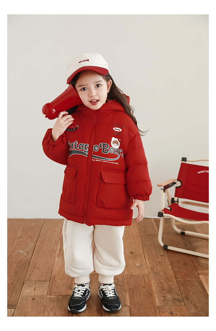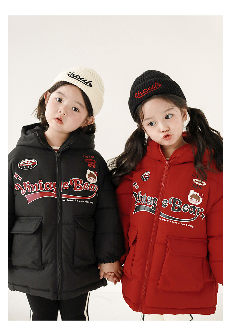 Wuri Bo a girl Anan Tab 자수 라벨 긴 두꺼운 코튼 패딩 재킷 겨울 어린이 따뜻한 코튼 패딩 재킷 타이드스토어 가기