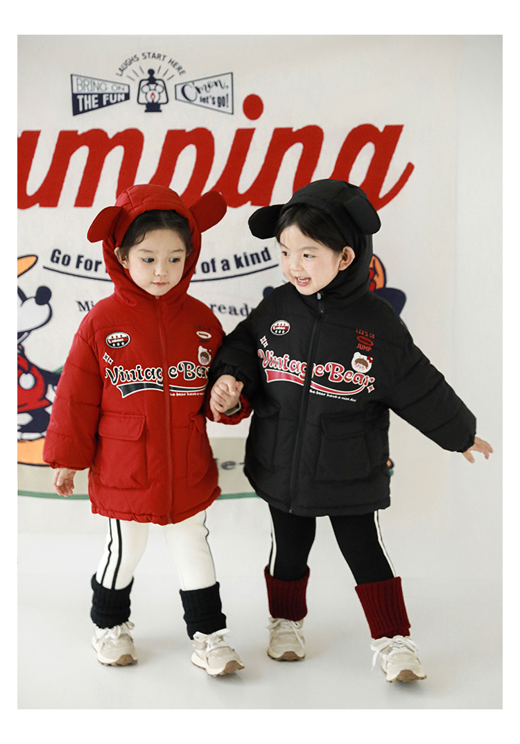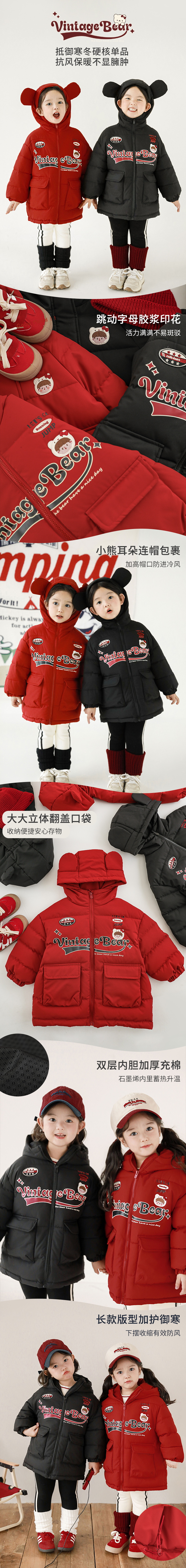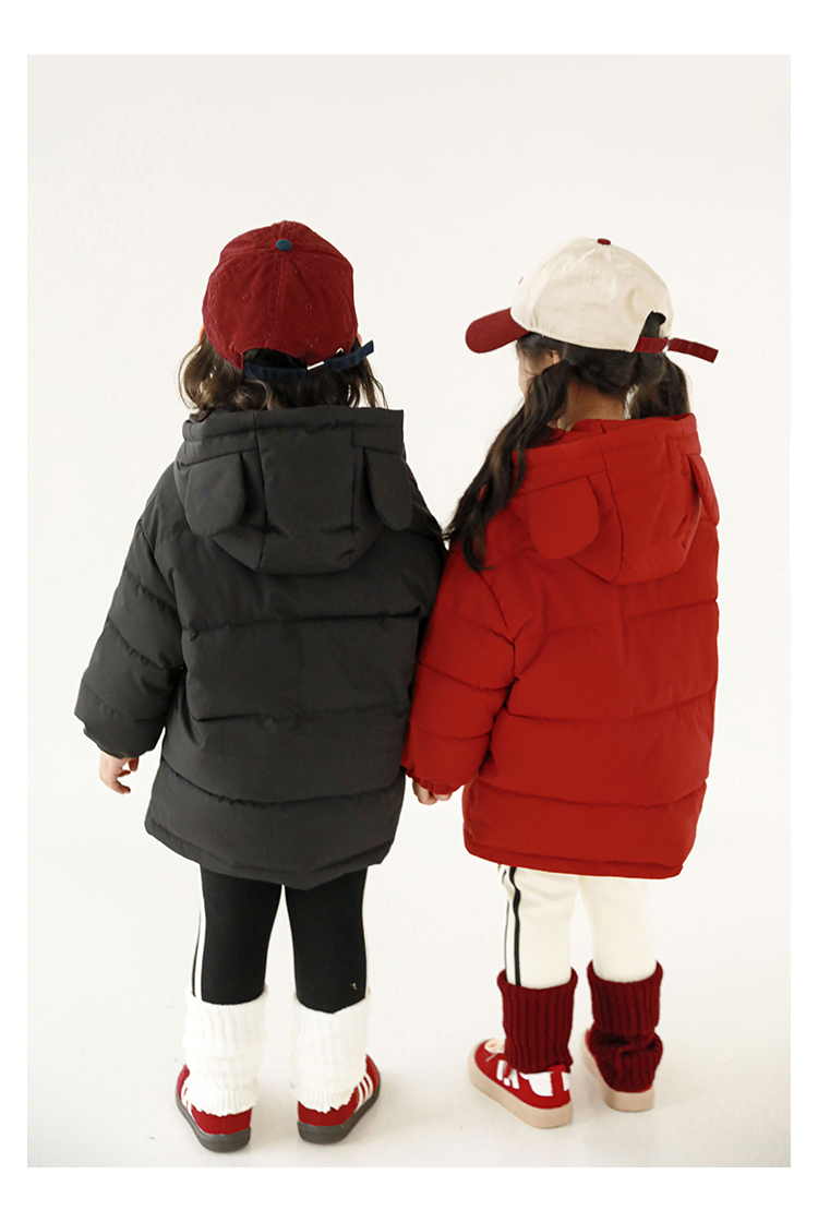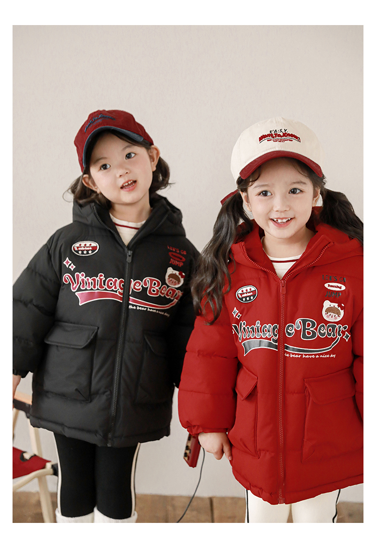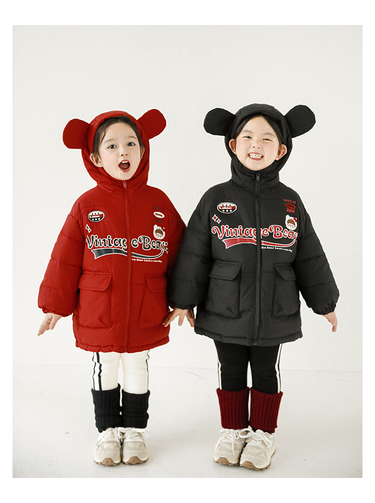 Wuri Bo a girl Anan Tab 자수 라벨 긴 두꺼운 코튼 패딩 재킷 겨울 어린이 따뜻한 코튼 패딩 재킷 타이드스토어 가기
