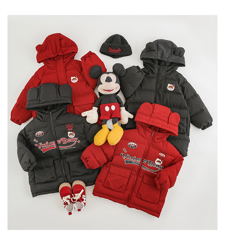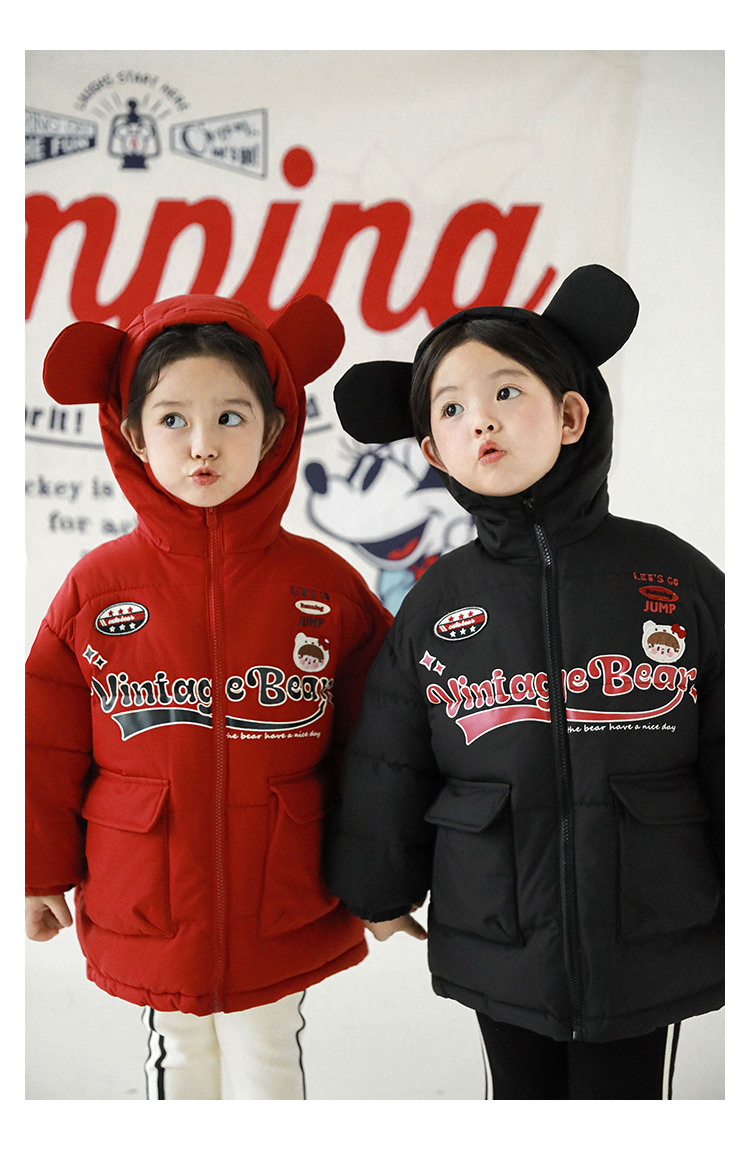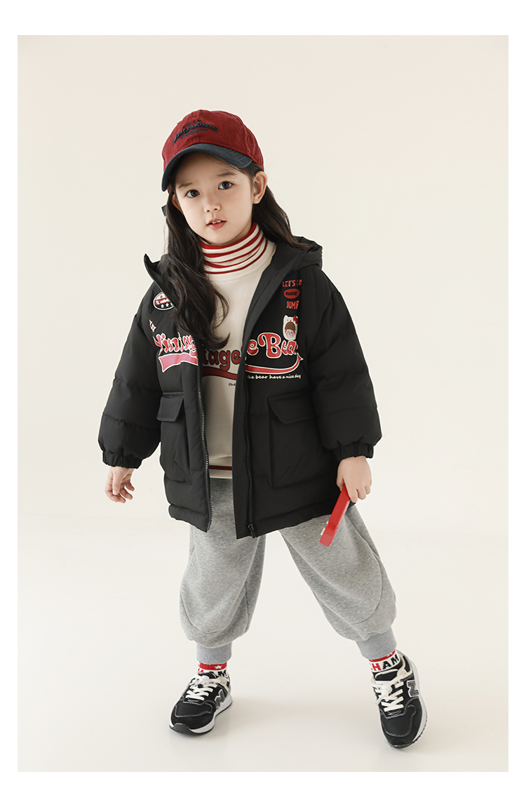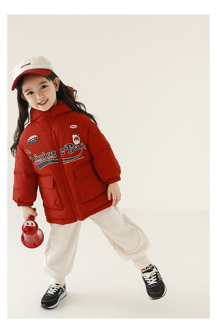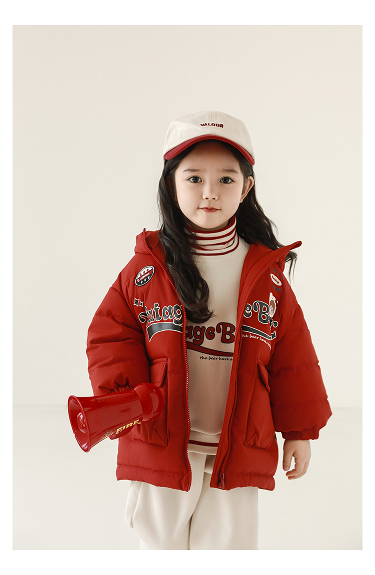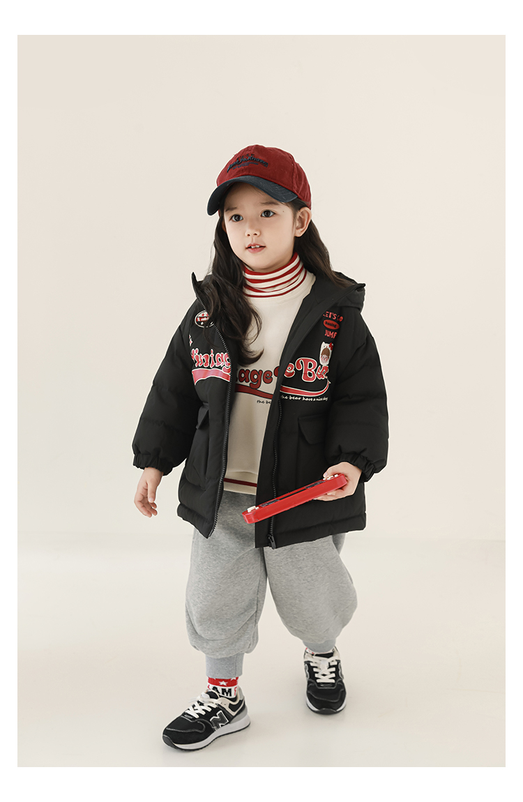 Wuri Bo a girl Anan Tab 자수 라벨 긴 두꺼운 코튼 패딩 재킷 겨울 어린이 따뜻한 코튼 패딩 재킷 타이드스토어 가기