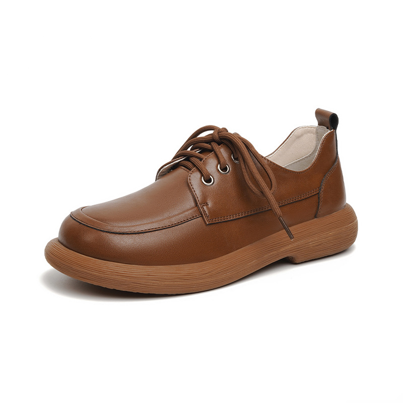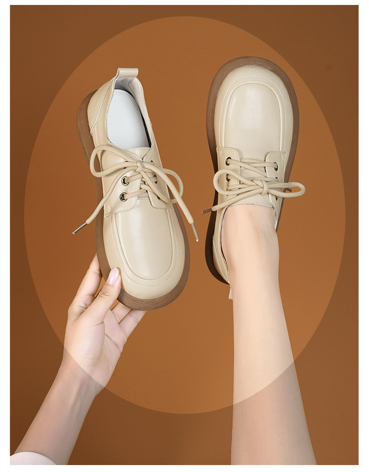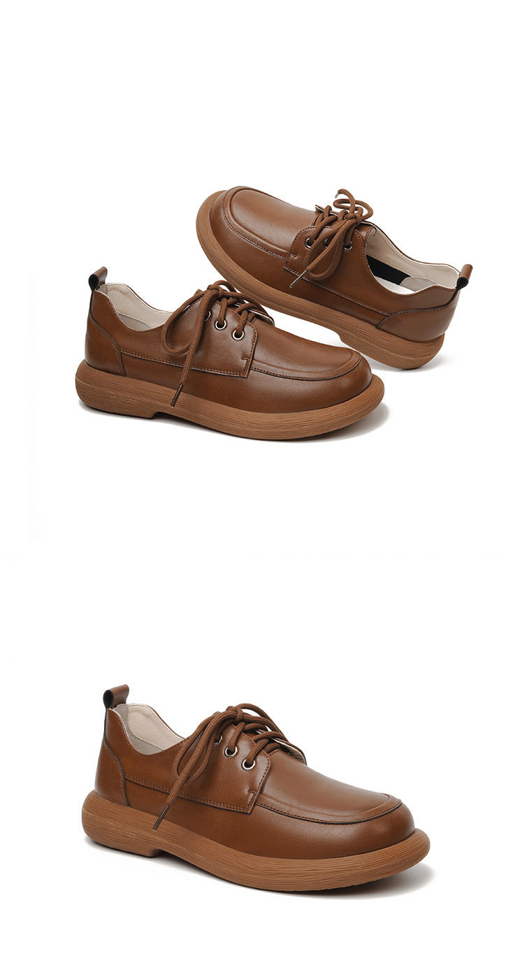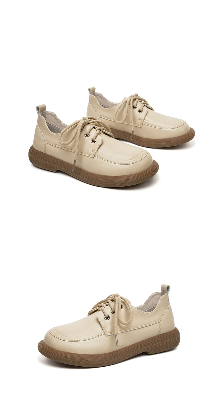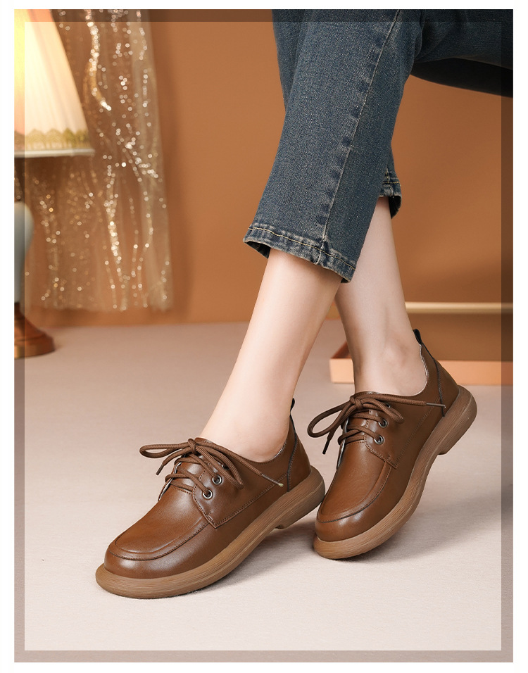 봄과 가을 새로운 부드러운 가죽 플랫 신발 여성 영국 스타일 레이스 업 캐주얼 소프트 하단 여성 신발 두꺼운 하단 로퍼 편안한